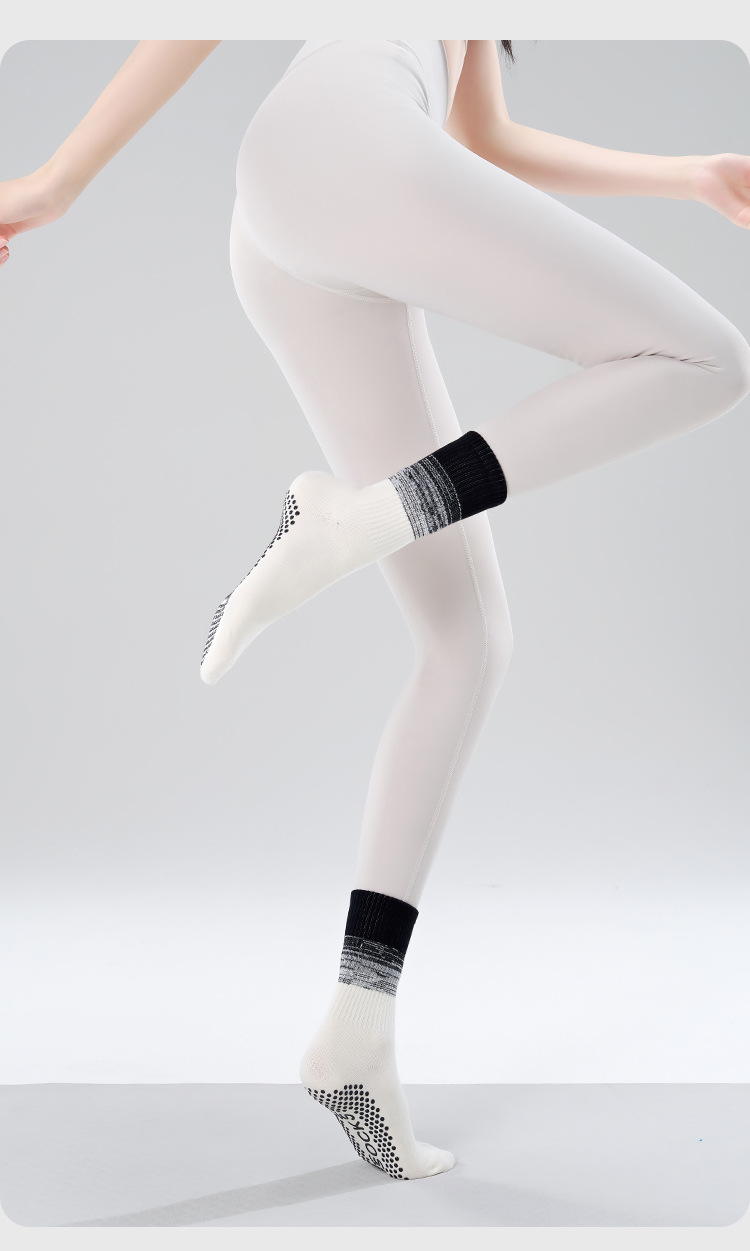 2025 그라데이션 미끄럼 방지 요가 양말 여성용 가을 스포츠 땀 흡수 중간 길이 양말 땀 흡수 및 탈취 피트니스 필라테스 양말