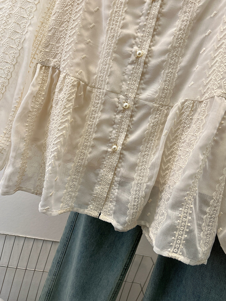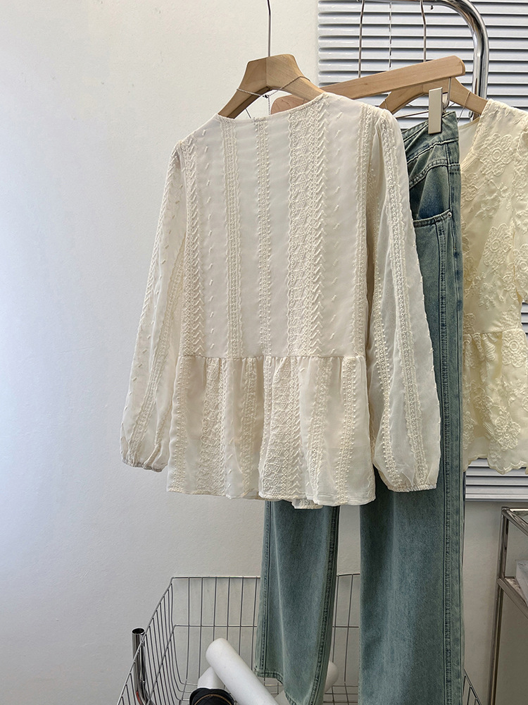 • 오프화이트 [봄여성 2024 신여성/봄여성 2024 신모델/올해 인기 예쁜 셔츠/시폰탑 여성/긴팔탑 여성]