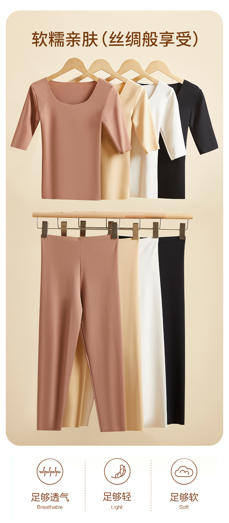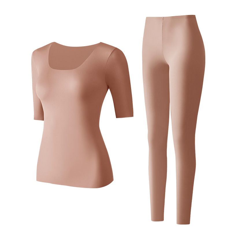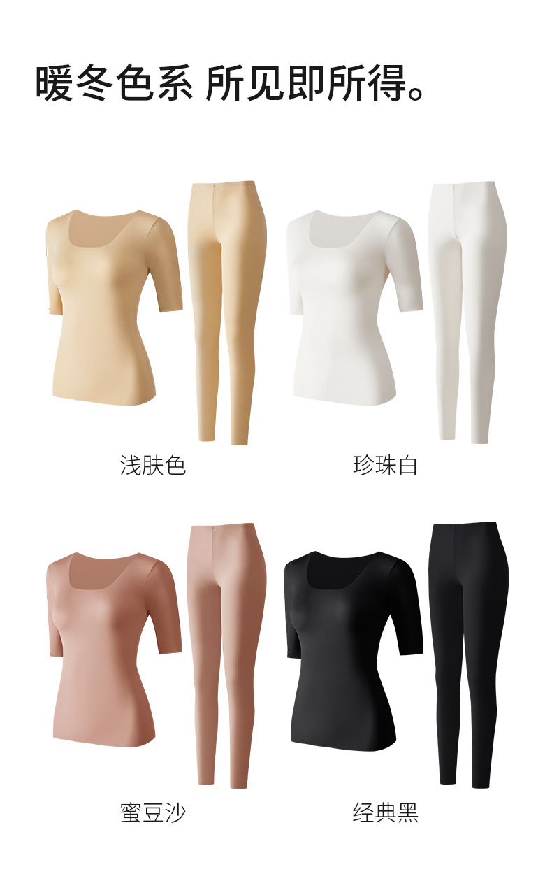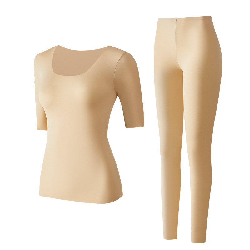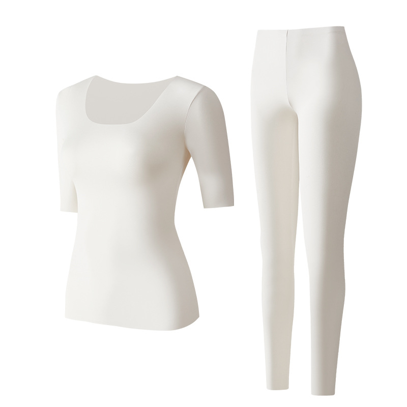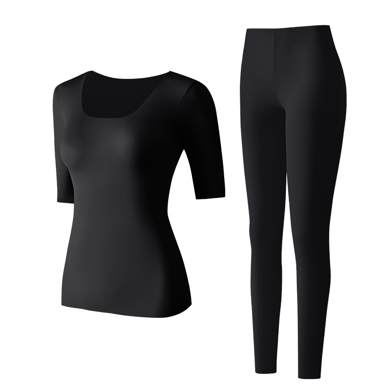 가을과 겨울 반소매 가을 옷과 바지 세트 트랙 추적없는 초박형 마스크 근육 바닥 피부 미용 옷베이스 열 속옷 세트 여성