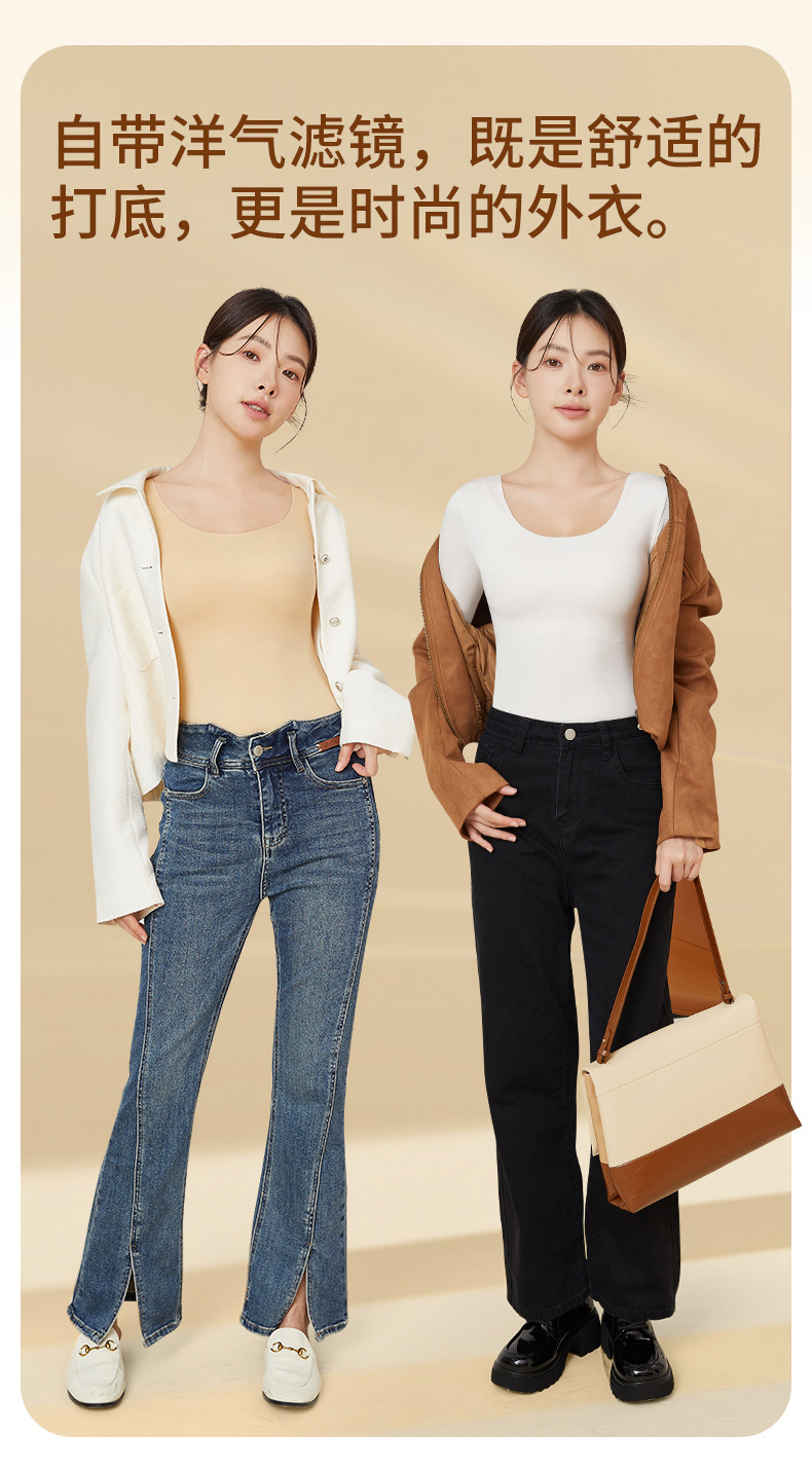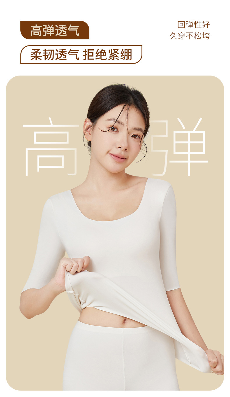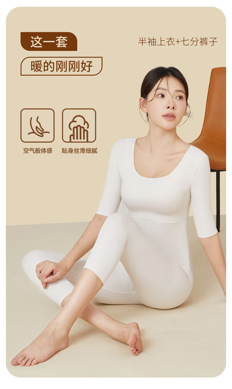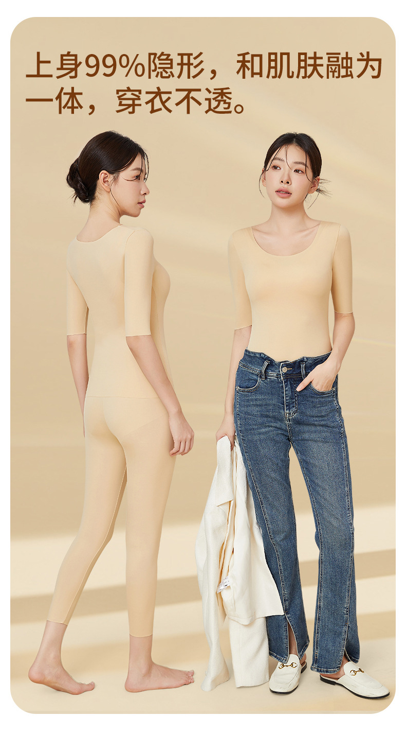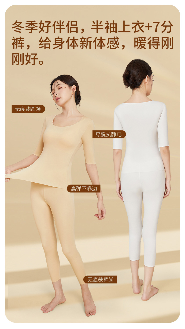 가을과 겨울 반소매 가을 옷과 바지 세트 트랙 추적없는 초박형 마스크 근육 바닥 피부 미용 옷베이스 열 속옷 세트 여성스토어 가기