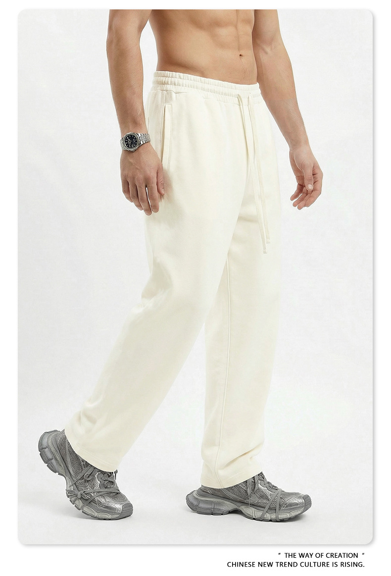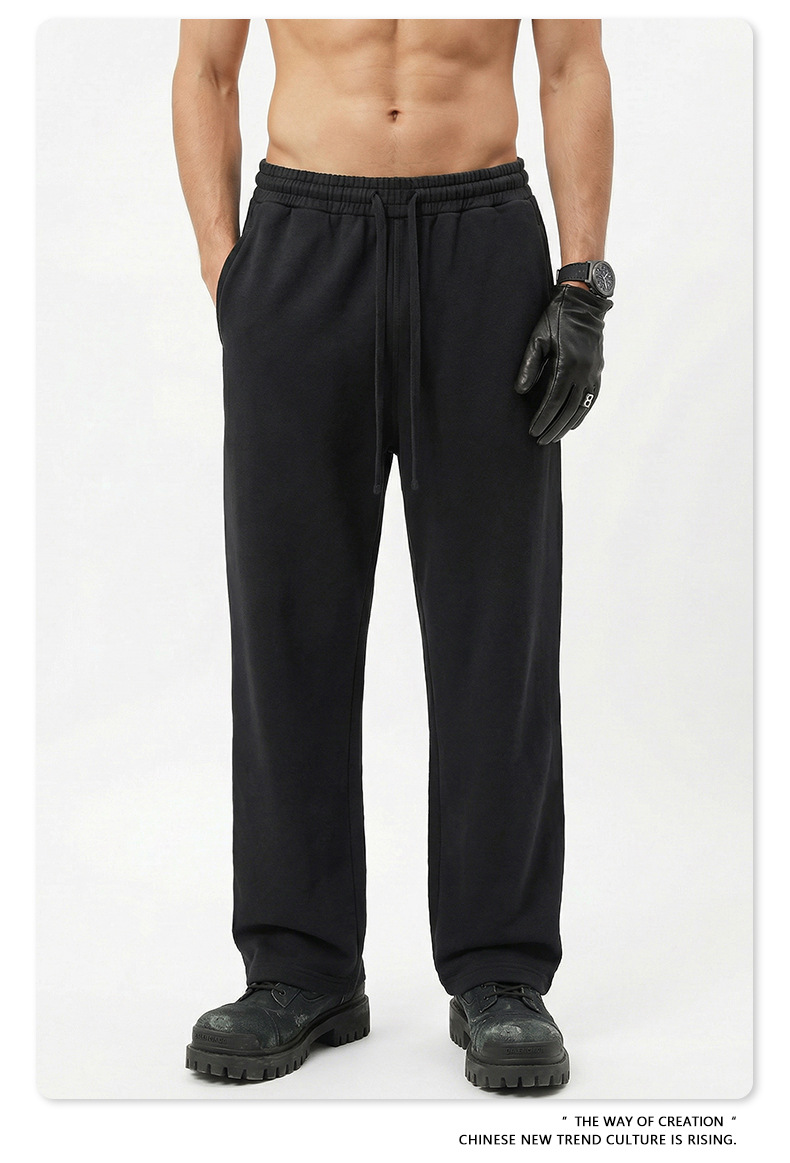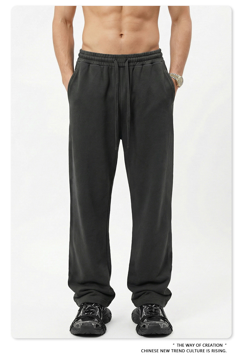 BE 남성복 | 2025년 가을 미국 헤비급 솔리드 컬러 스트레이트 바지 남성 트렌디 스포츠 스타일 스웨트 팬츠 크로스보더 맞춤 제작스토어 가기