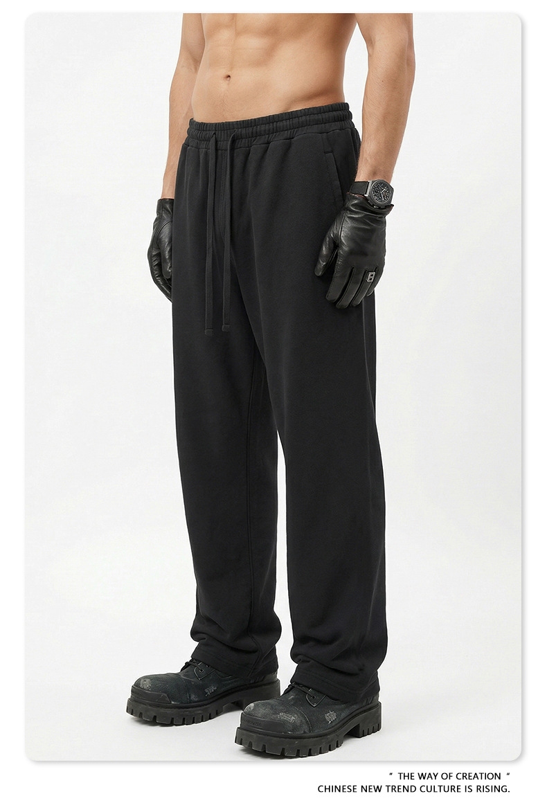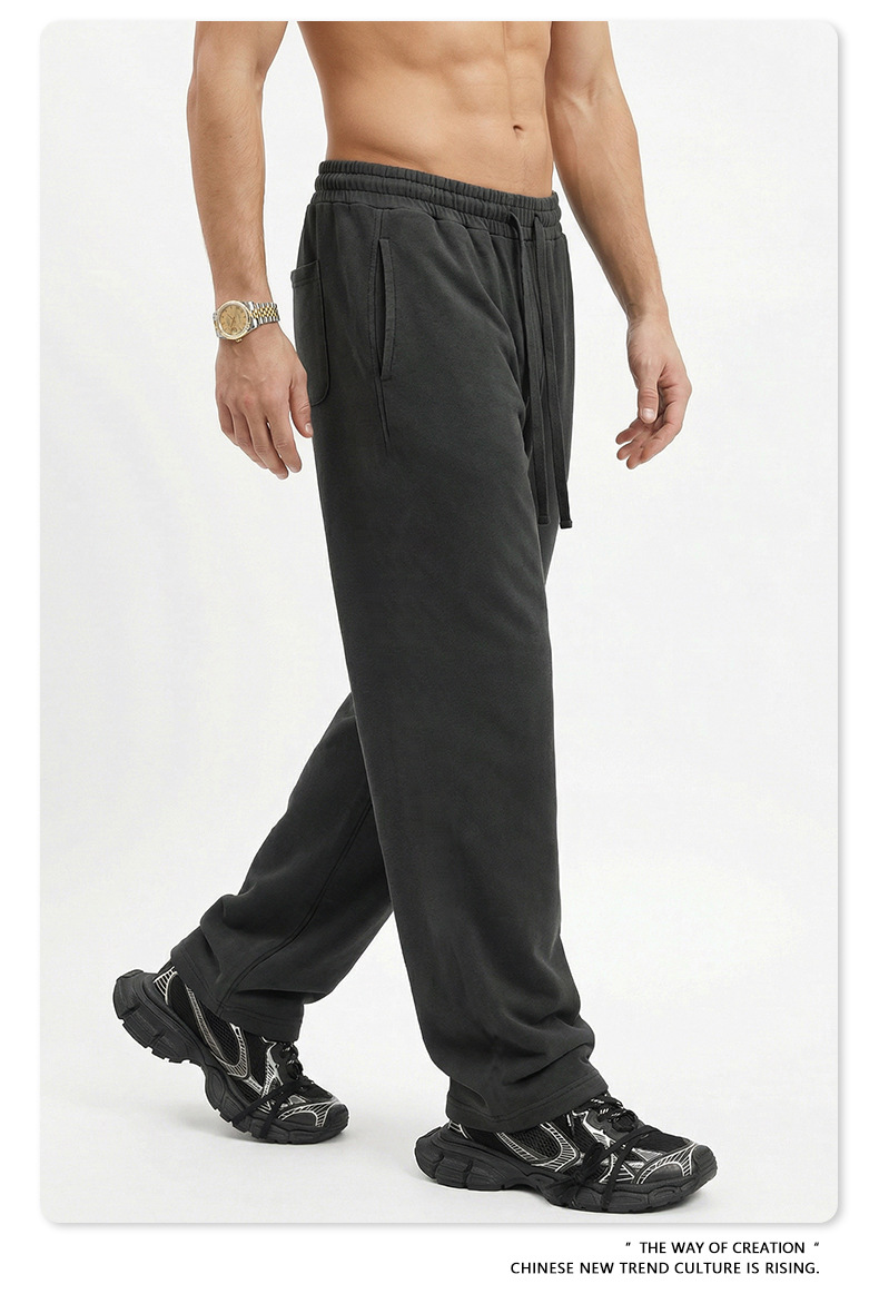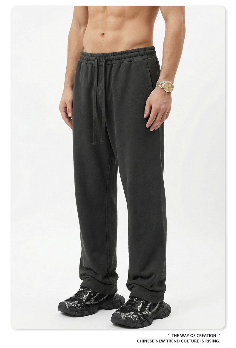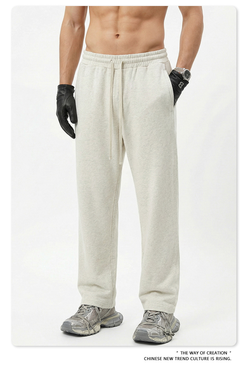 BE 남성복 | 2025년 가을 미국 헤비급 솔리드 컬러 스트레이트 바지 남성 트렌디 스포츠 스타일 스웨트 팬츠 크로스보더 맞춤 제작스토어 가기