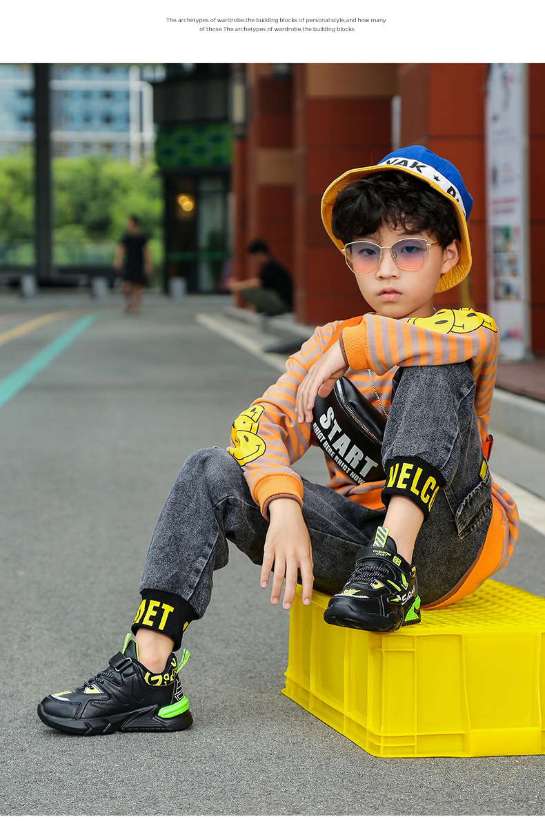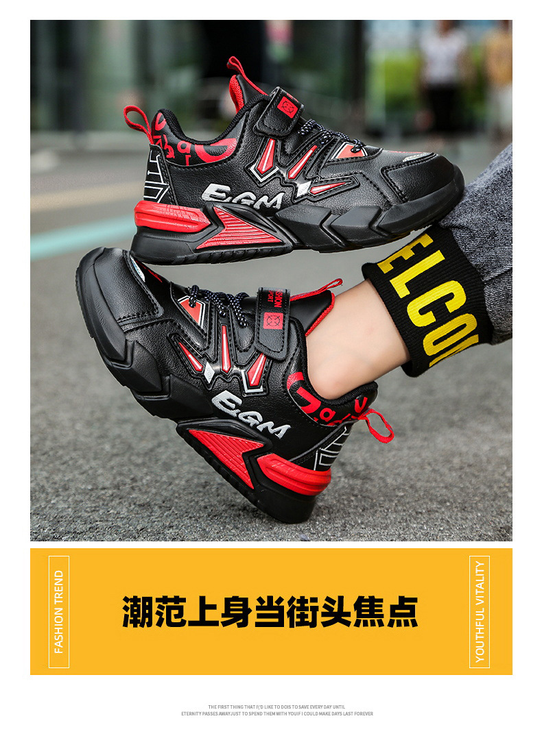 소년 운동화 가죽 방수 미끄럼 방지 경량 벨크로 어린이 신발 가을 새로운 어린이 운동화