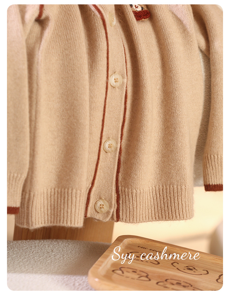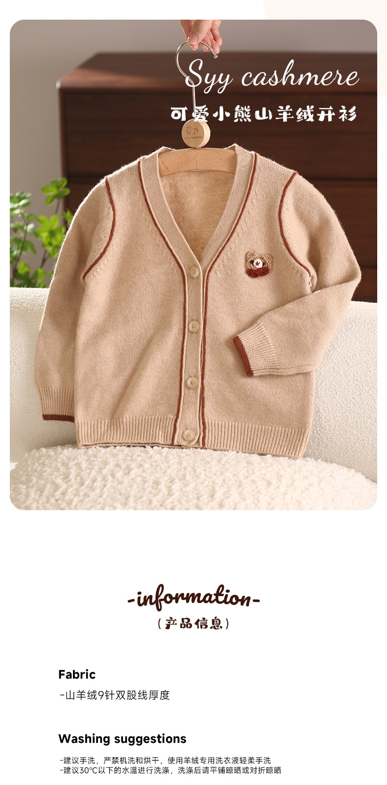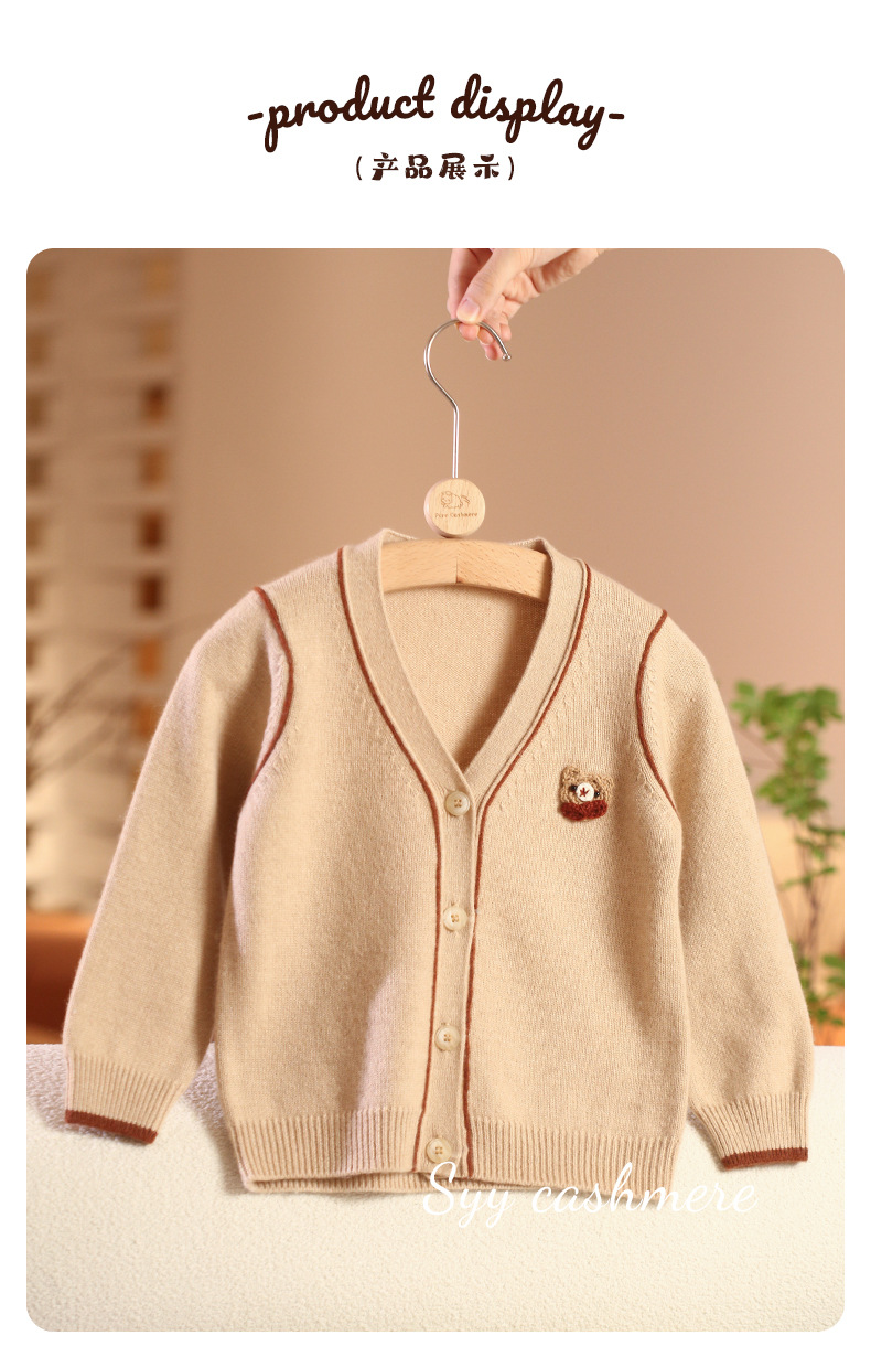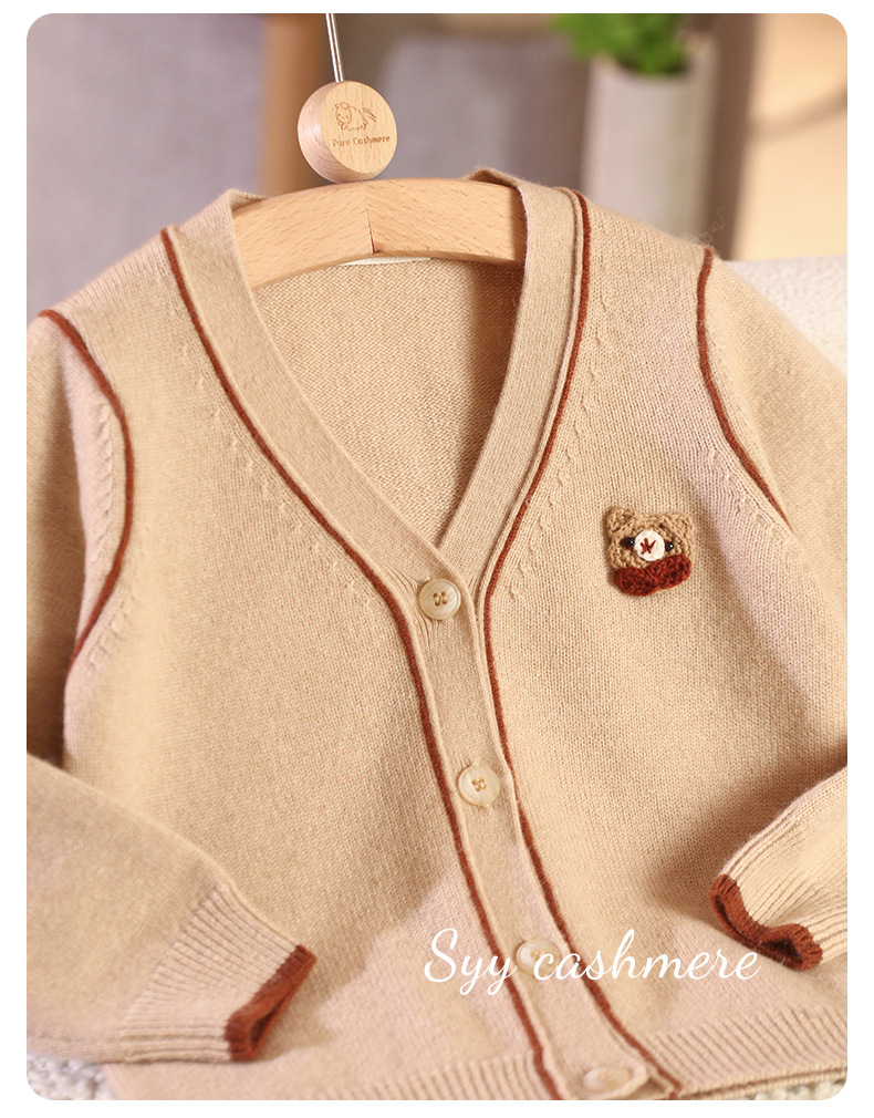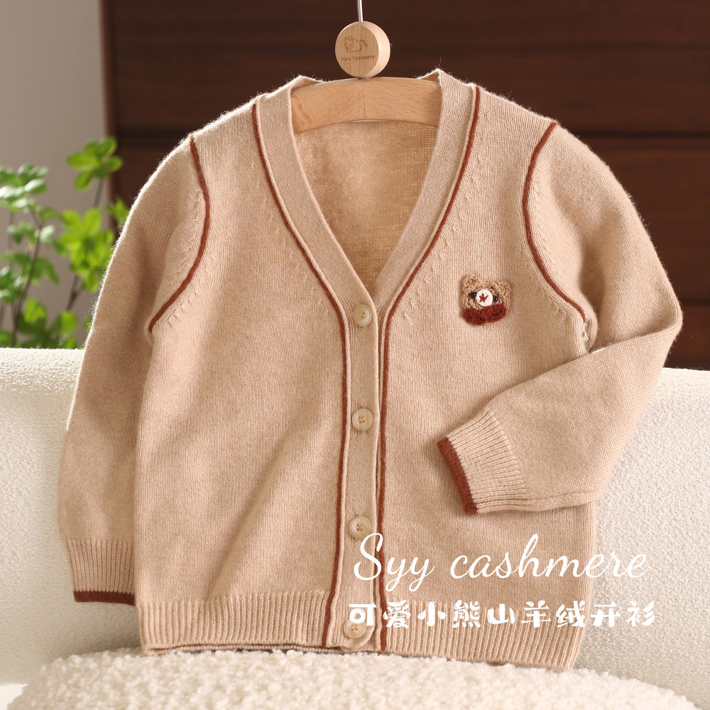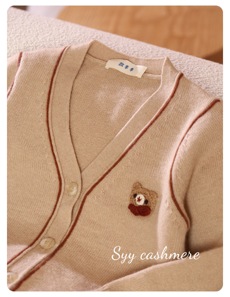 양양 수 한 세대 소년 소녀 캐시미어 V 넥 곰 자수 어린이 스웨터 코트 카디건