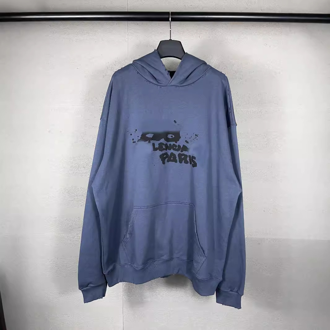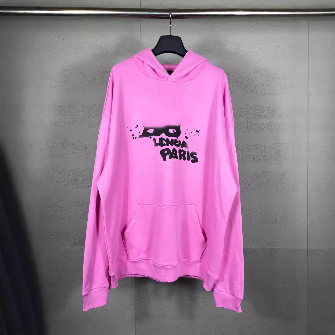 패션 브랜드 2024 가을과 겨울 파리 BB 손으로 그린 낙서 로고 후드 스웨터 남성과 여성의 느슨한 캐주얼 커플스토어 가기