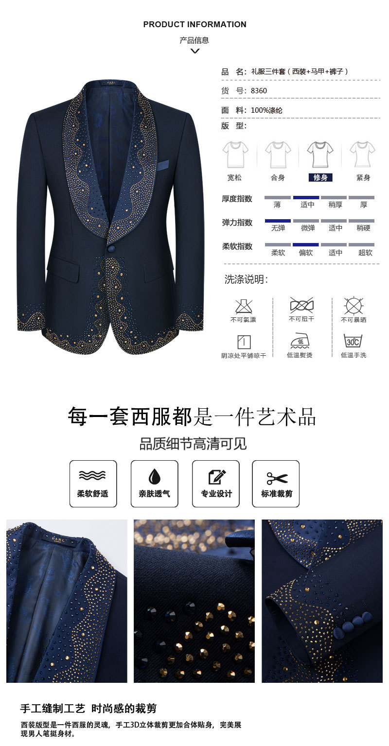 독립 역 국경 간 플러스 사이즈 아마존 대외 무역 남자 세트 핫 다이아몬드 칼라 호스트 세트 원피스 3 피스 세트스토어 가기