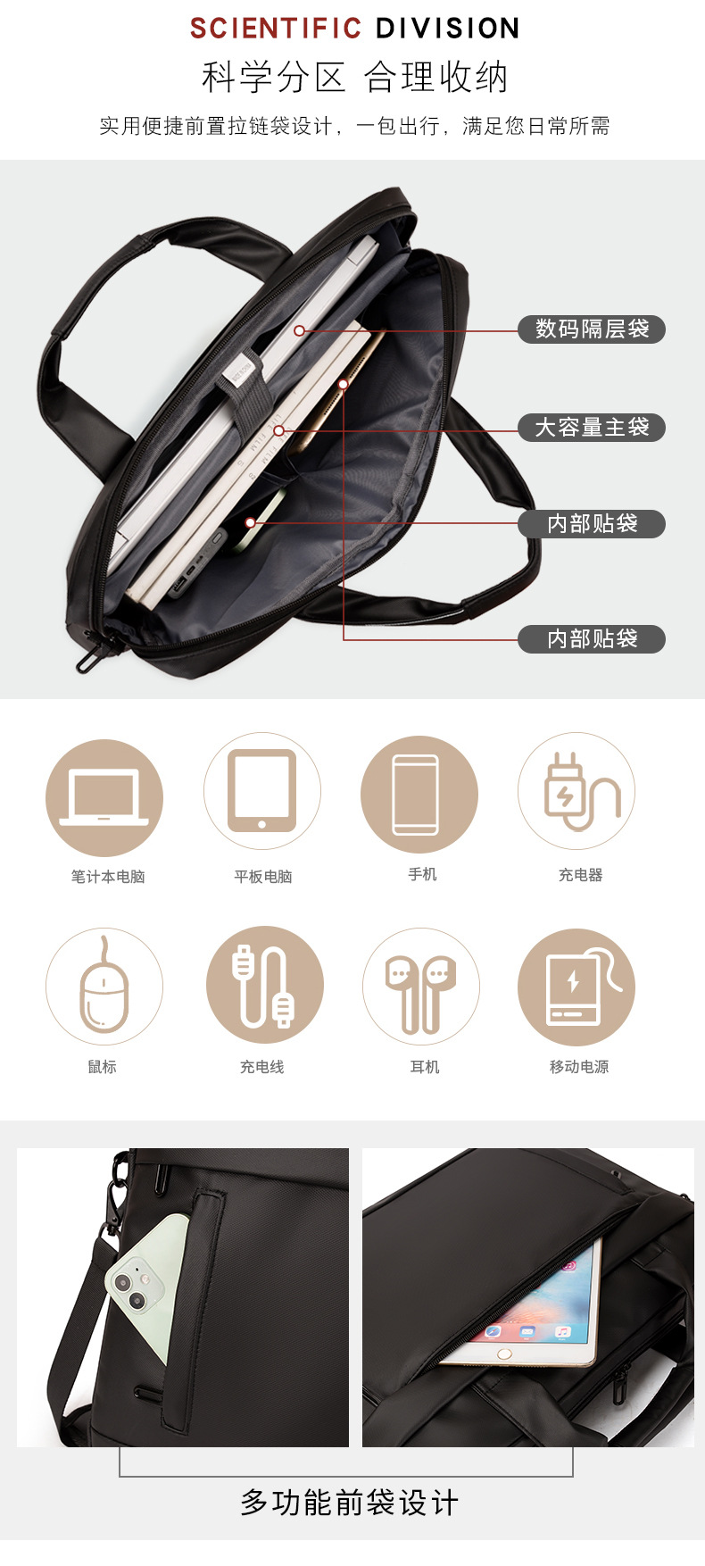 2024 새로운 핸드백 핸드백 휴대용 어깨 가방 캐주얼 비즈니스 노트북 가방 발수 크로스 바디 백스토어 가기