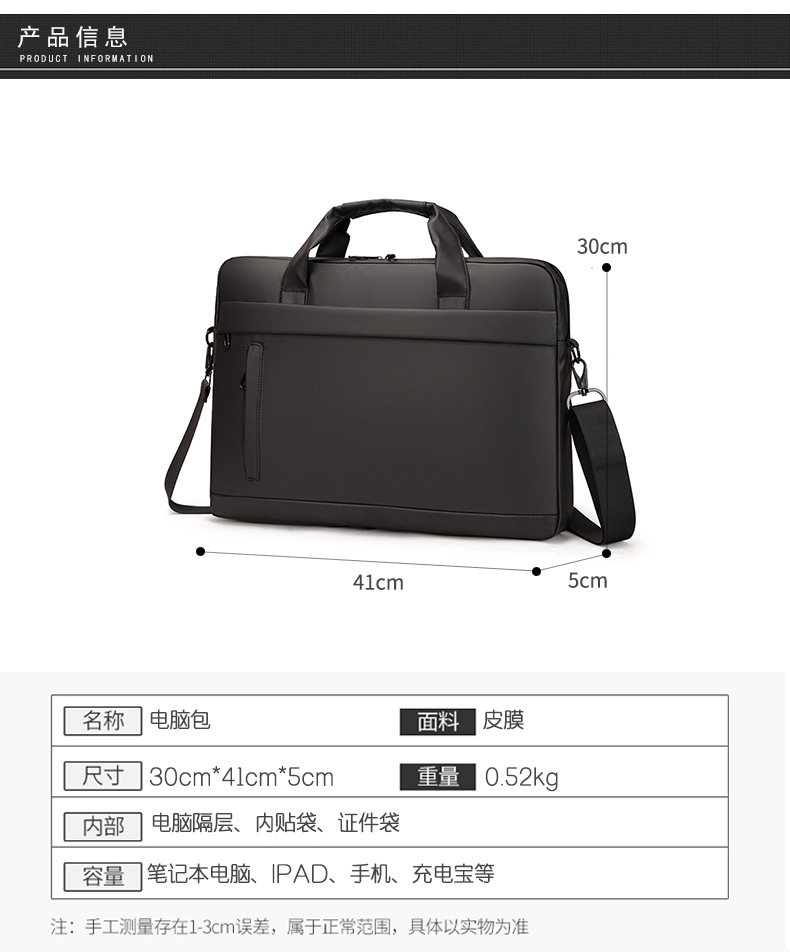 2024 새로운 핸드백 핸드백 휴대용 어깨 가방 캐주얼 비즈니스 노트북 가방 발수 크로스 바디 백