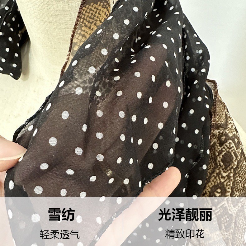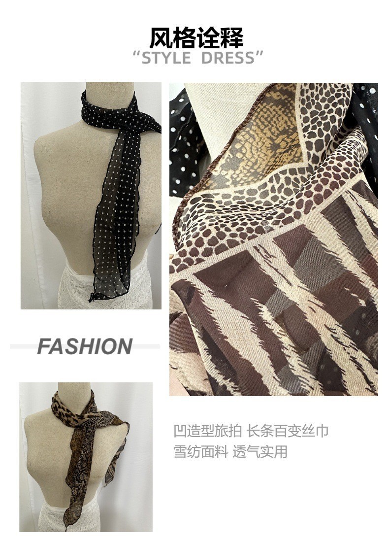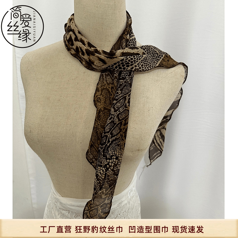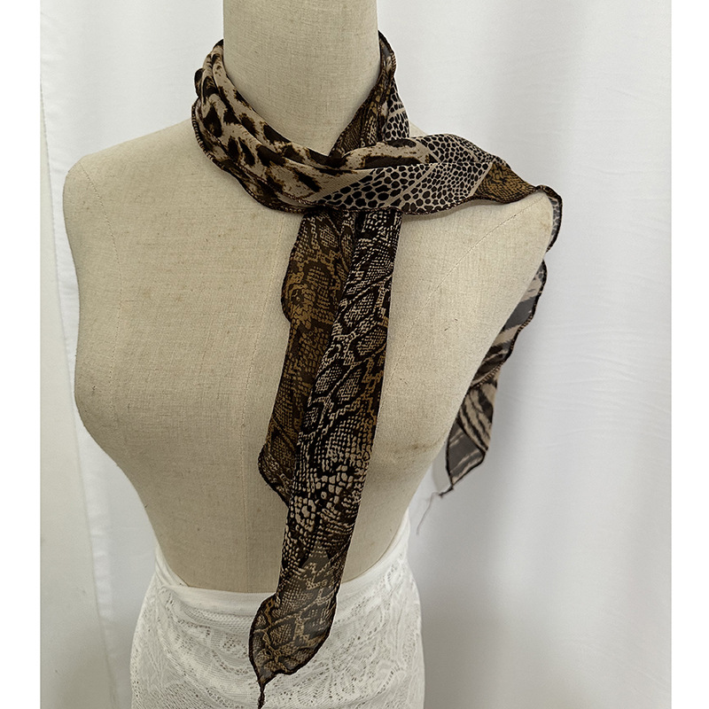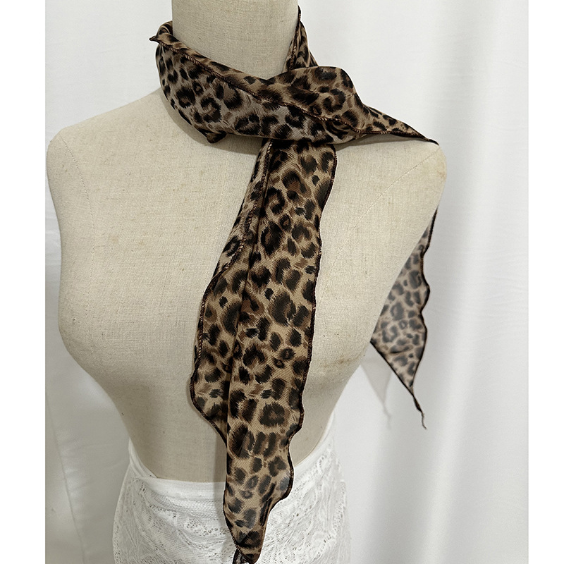 • 뉴 컬러 쉬폰 브라운 레오파드 프린트 싱글 실크 스카프