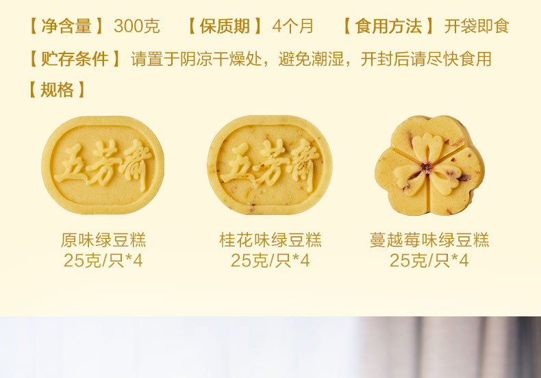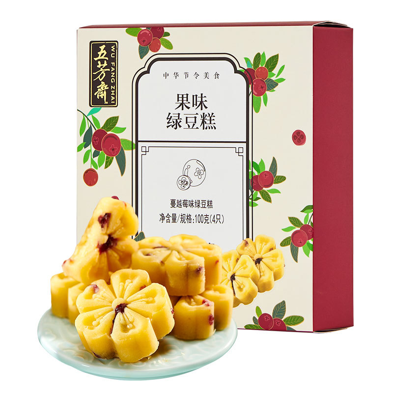 Wufangzhai Mung Bean Cake Osmanthus 케이크 녹콩 케이크 크랜베리 맛 오후 차 간식 전통 과자 간식 녹콩 케이크스토어 가기