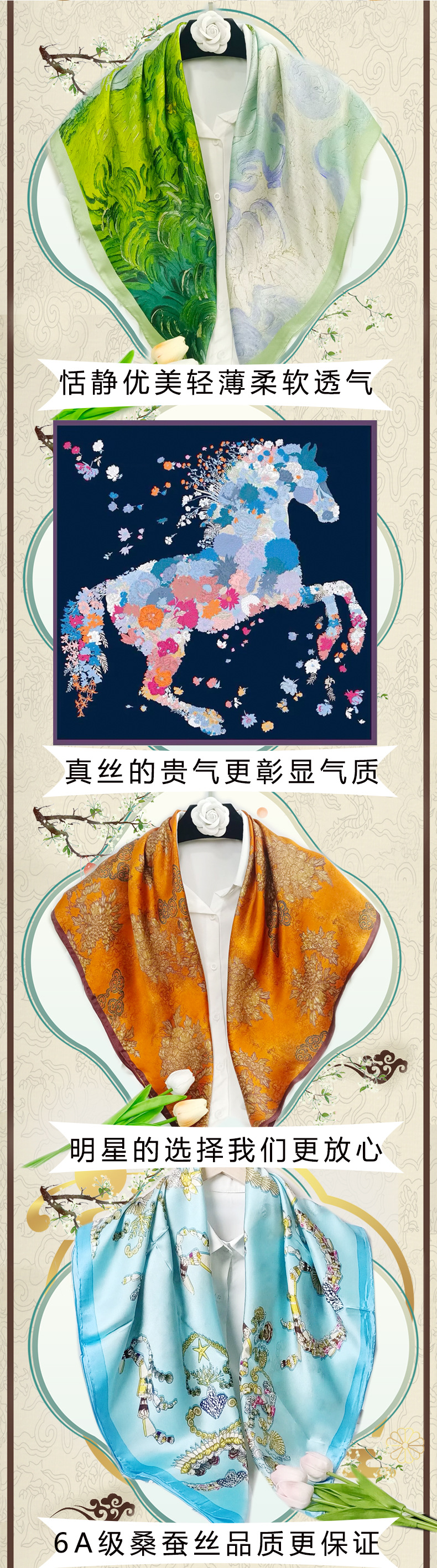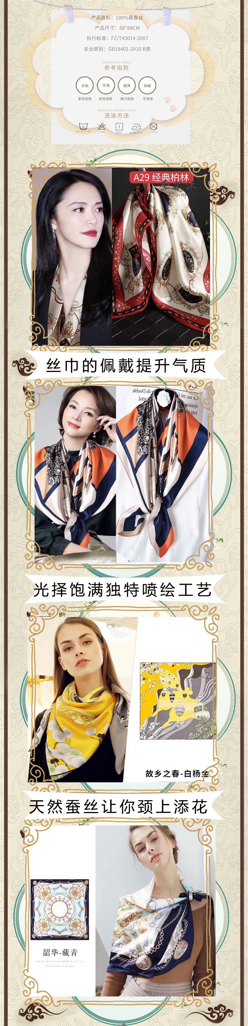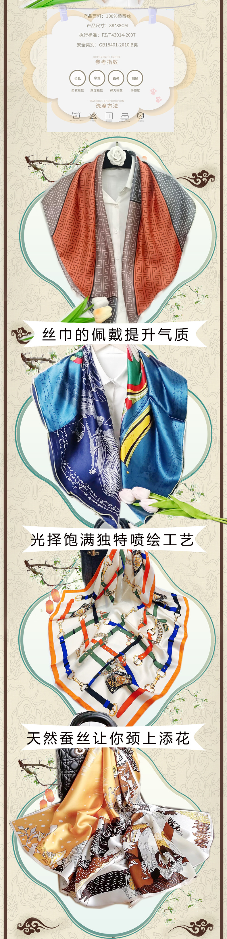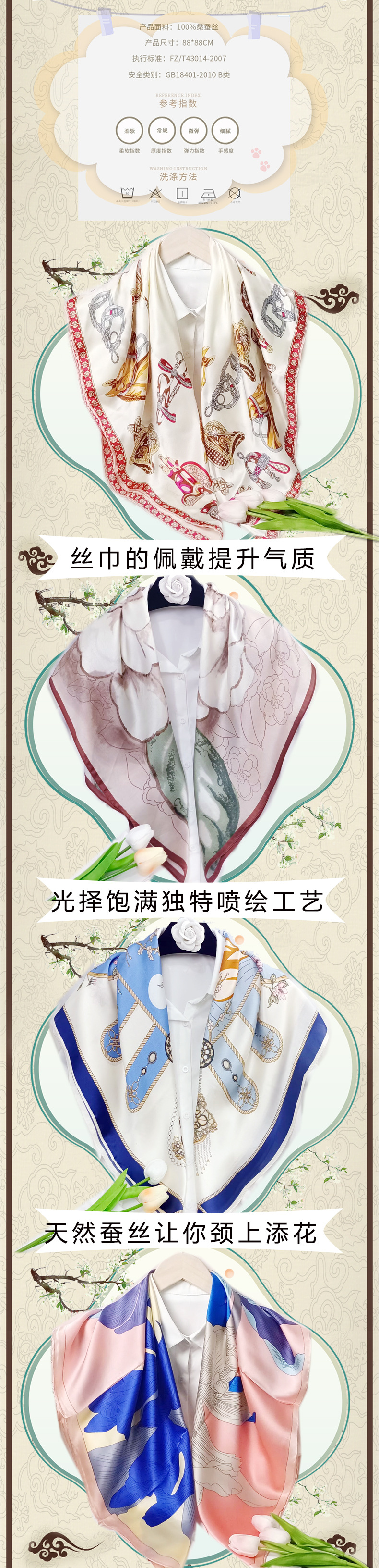 실크 스카프 고급 실크 스카프 고급 100% 실크 스퀘어 스카프 선스크린 목도리 스카프 패션 스카프스토어 가기