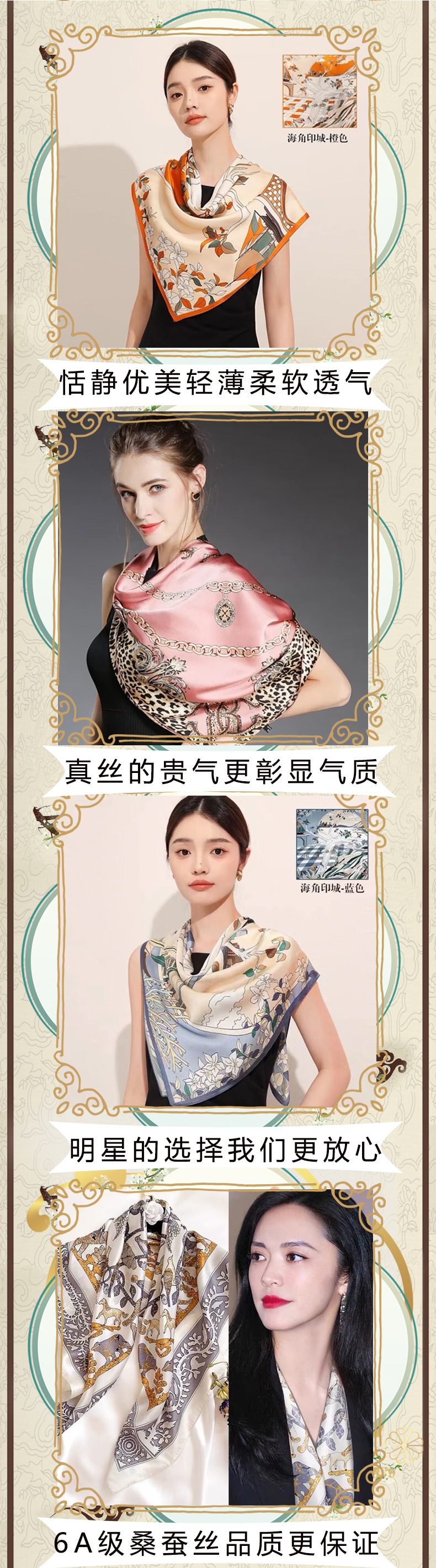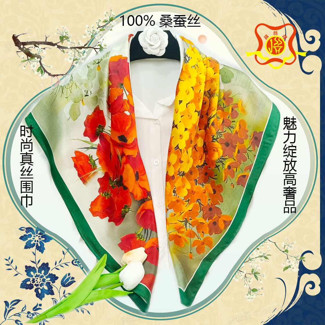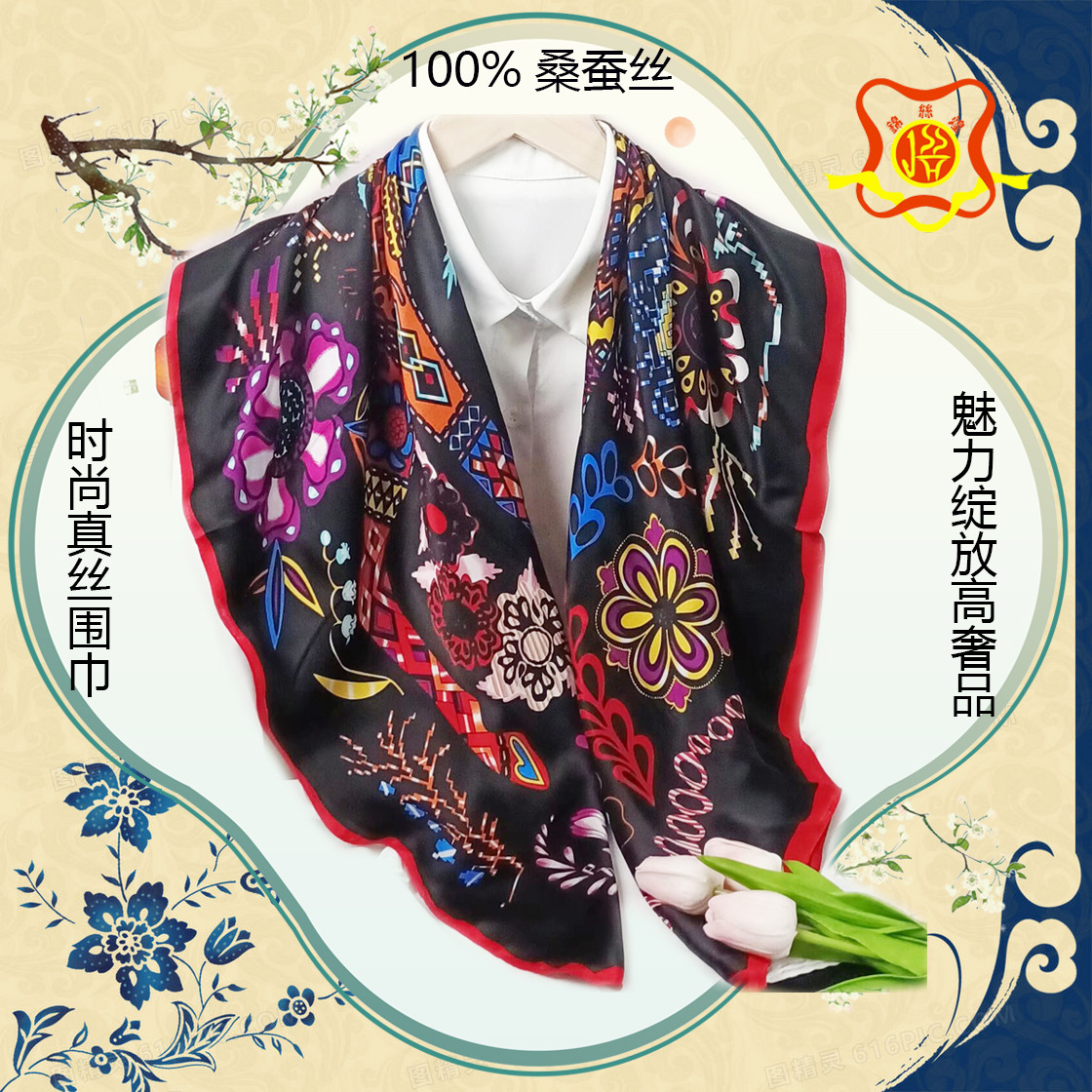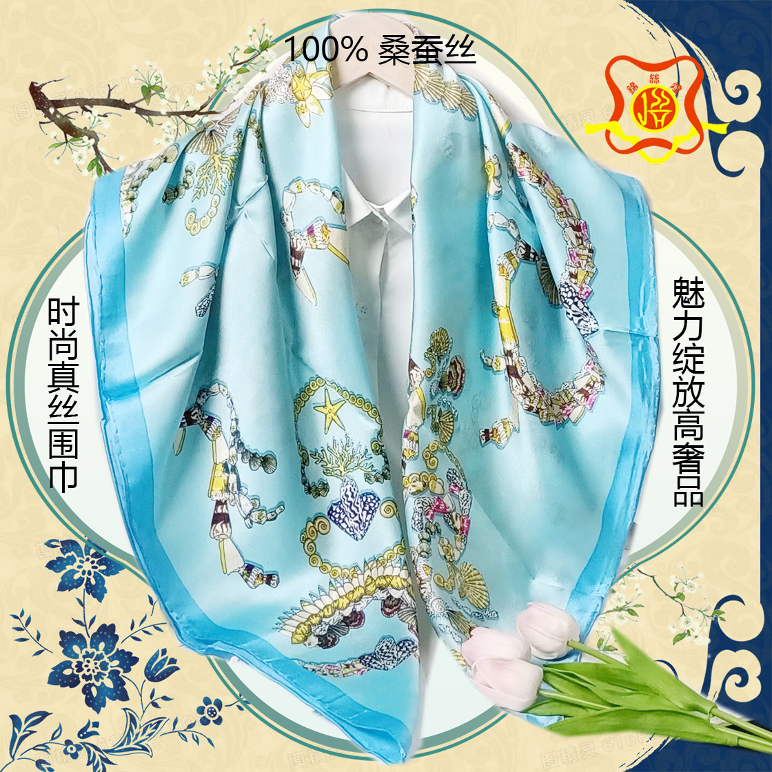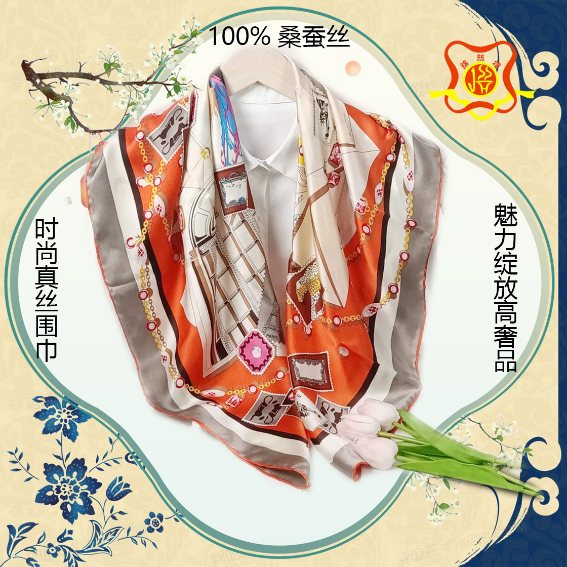 실크 스카프 고급 실크 스카프 고급 100% 실크 스퀘어 스카프 선스크린 목도리 스카프 패션 스카프스토어 가기