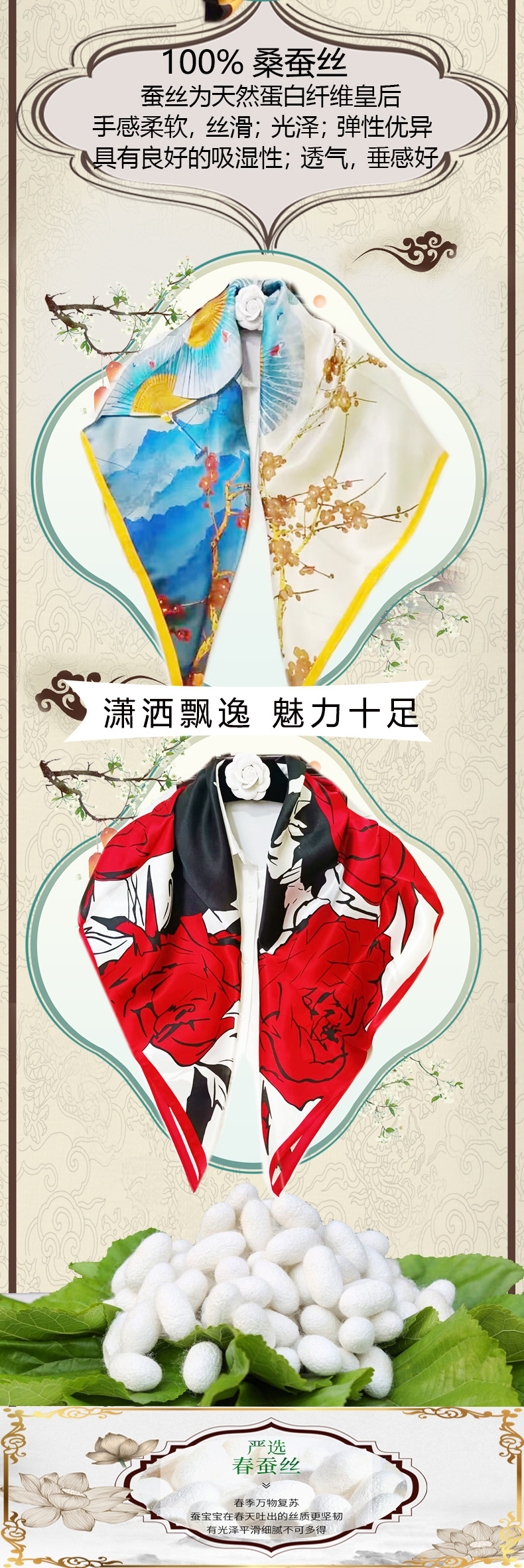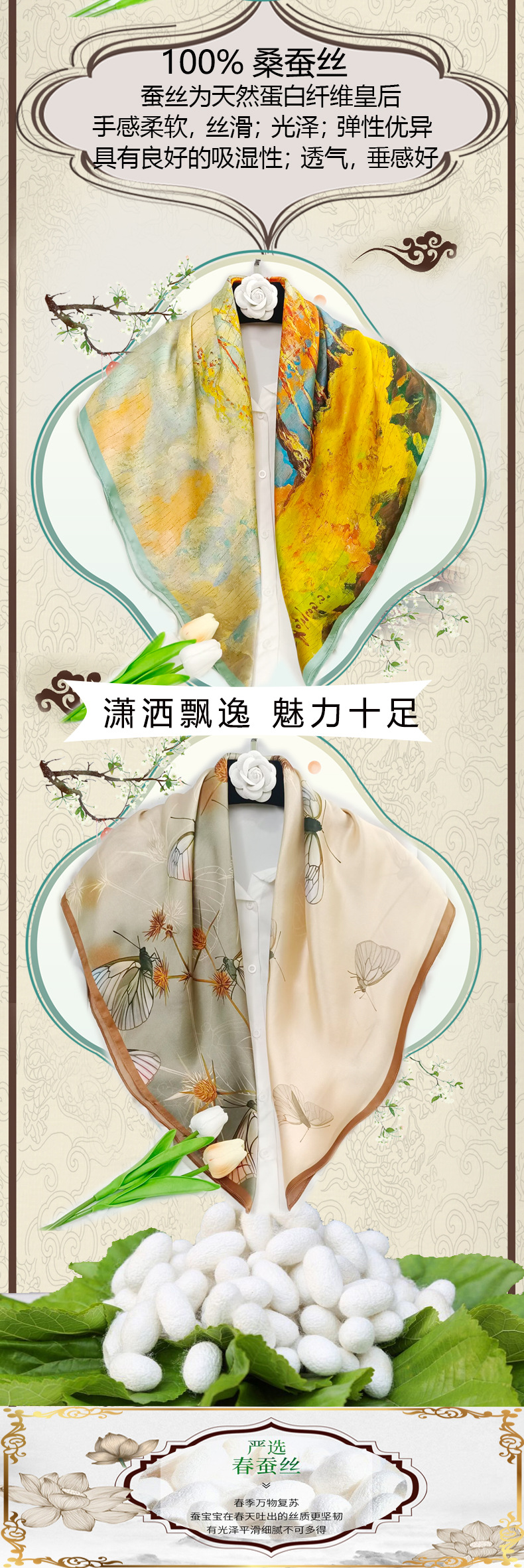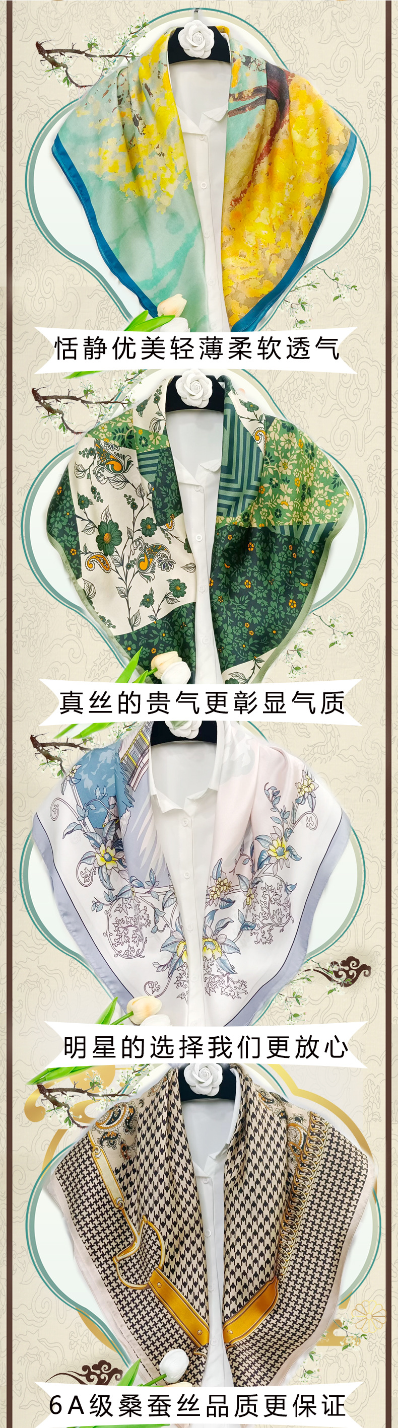 실크 스카프 고급 실크 스카프 고급 100% 실크 스퀘어 스카프 선스크린 목도리 스카프 패션 스카프