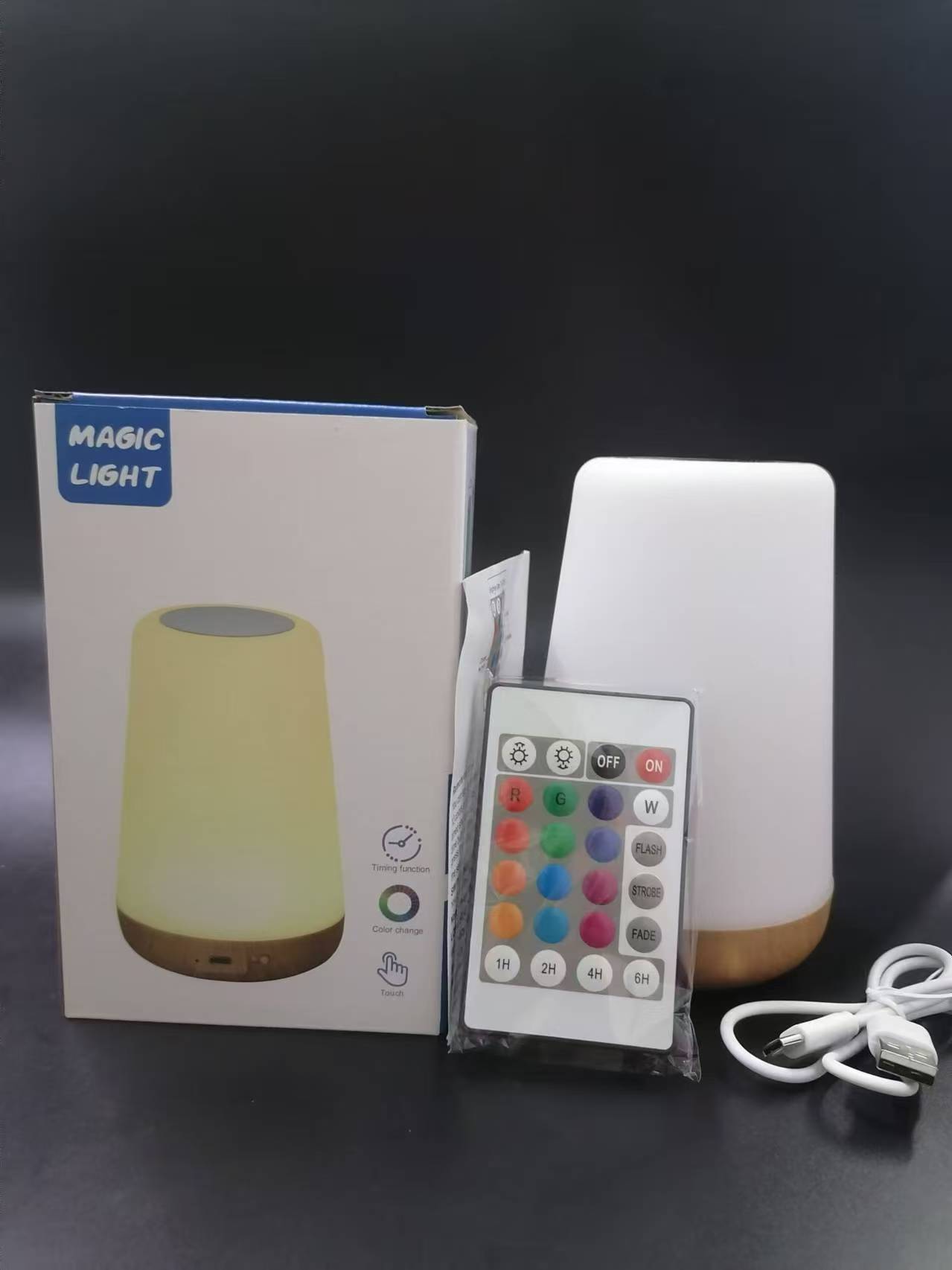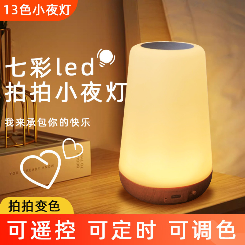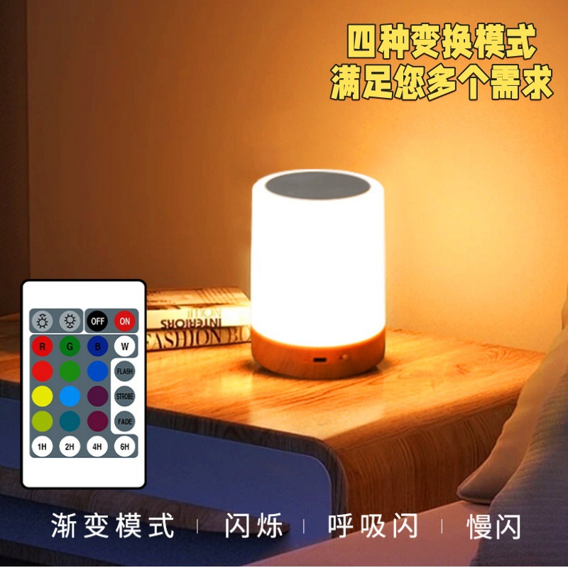 터치 및 팻 야간 조명 원격 제어 목재 테이블 램프 침실 침대 옆 램프 다채로운 분위기 램프 아마존 폭발