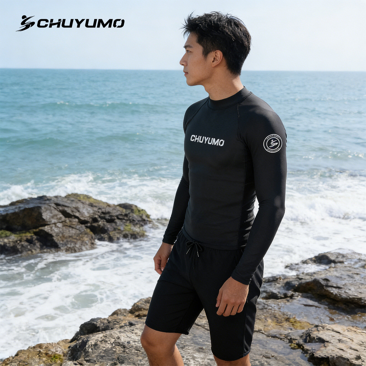 남성용 다이빙 수영복 사이드 프린트 긴팔 분리형 속건 자외선 차단 서핑복 코치 수영복 공장 직판스토어 가기