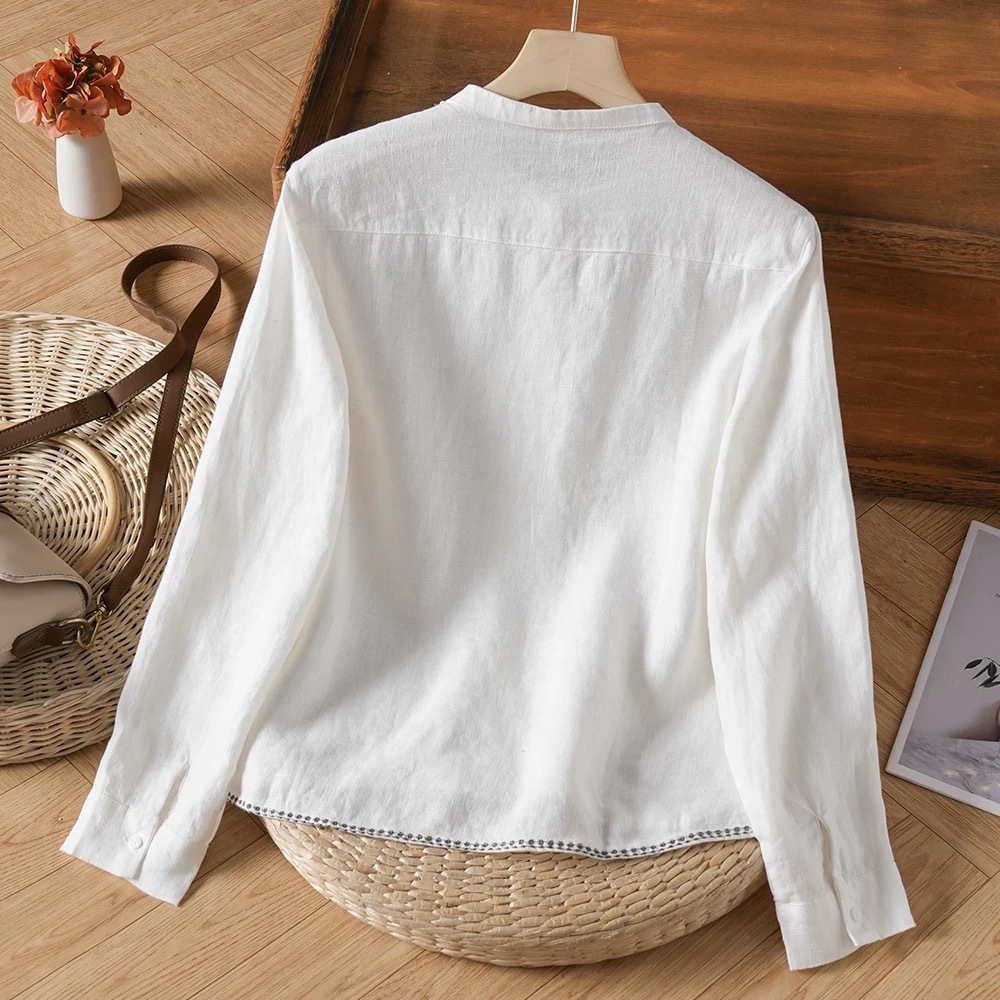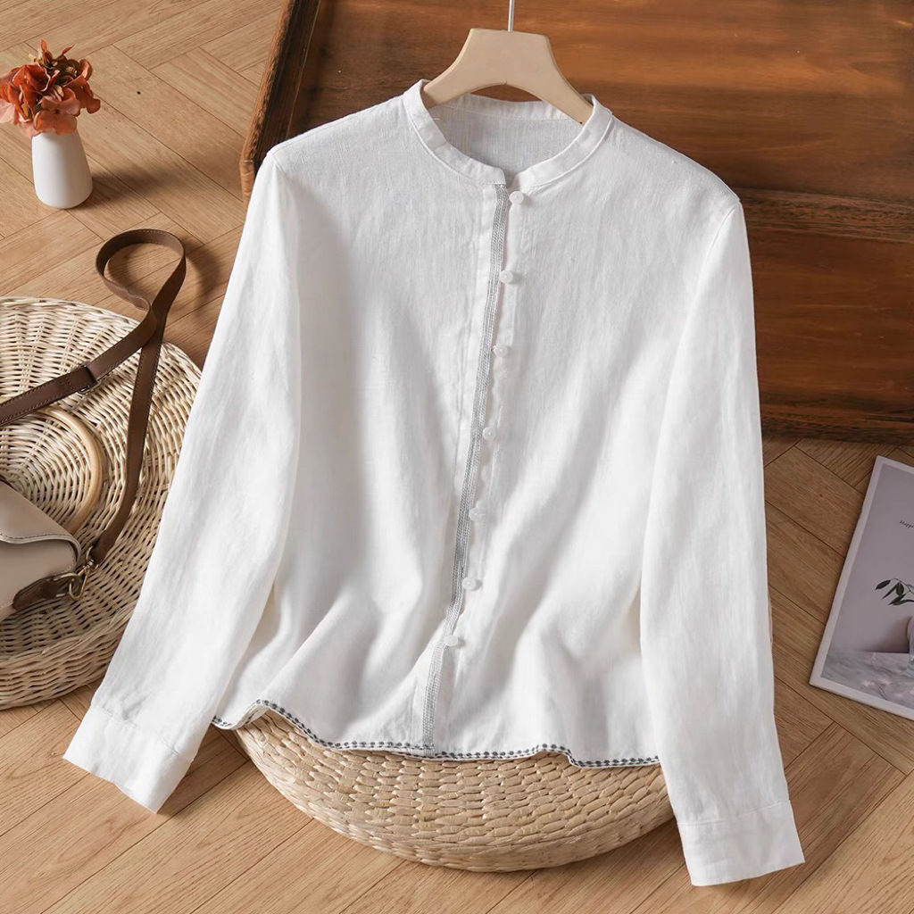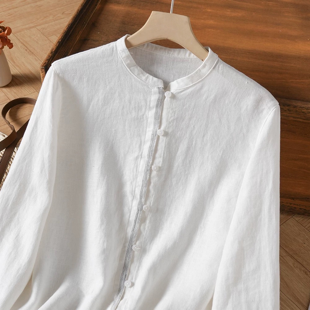 2026 봄/가을 아우터용 만능 캐주얼 레인듀 컬러 셔츠 캐주얼 솔리드 컬러 탑 헴프 긴팔 루즈핏 화이트스토어 가기