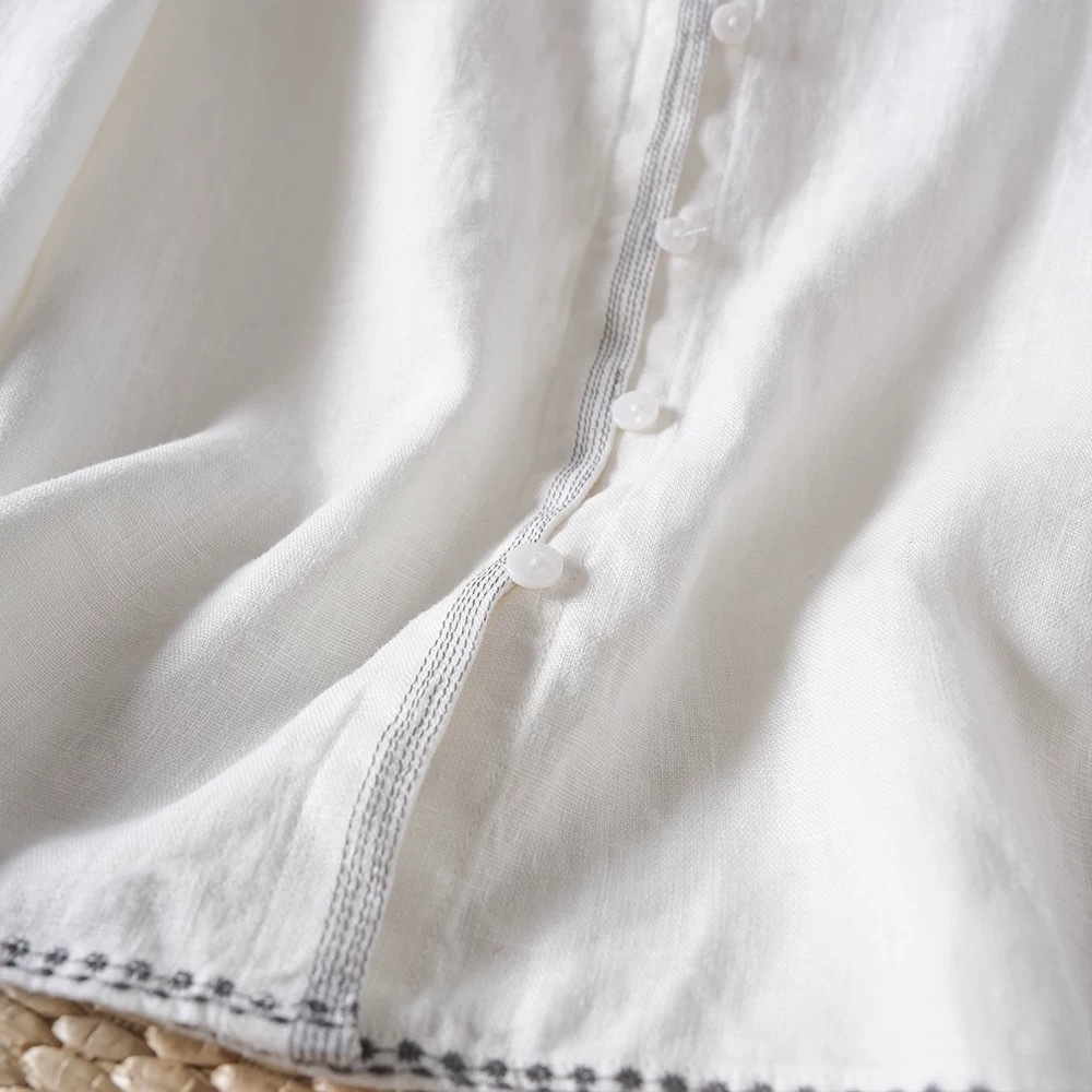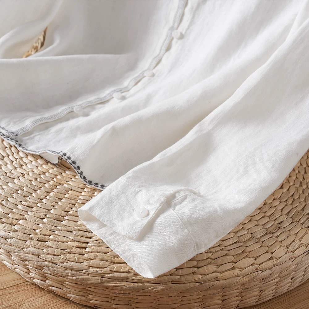 2026 봄/가을 아우터용 만능 캐주얼 레인듀 컬러 셔츠 캐주얼 솔리드 컬러 탑 헴프 긴팔 루즈핏 화이트