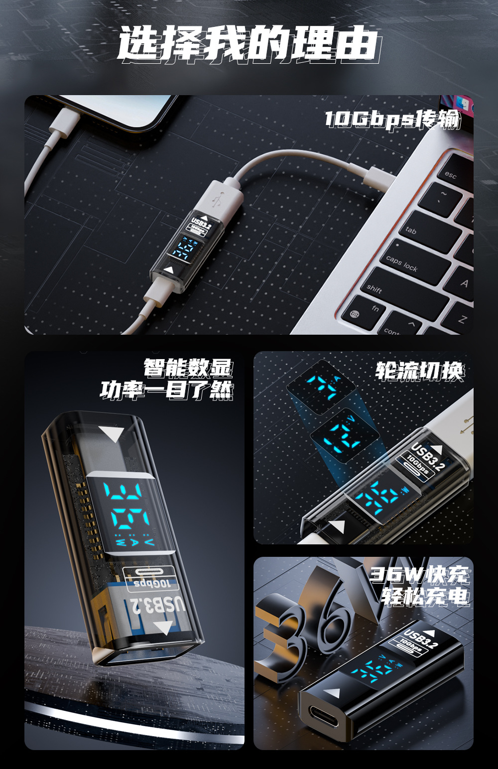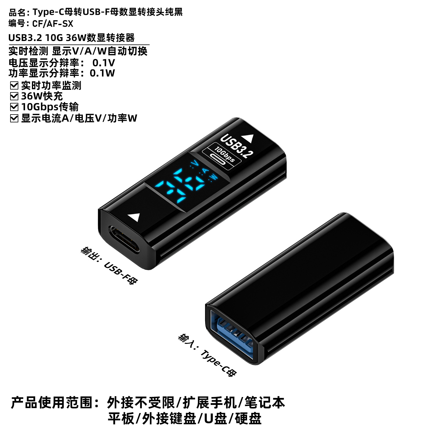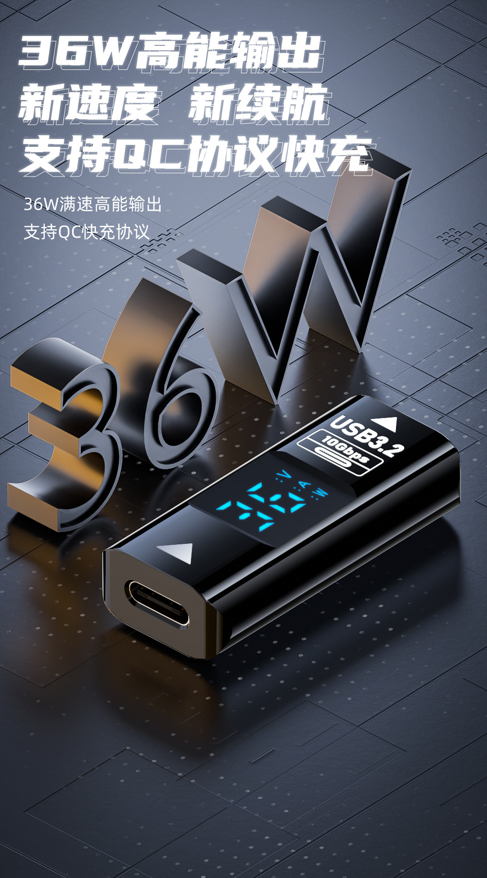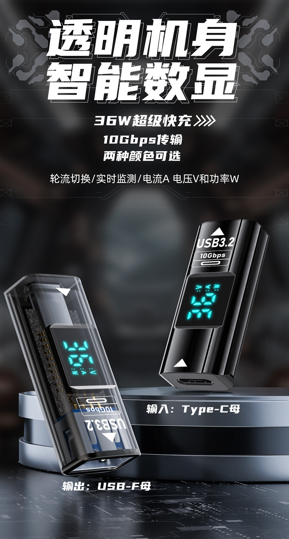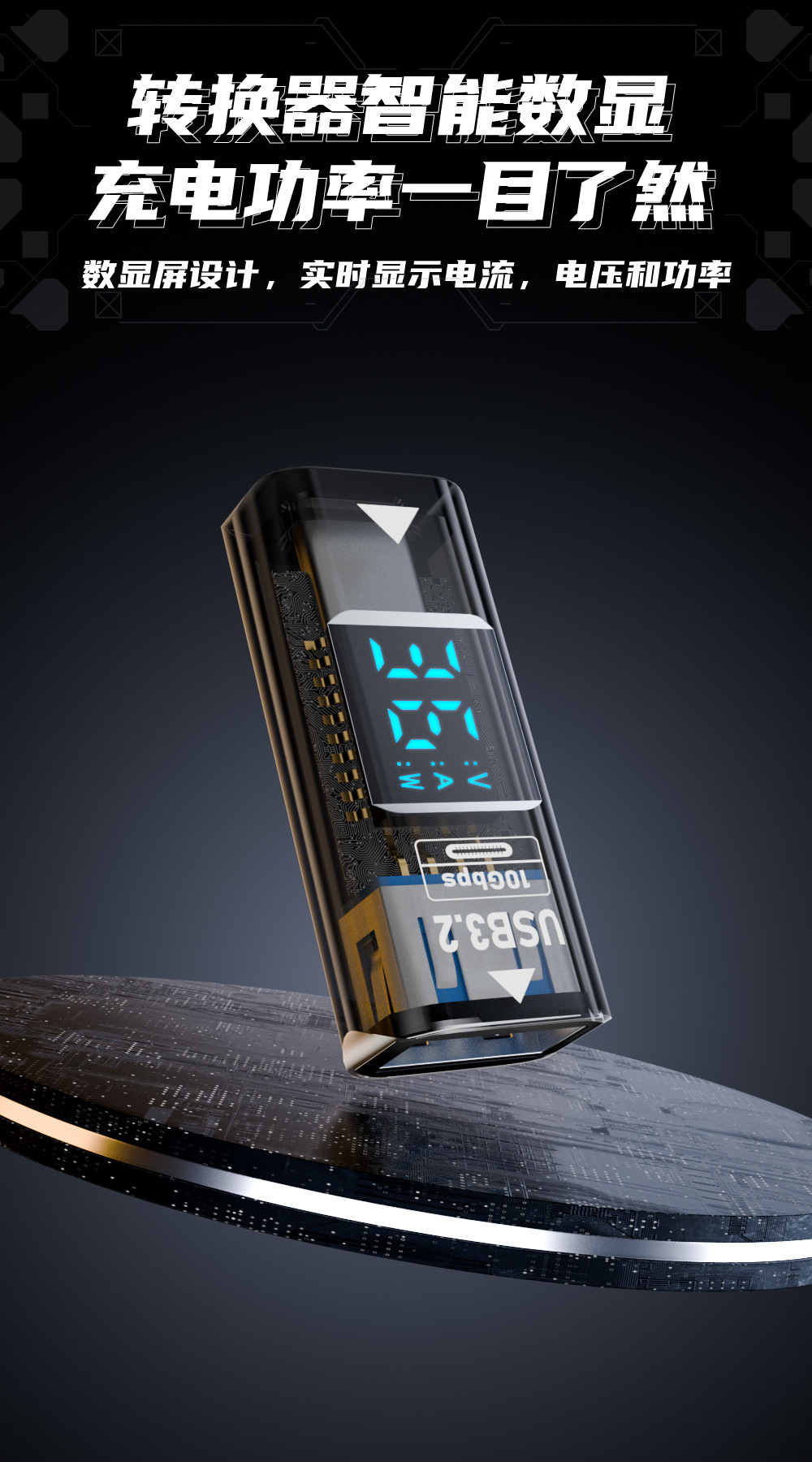 USB 디지털 디스플레이 어댑터 타입 C 버스-USB 3.2/10GB 지능형 디지털 디스플레이 전류 및 전압 USB 어댑터스토어 가기