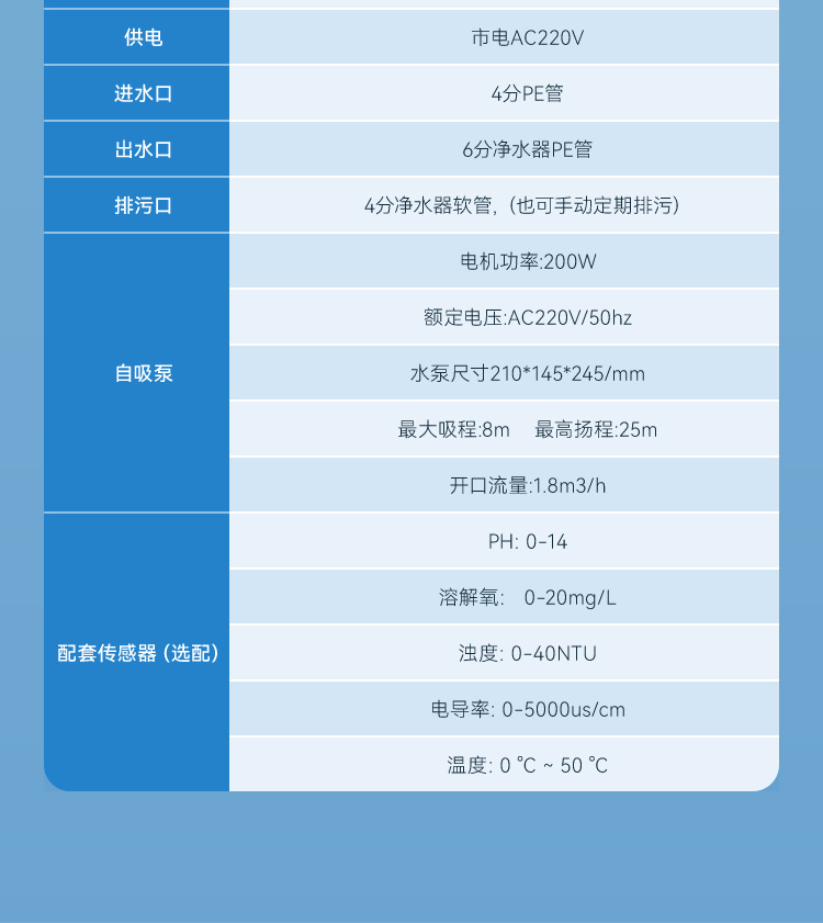 • 수질에 대한 세 가지 매개변수 QSZ03