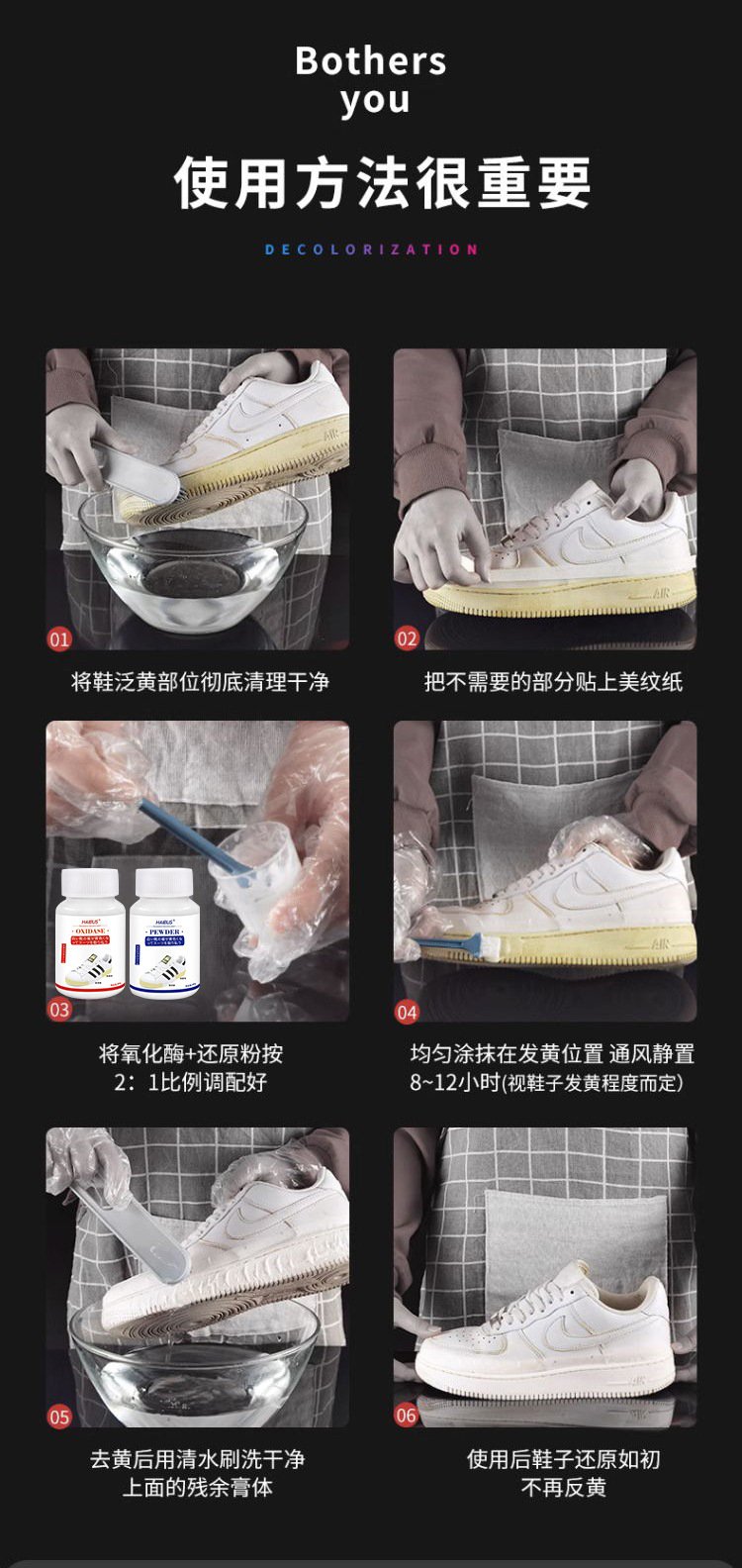 신발 가장자리 황변 제거제, 신발 황변 제거, 산화환원제, 산화효소 세제, 흰 운동화 세척제, 미백 운동화 세제
