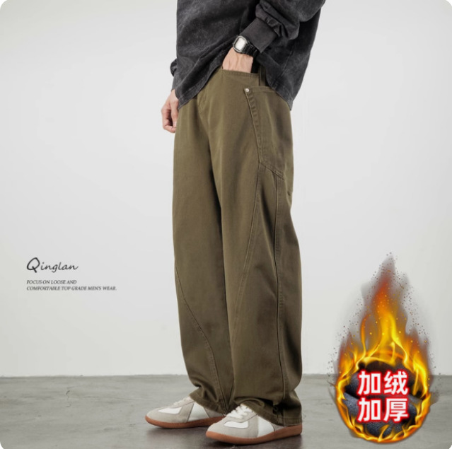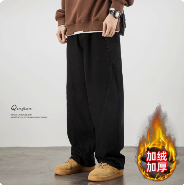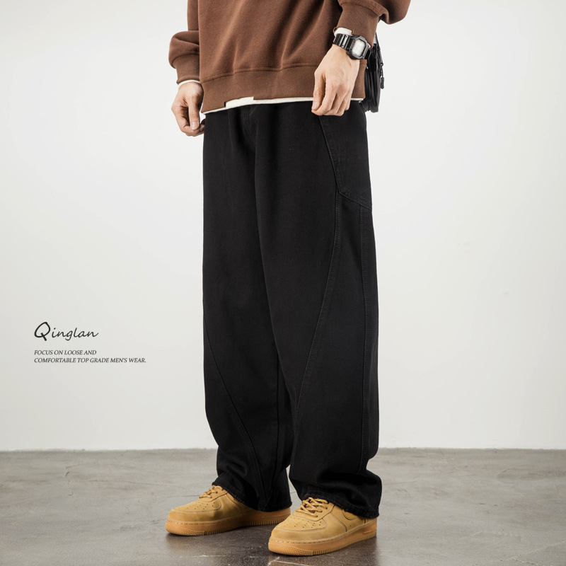 가을 새 청바지 남성용 루즈 스트레이트 딥 와이드 레그 팬츠 디자인 틈새 미국 스타일 트렌디 한 시미 터 바지스토어 가기