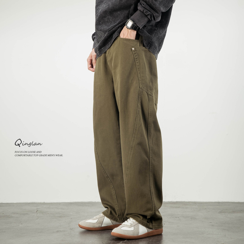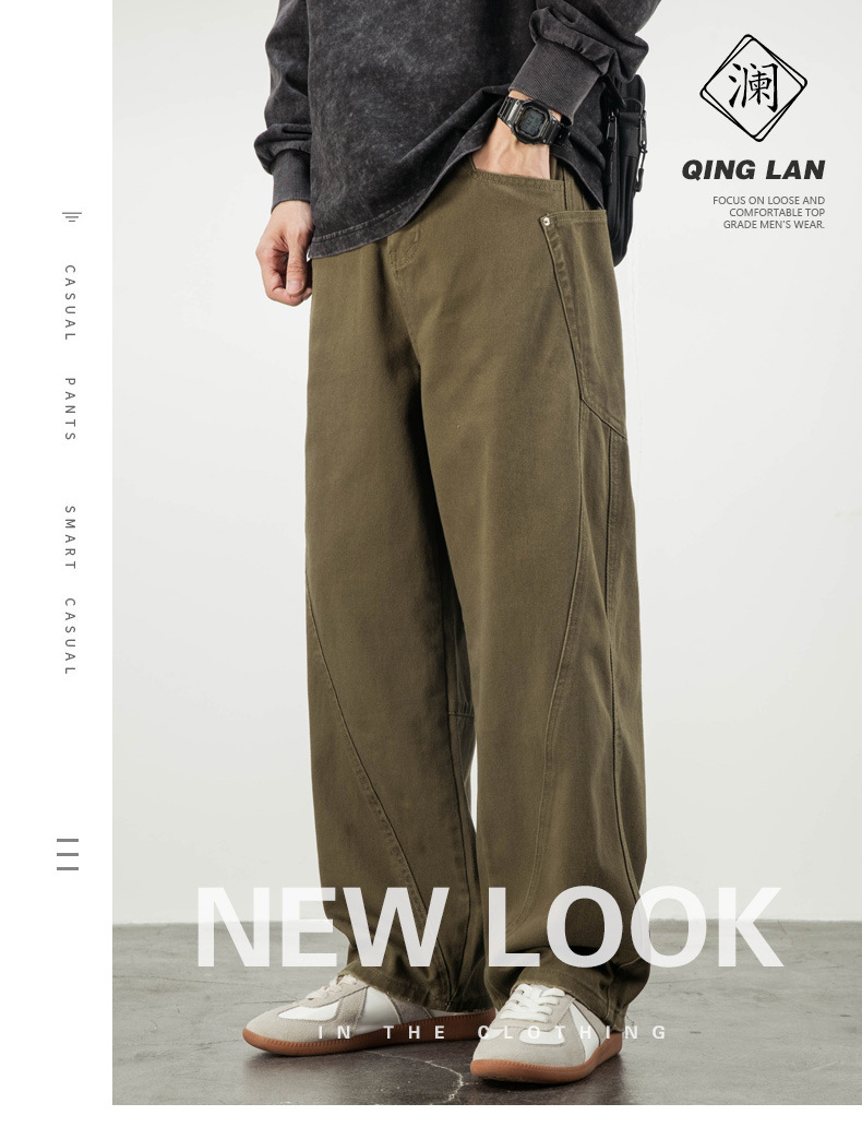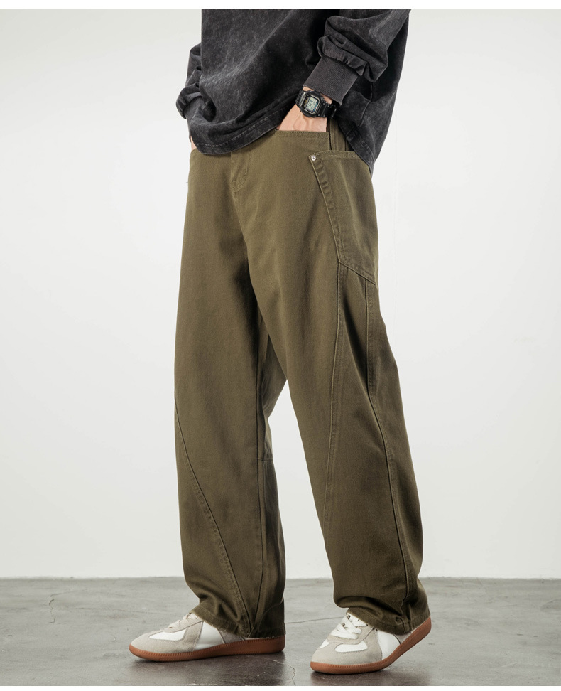 가을 새 청바지 남성용 루즈 스트레이트 딥 와이드 레그 팬츠 디자인 틈새 미국 스타일 트렌디 한 시미 터 바지