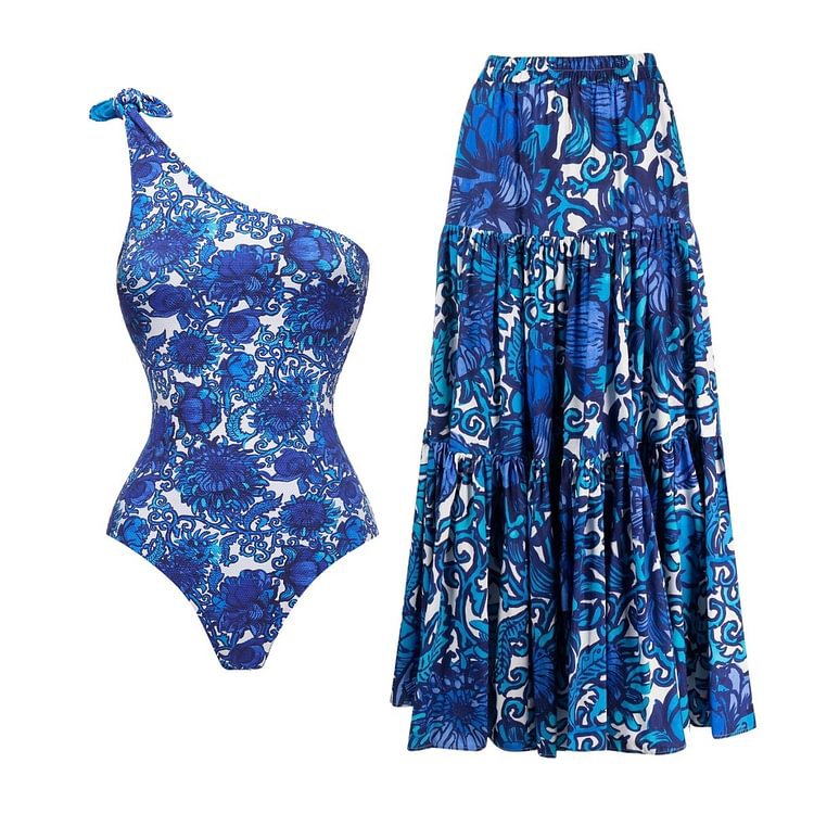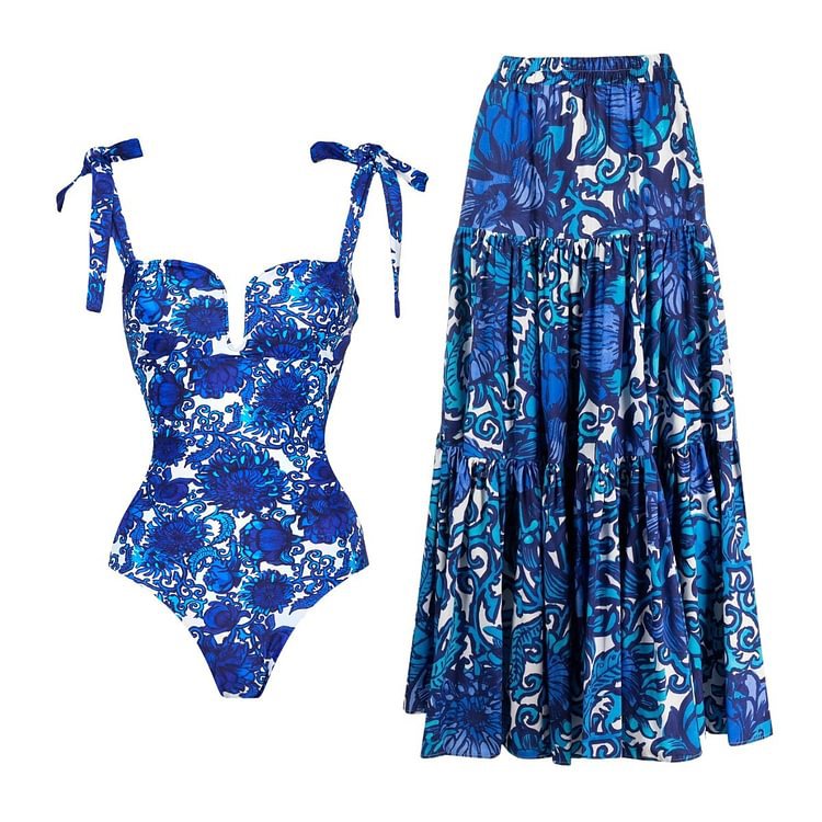 2024 유럽과 미국의 새로운 아마존 AliExpress 인쇄 활 스트랩 수영복 여성 세트 휴가 원피스