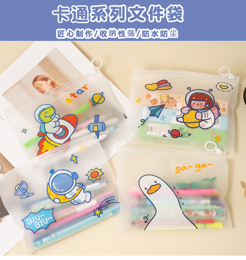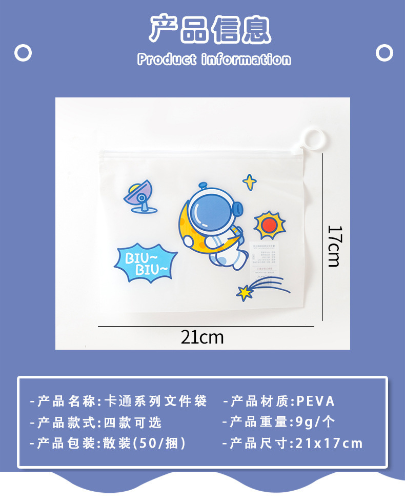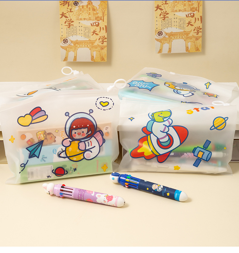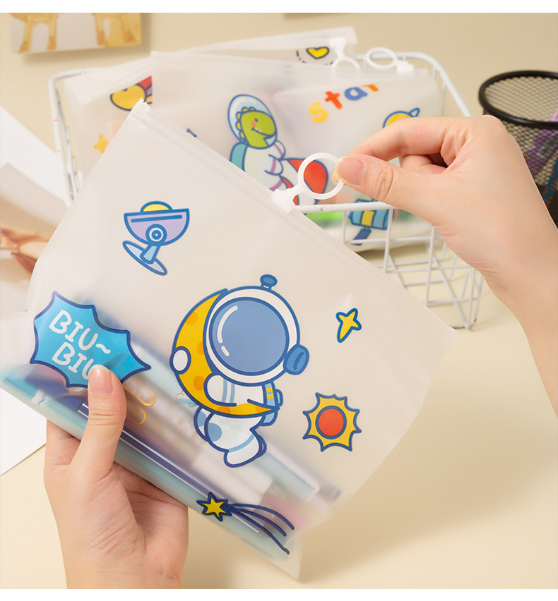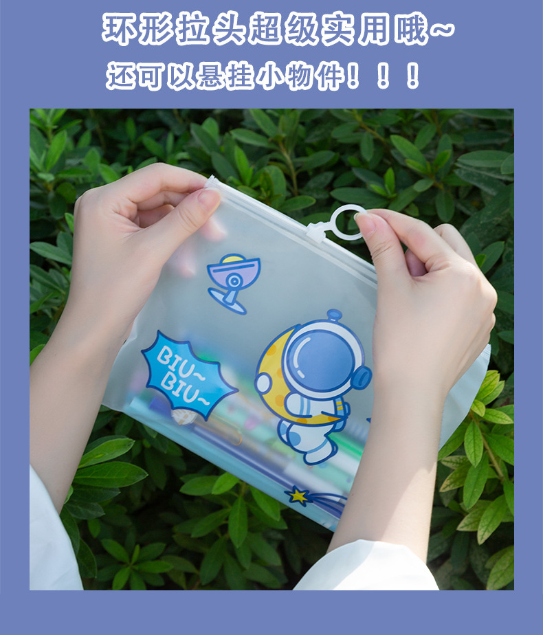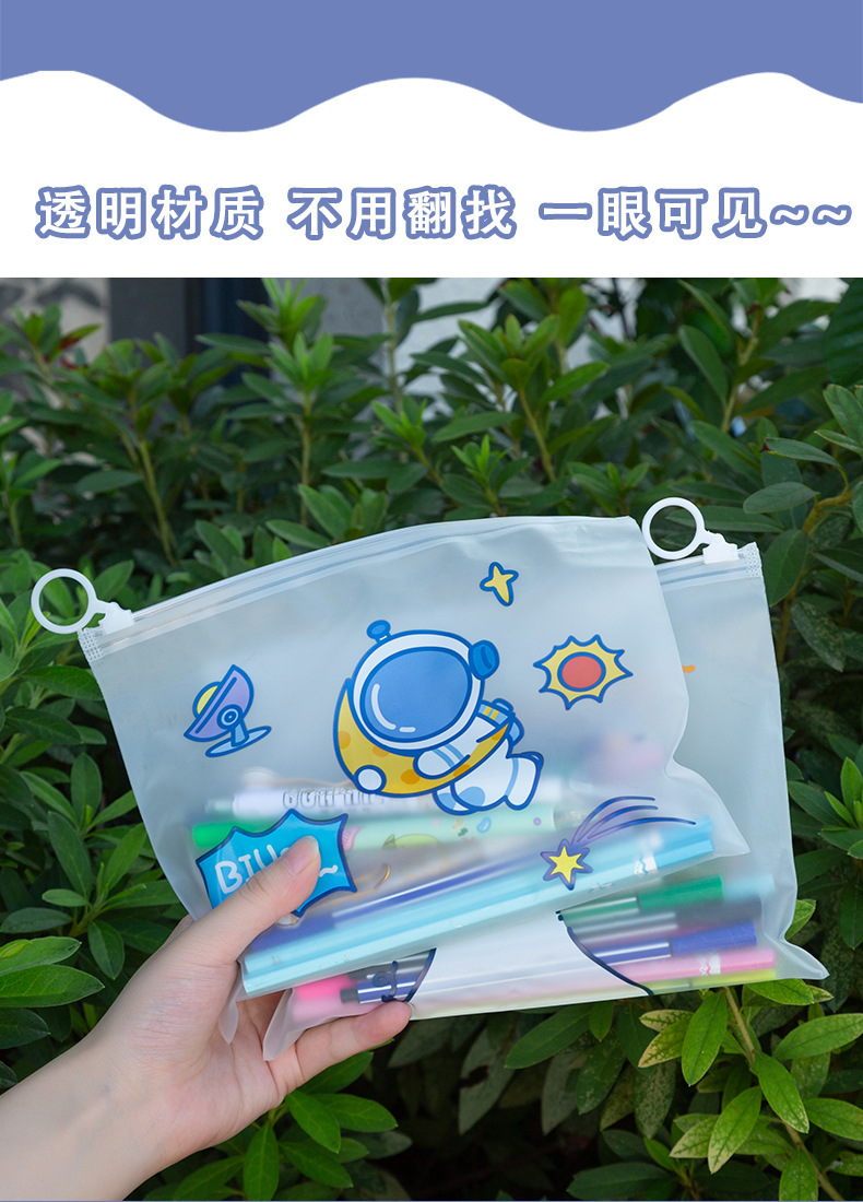 만화 우주 비행사 파일 가방 우주인 지퍼 문구 보관 가방 학생 투명 방수 테스트 종이 정보 가방스토어 가기