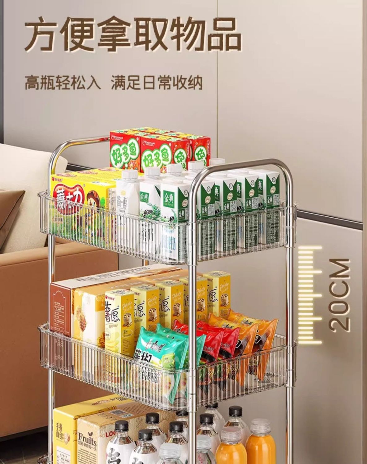 스낵 및 음료 보관함, 이동식 틈새형 아크릴 다층 수납랙, 컵홀더, 회전바퀴