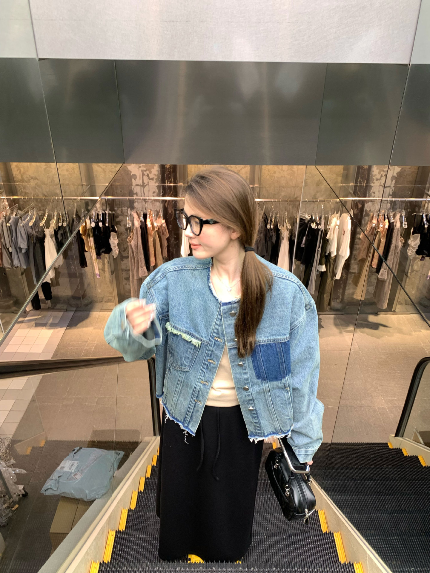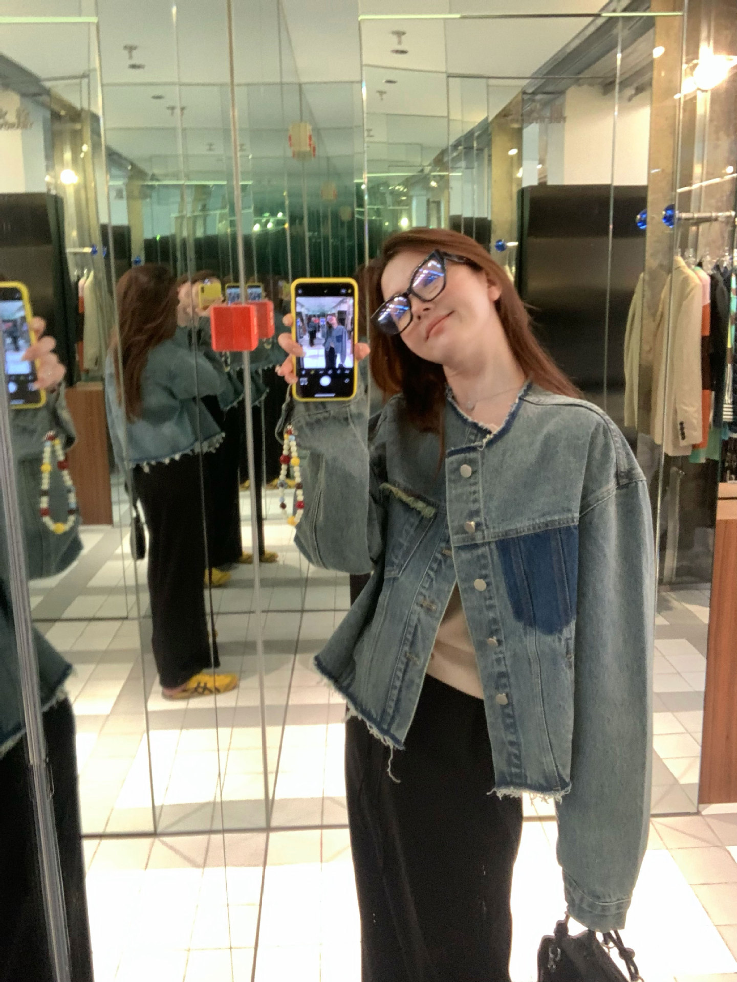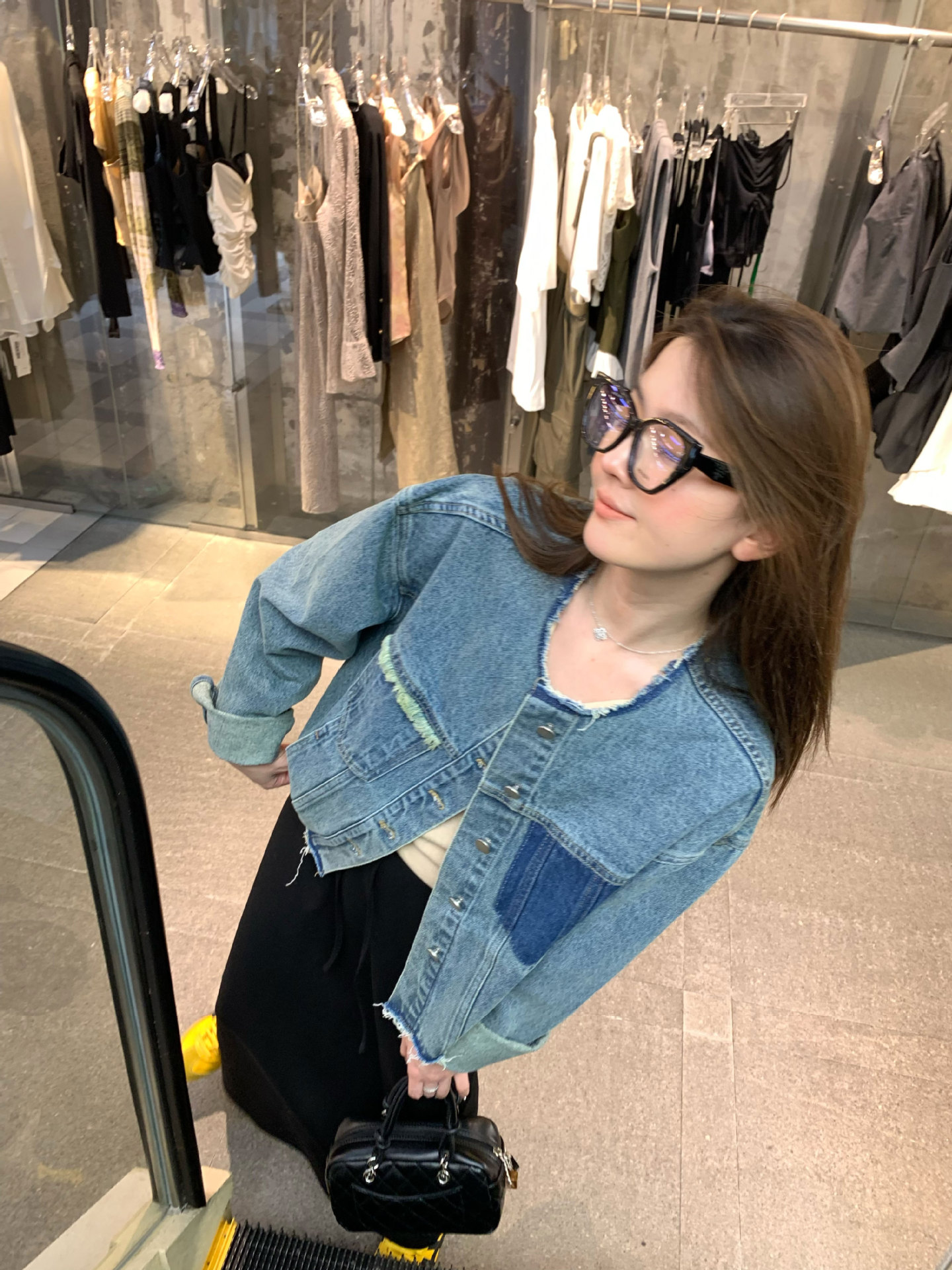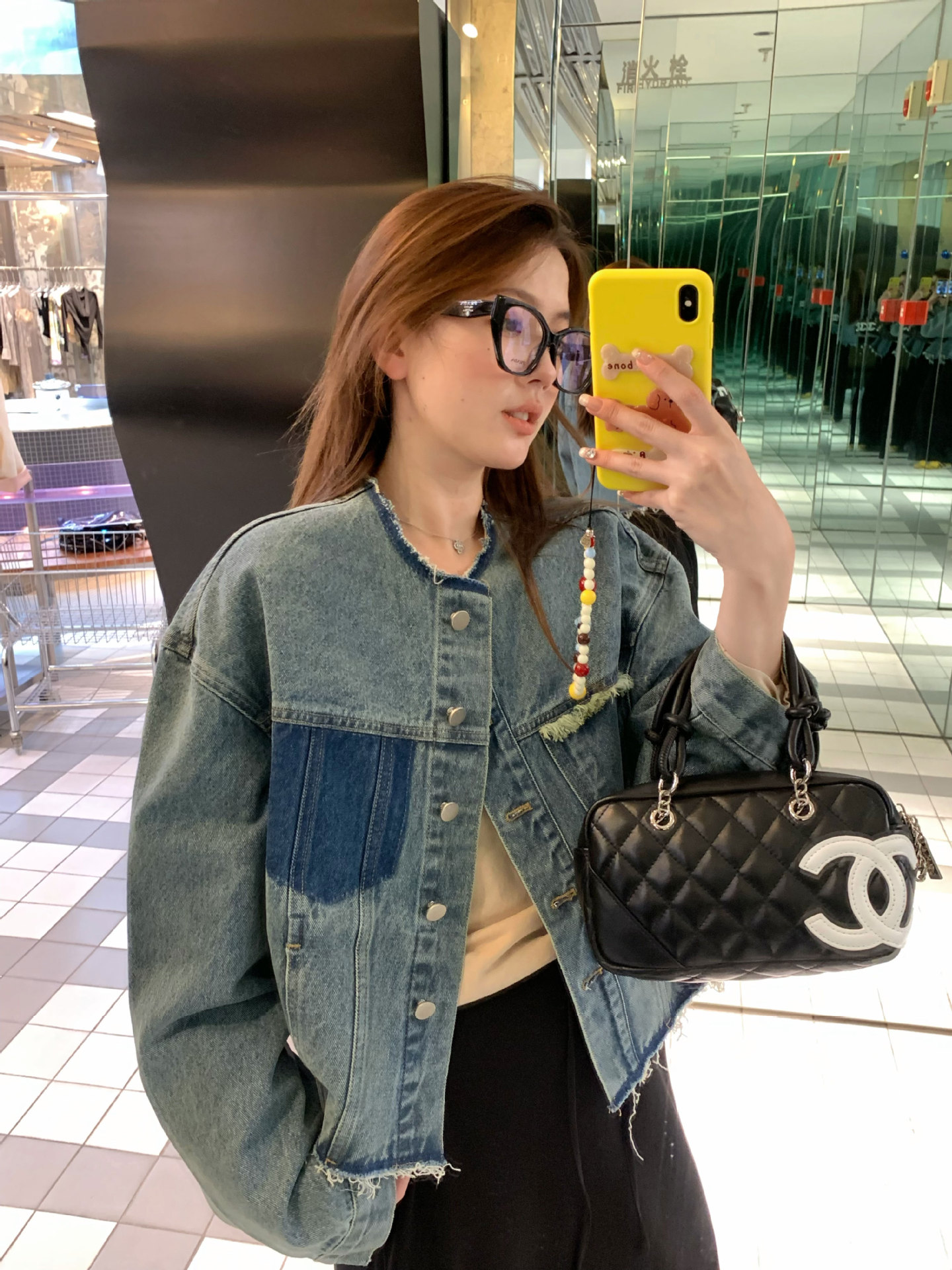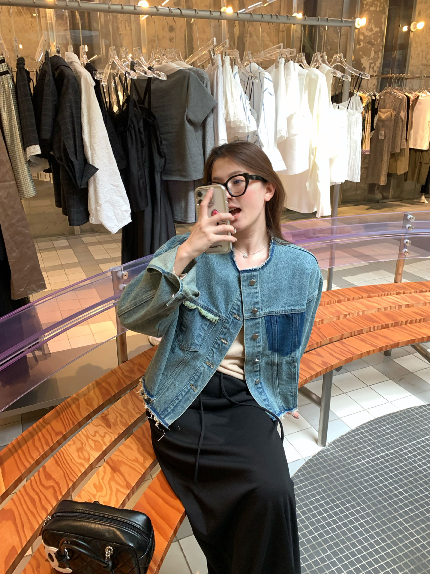 홍콩 스타일 빈티지 세련된 데님 코트 여성의 봄과 가을 세탁 오래 된 디자인 센스 루즈 술 녹 크루 넥 재킷스토어 가기