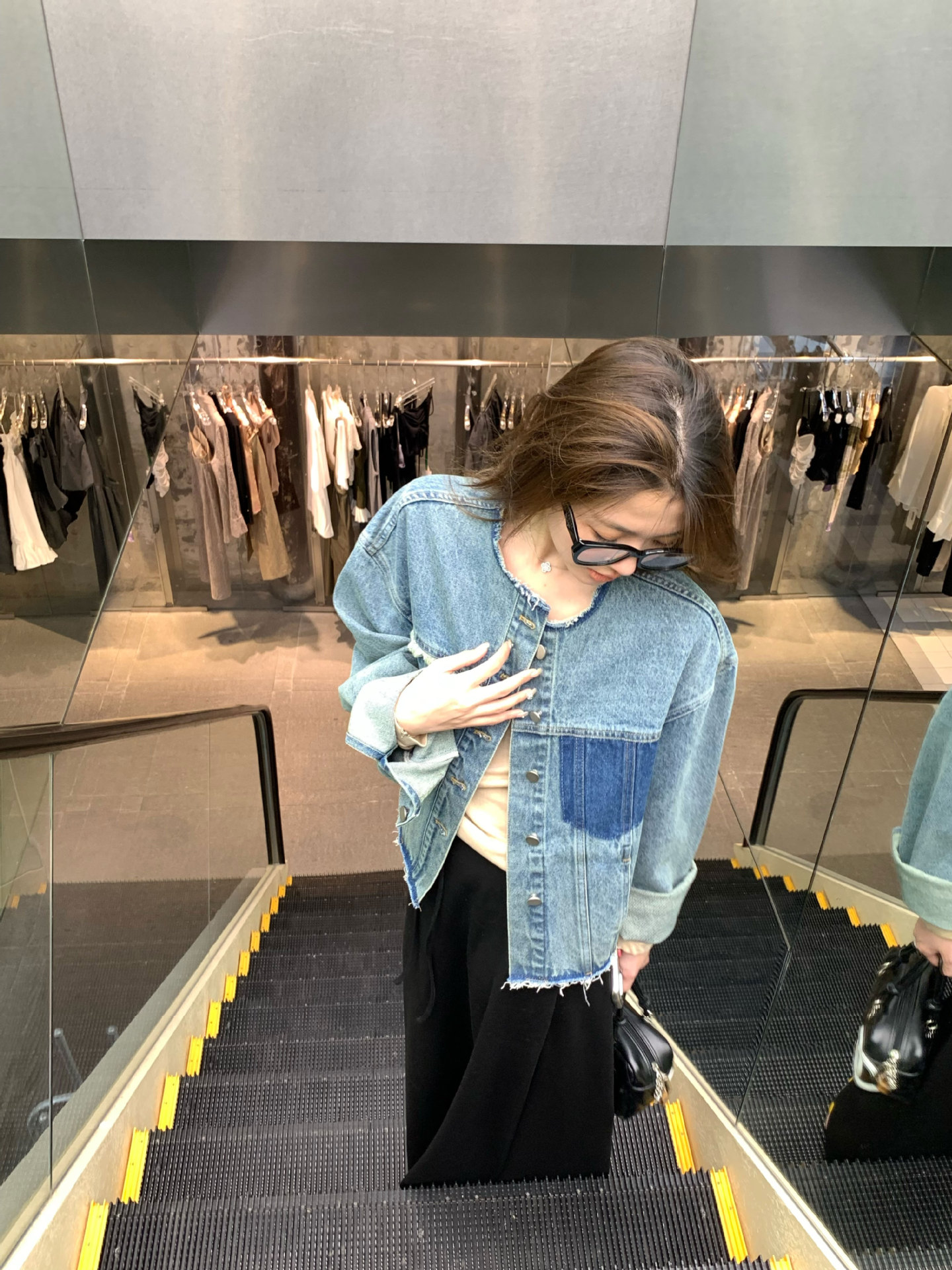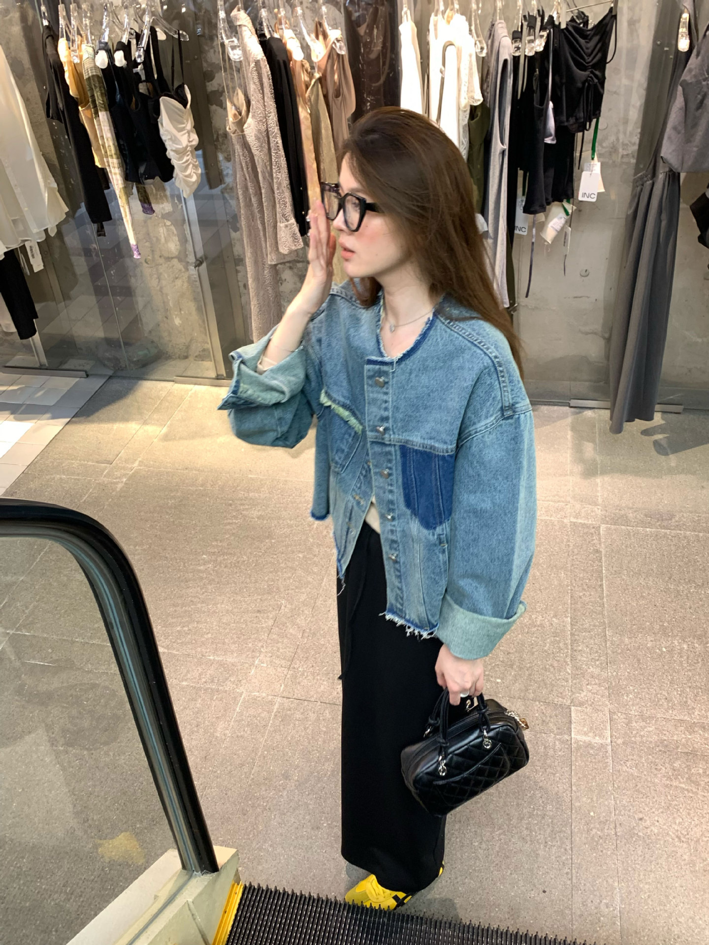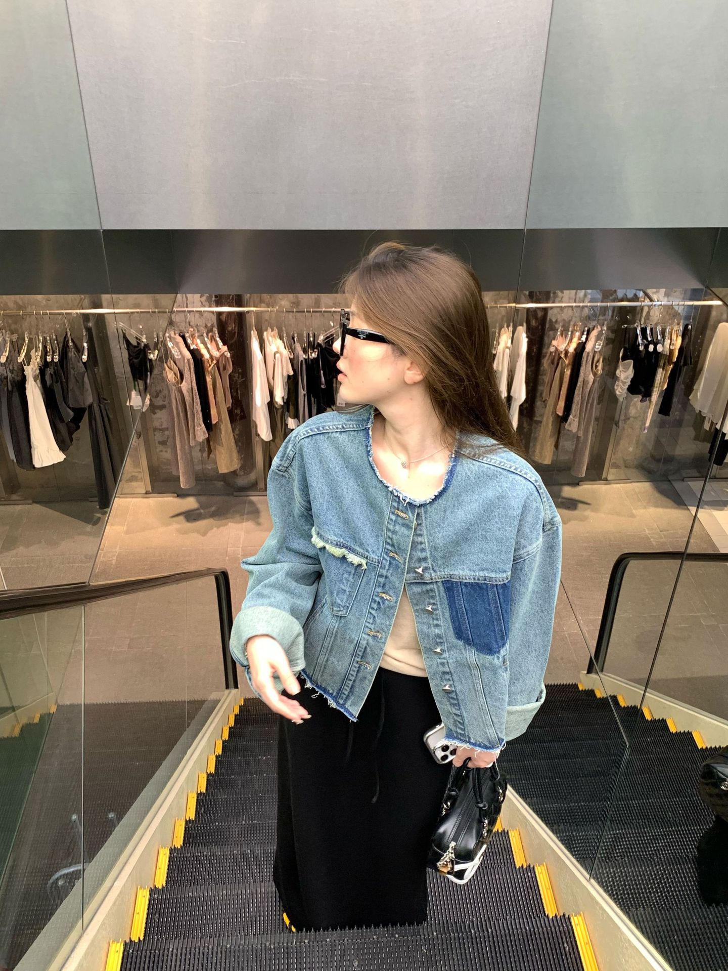 홍콩 스타일 빈티지 세련된 데님 코트 여성의 봄과 가을 세탁 오래 된 디자인 센스 루즈 술 녹 크루 넥 재킷