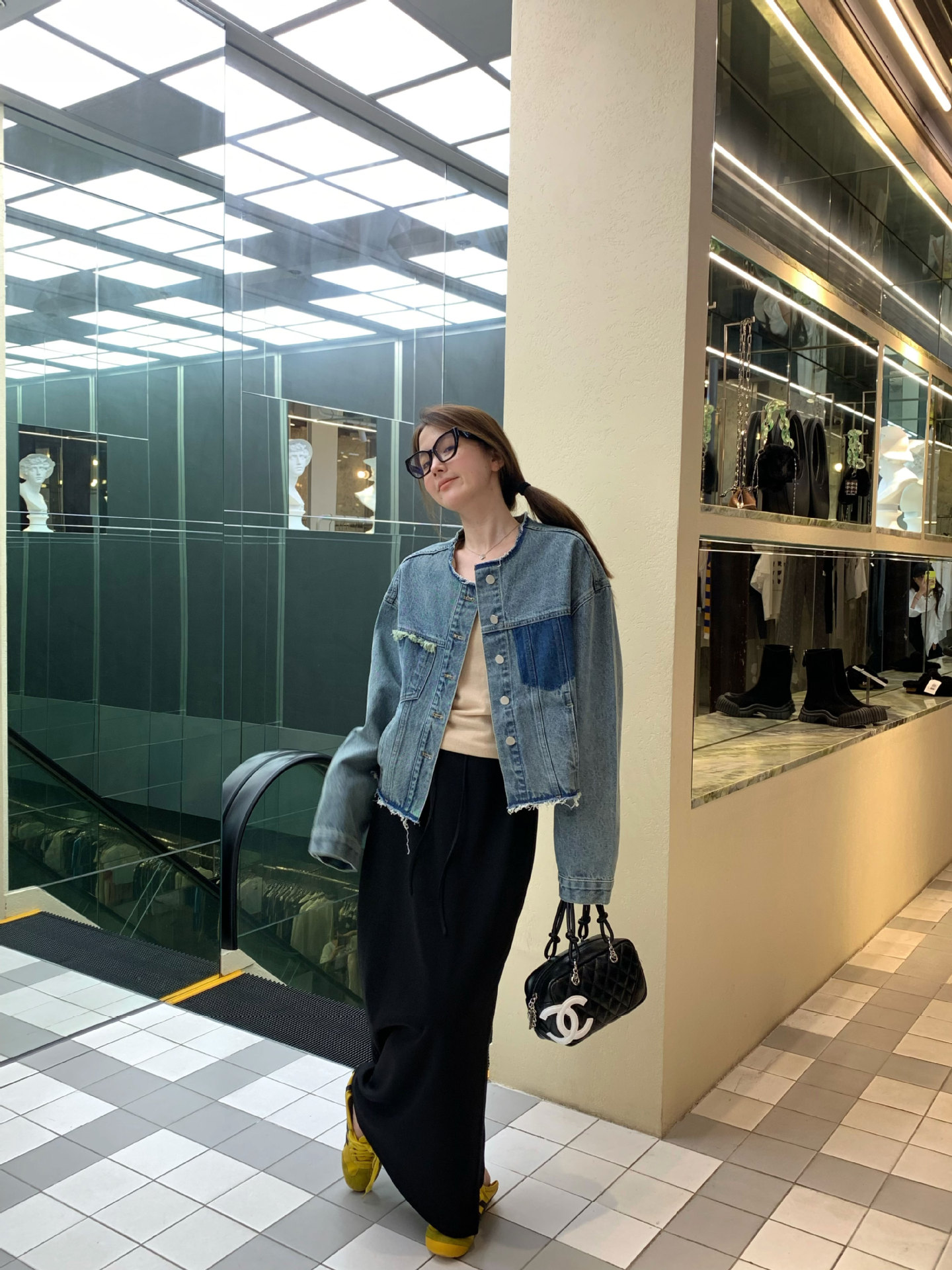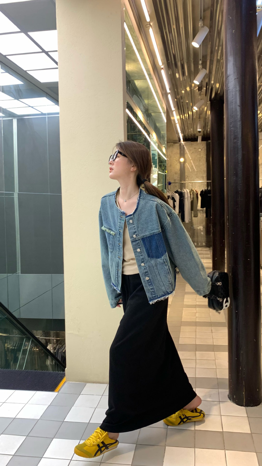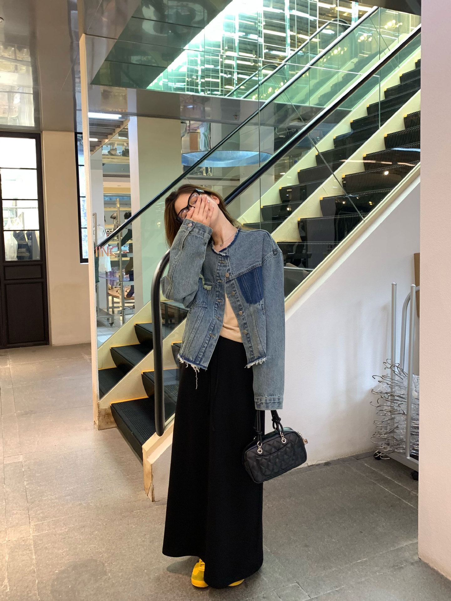 홍콩 스타일 빈티지 세련된 데님 코트 여성의 봄과 가을 세탁 오래 된 디자인 센스 루즈 술 녹 크루 넥 재킷