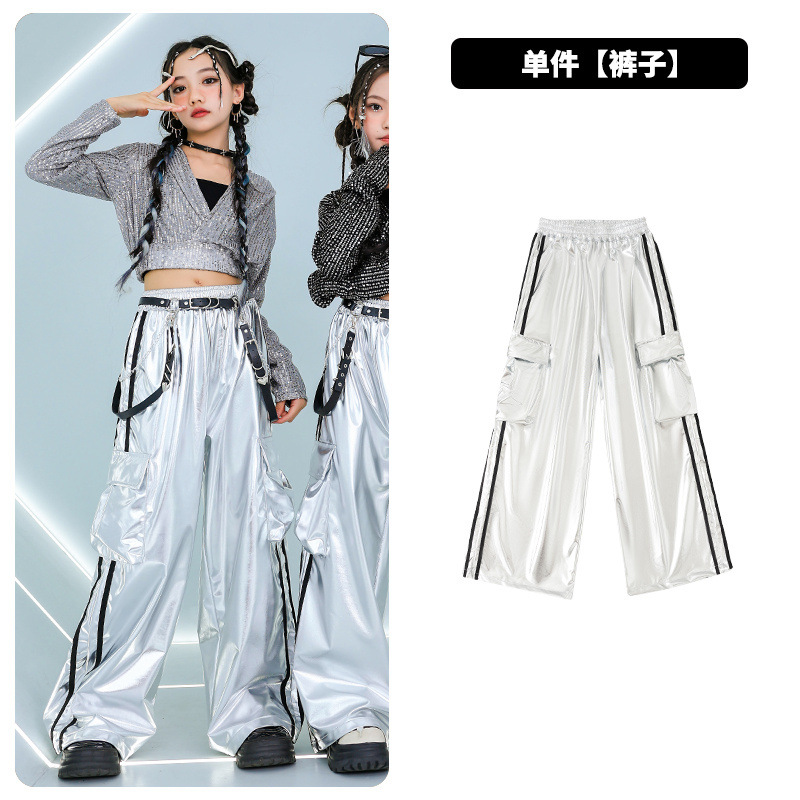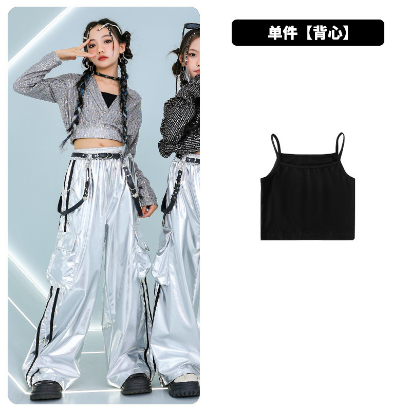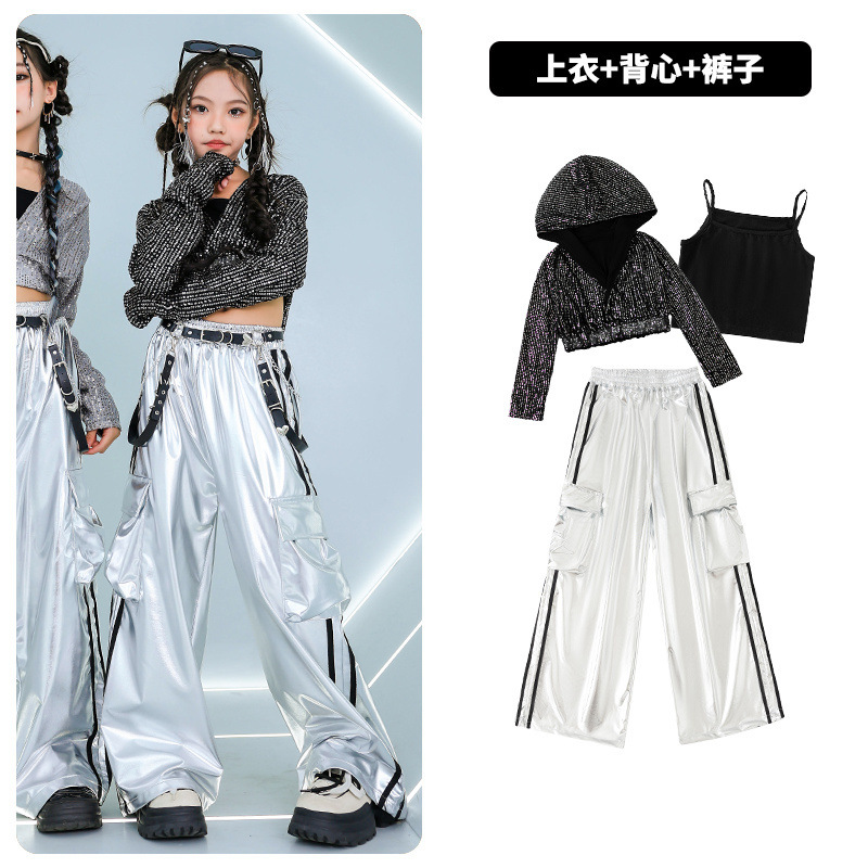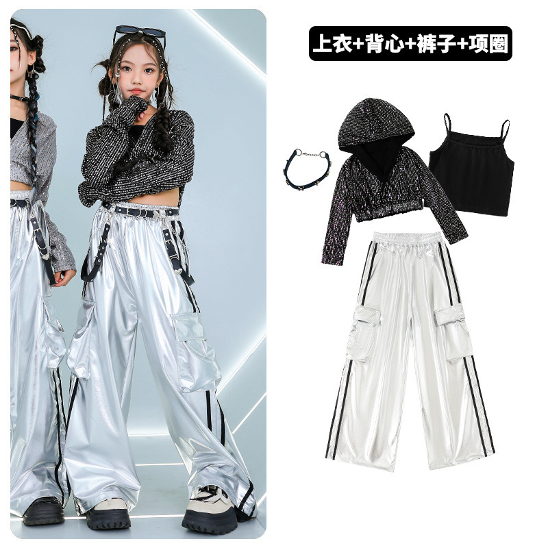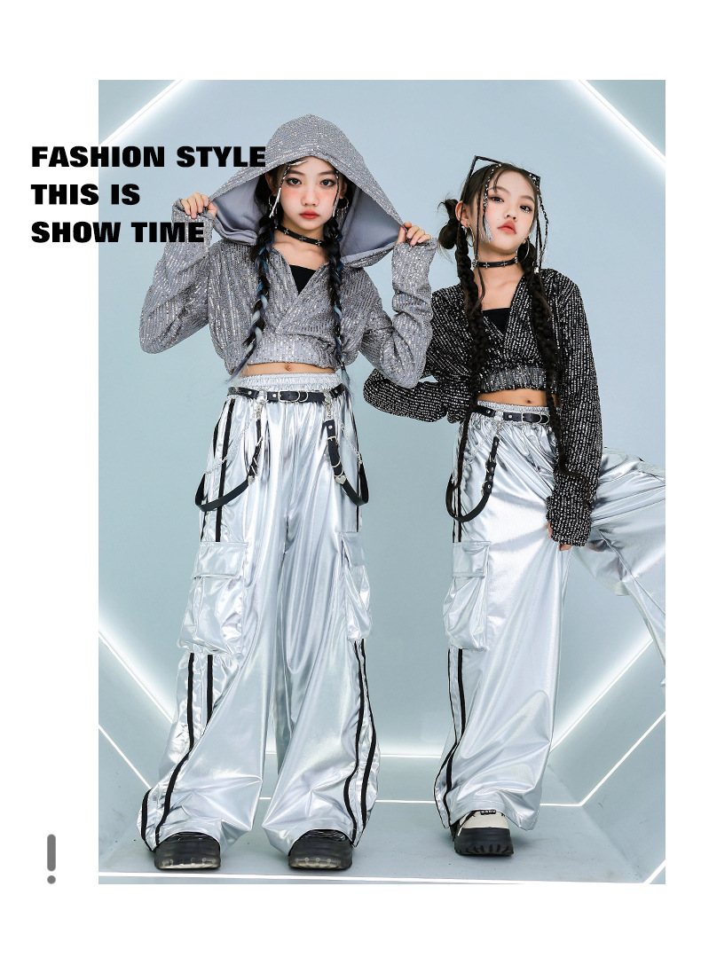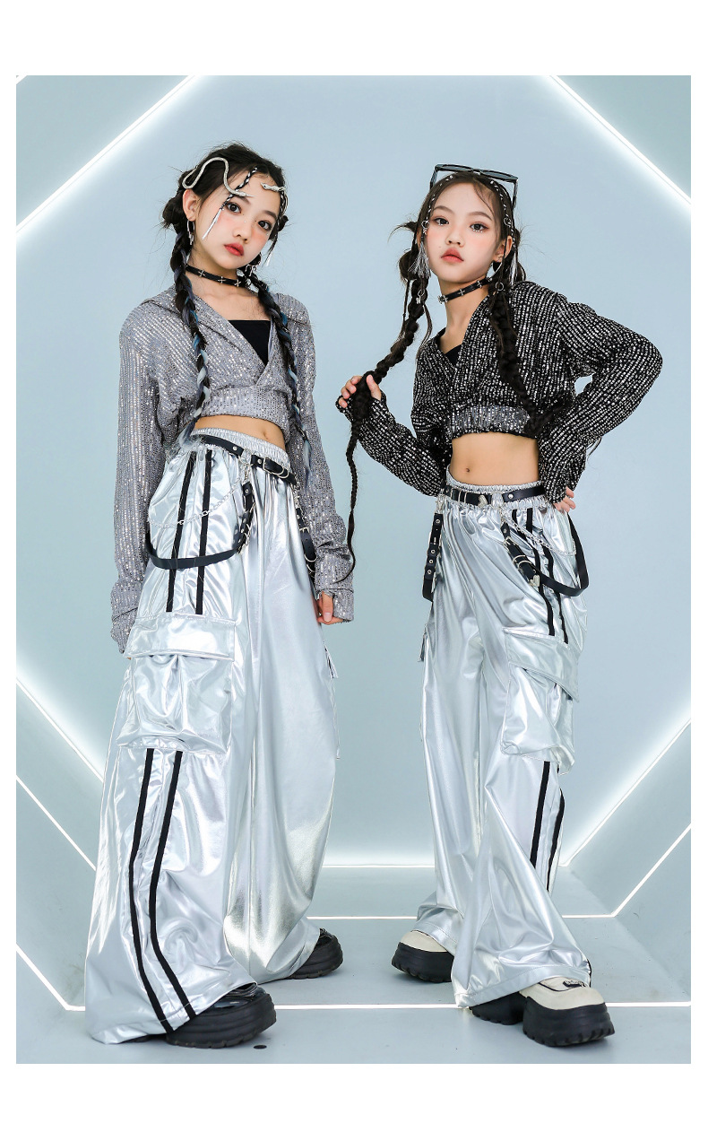 재즈 댄스 걸스 의상 배꼽 실버 속편 세트 유행 거리 대결 댄스 옷 스트리트 댄스 공연 옷 여성스토어 가기