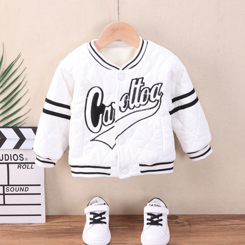 어린이 기모 면화 패딩 의류 도매 한국 아동복 소년 편지 수 놓은 V 넥 지퍼 셔츠 아기 야구 유니폼 세대 헤어스토어 가기