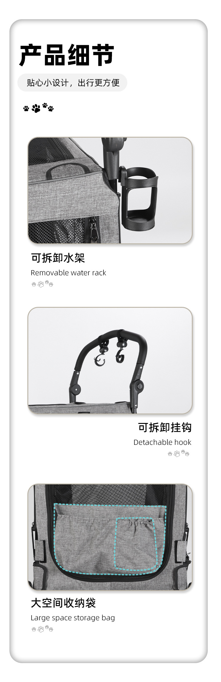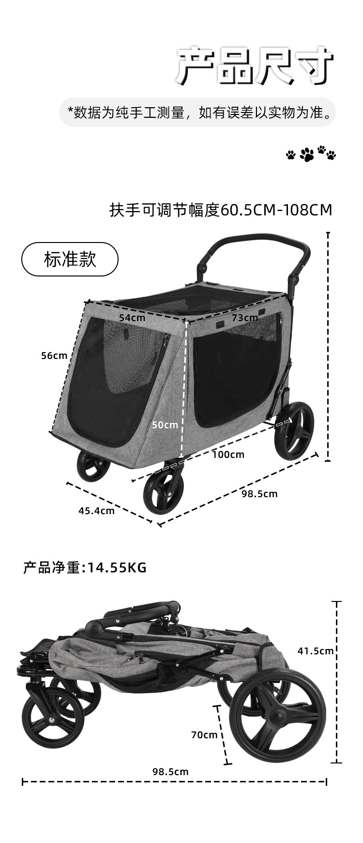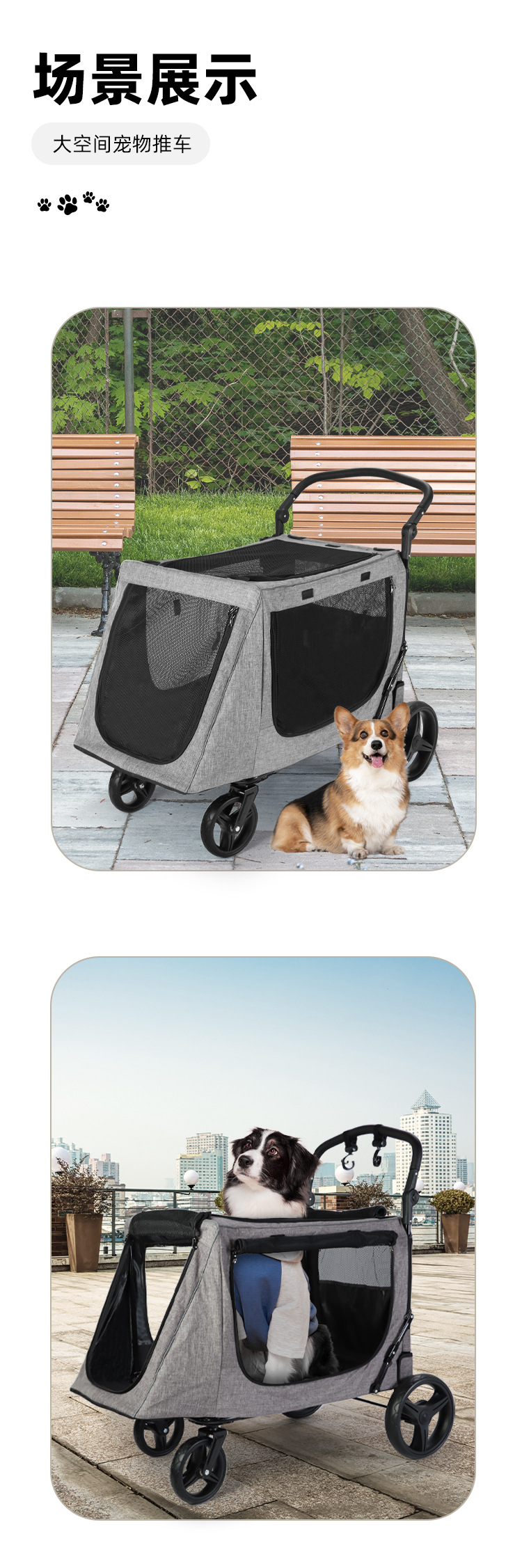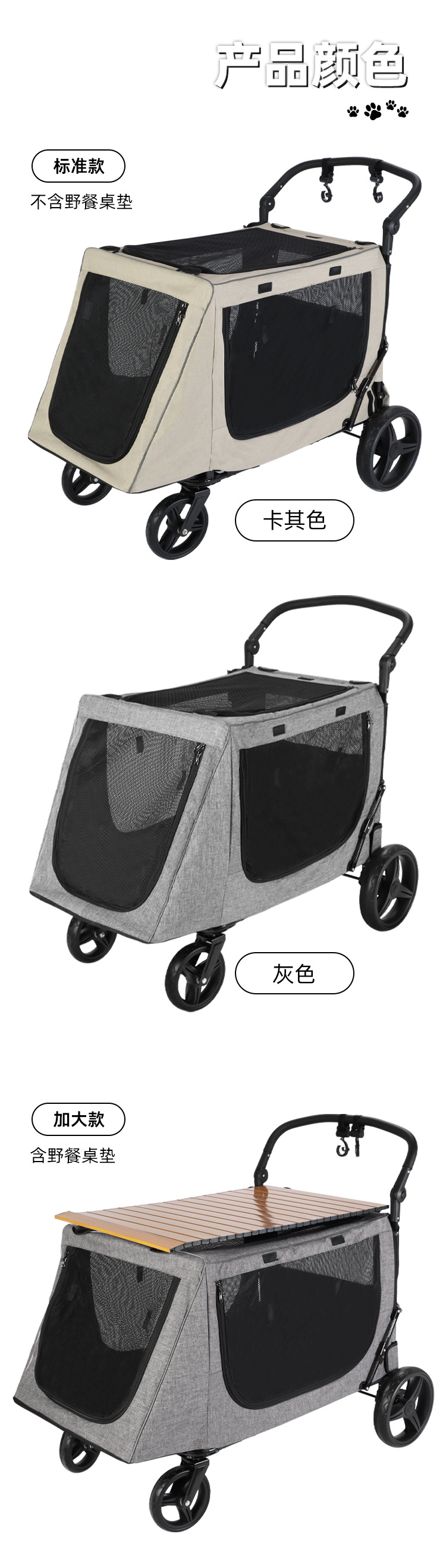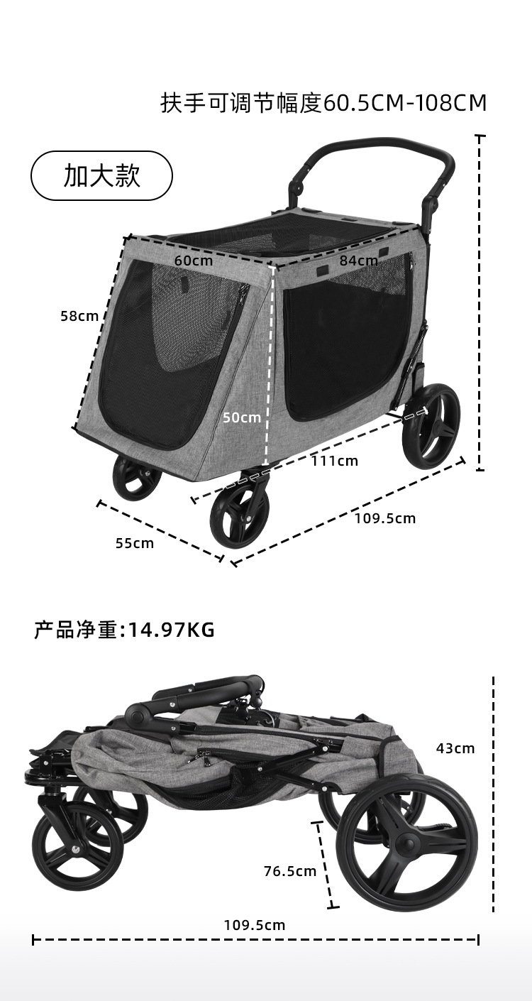 거대한 애완 동물 개 카트 대형, 중형 및 소형 개 여러 고양이 캠핑 카트 노인 개