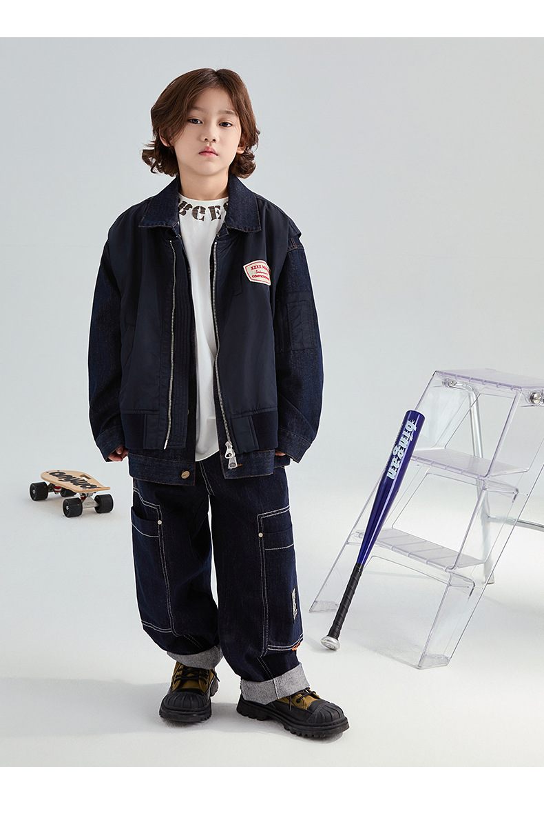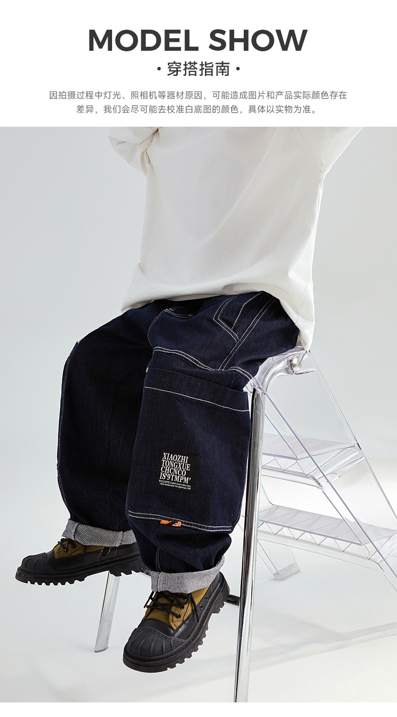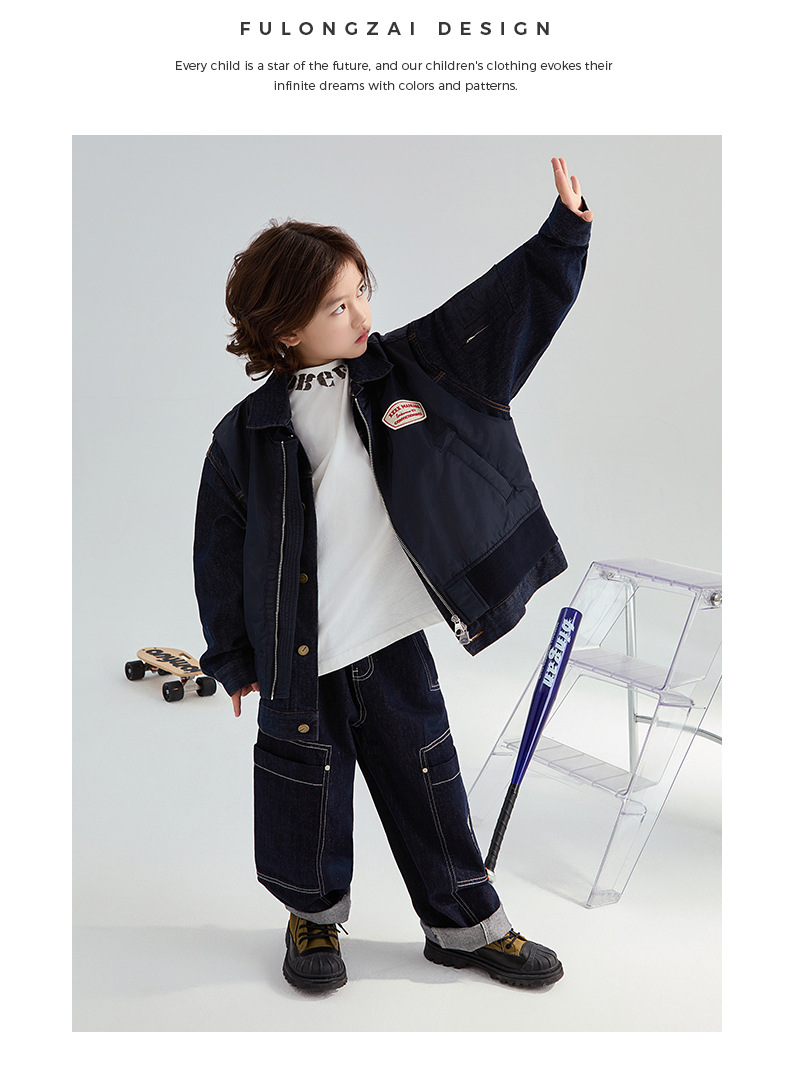 FULONGZAI 부모-어린이 아동복 2024 가을 및 겨울 소년과 소녀 새로운 대형 어린이 느슨한 어린이 작업복 바지스토어 가기