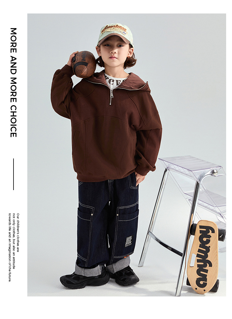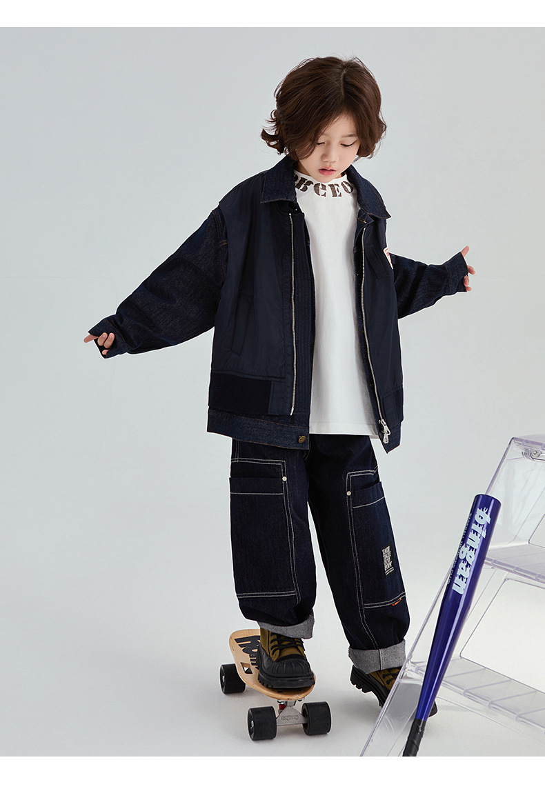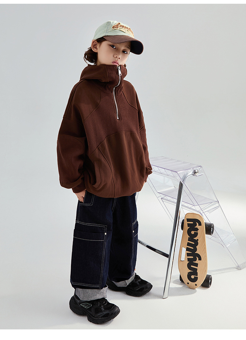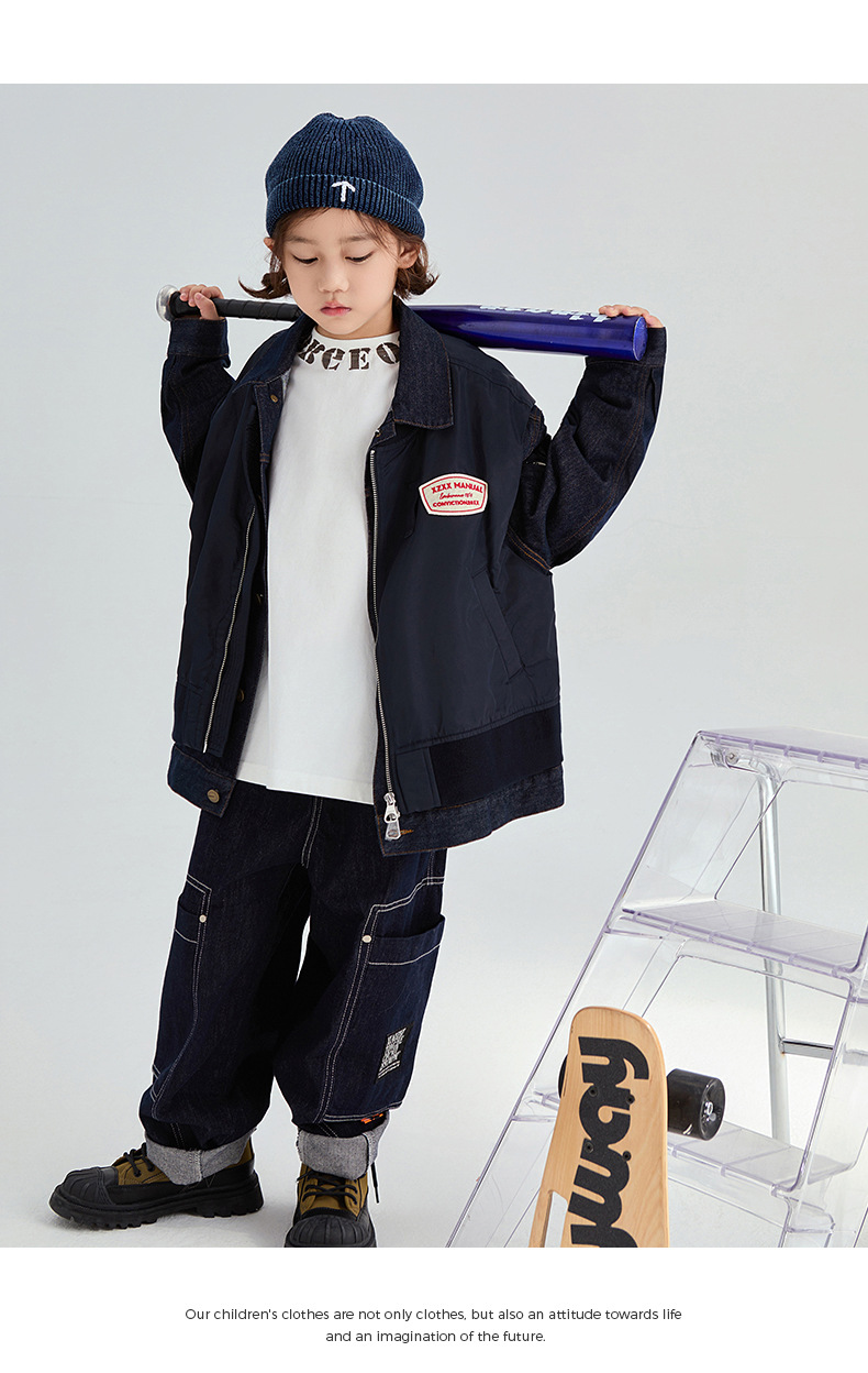 FULONGZAI 부모-어린이 아동복 2024 가을 및 겨울 소년과 소녀 새로운 대형 어린이 느슨한 어린이 작업복 바지스토어 가기