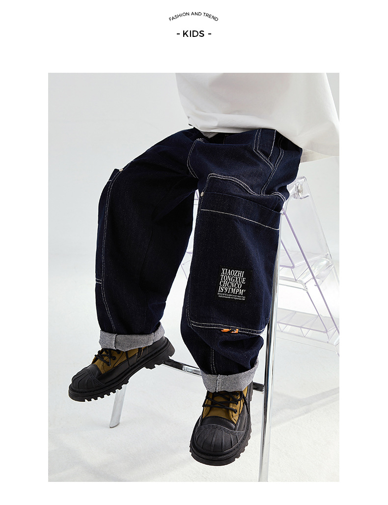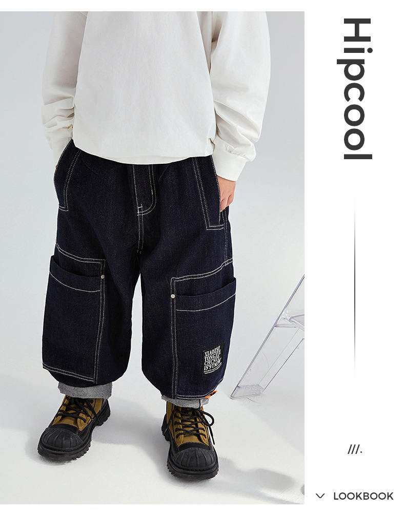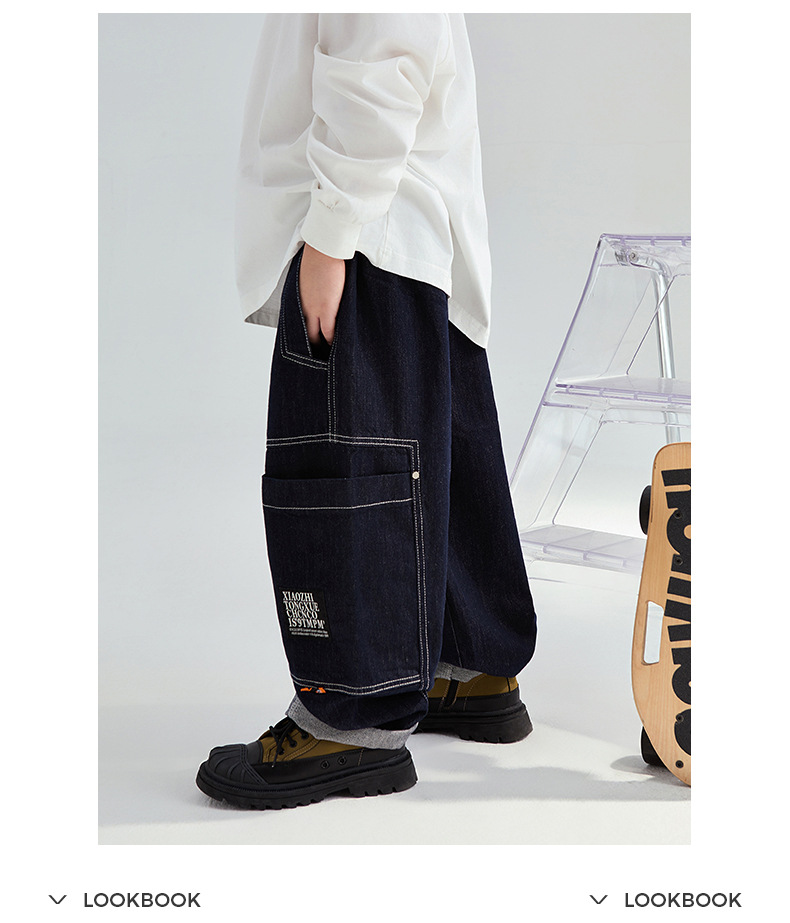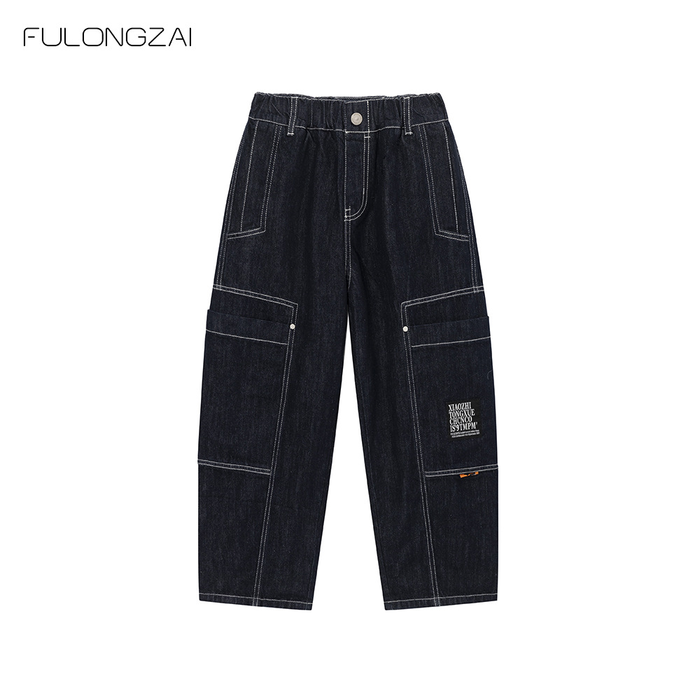 FULONGZAI 부모-어린이 아동복 2024 가을 및 겨울 소년과 소녀 새로운 대형 어린이 느슨한 어린이 작업복 바지