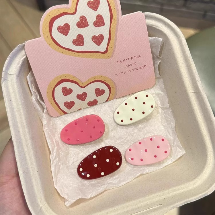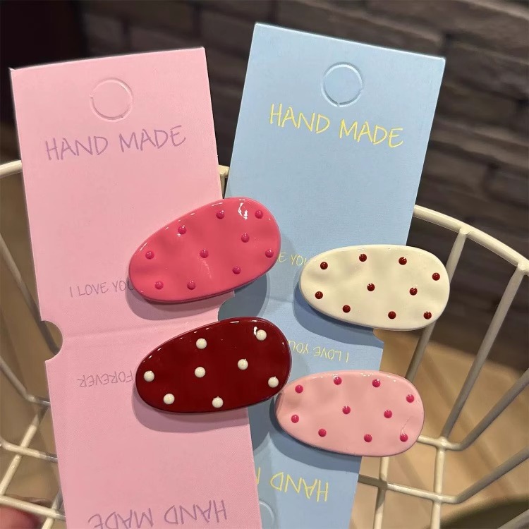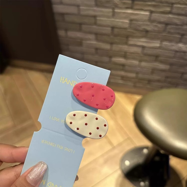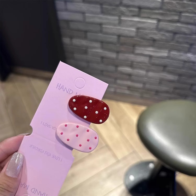 핑크 폴카 도트 타원형 헤어핀 여성용 프린지 헤어 프래그먼트 소녀의 덕빌 클립 달콤한 헤어핀 머리 주소스토어 가기