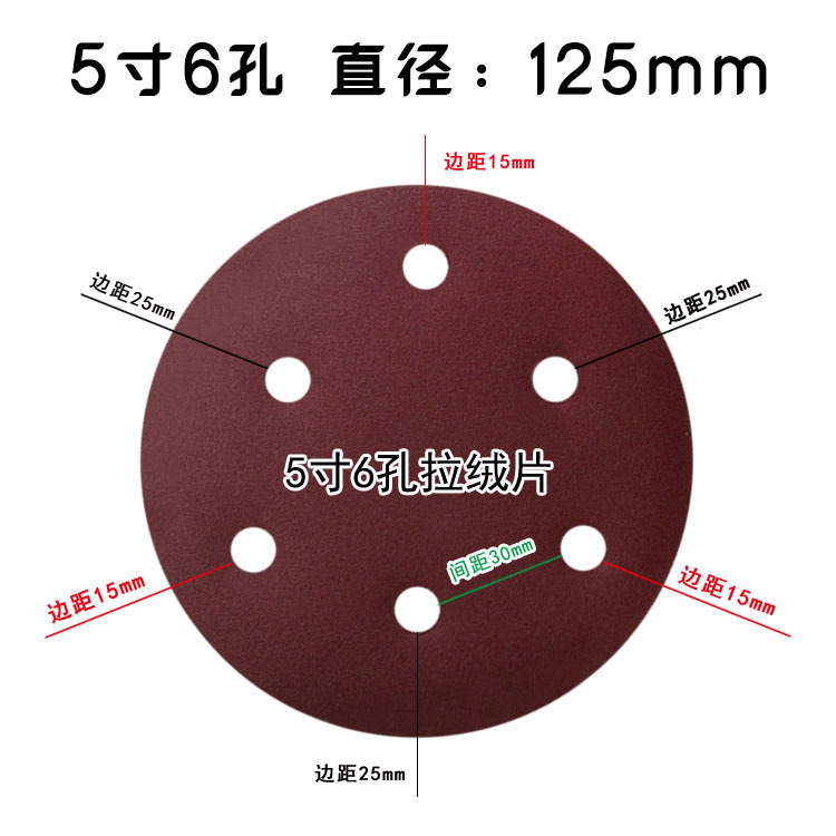 구멍이있는 5 인치 6 홀 플로킹 사포 6 인치 구멍 6 구멍 자체 접착 사포 디스크 기계 샌드페이퍼 백 벨벳 사포