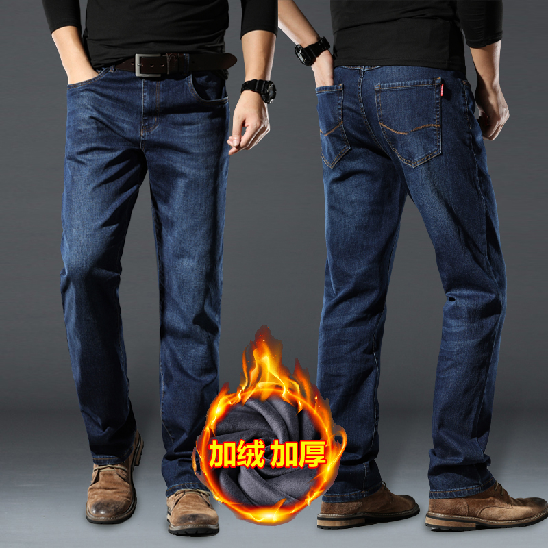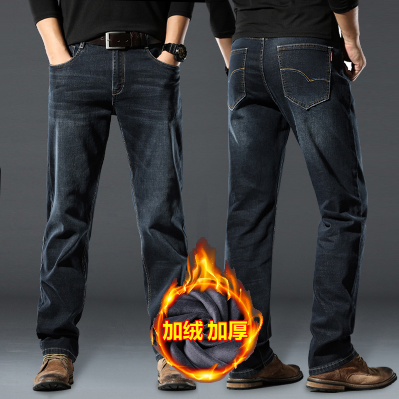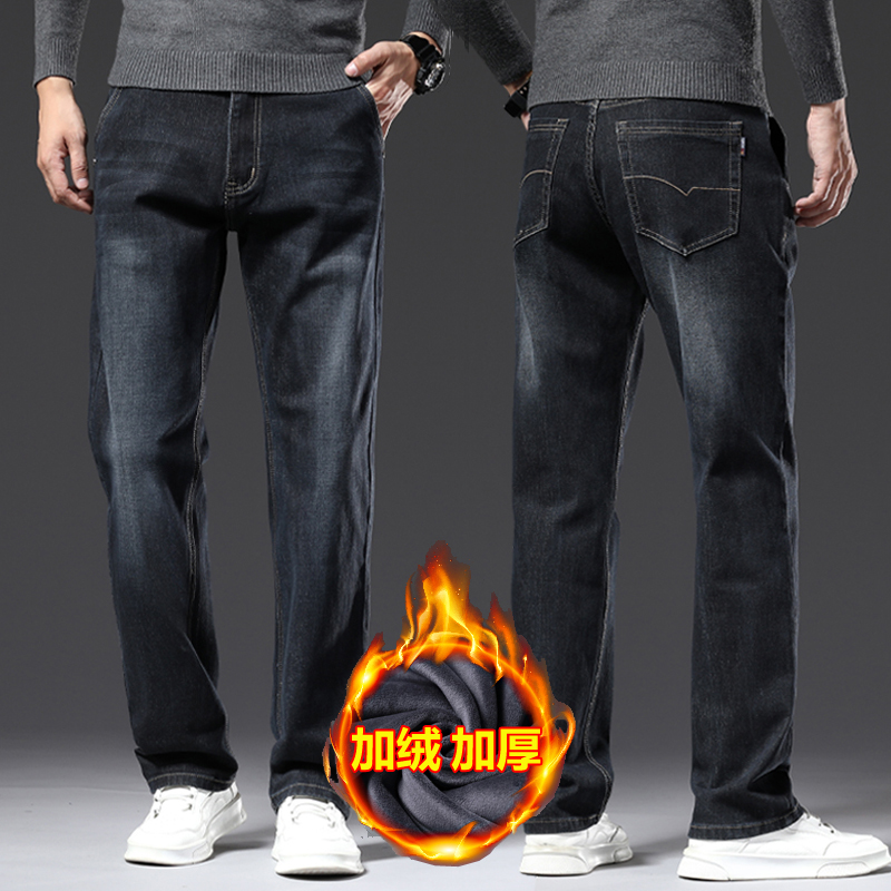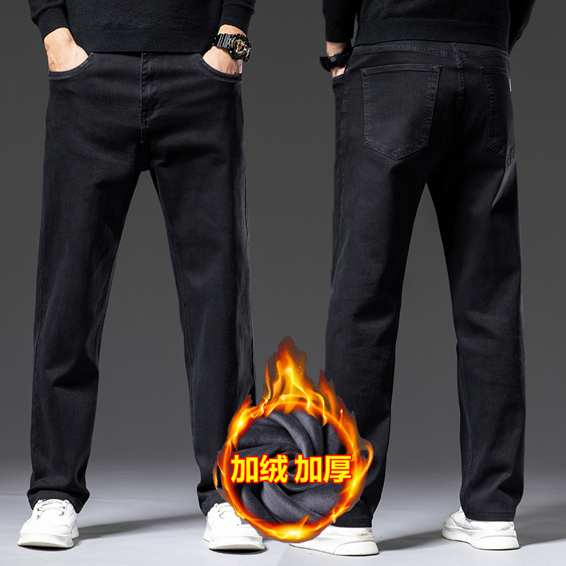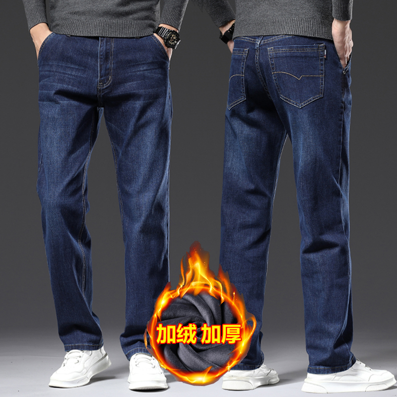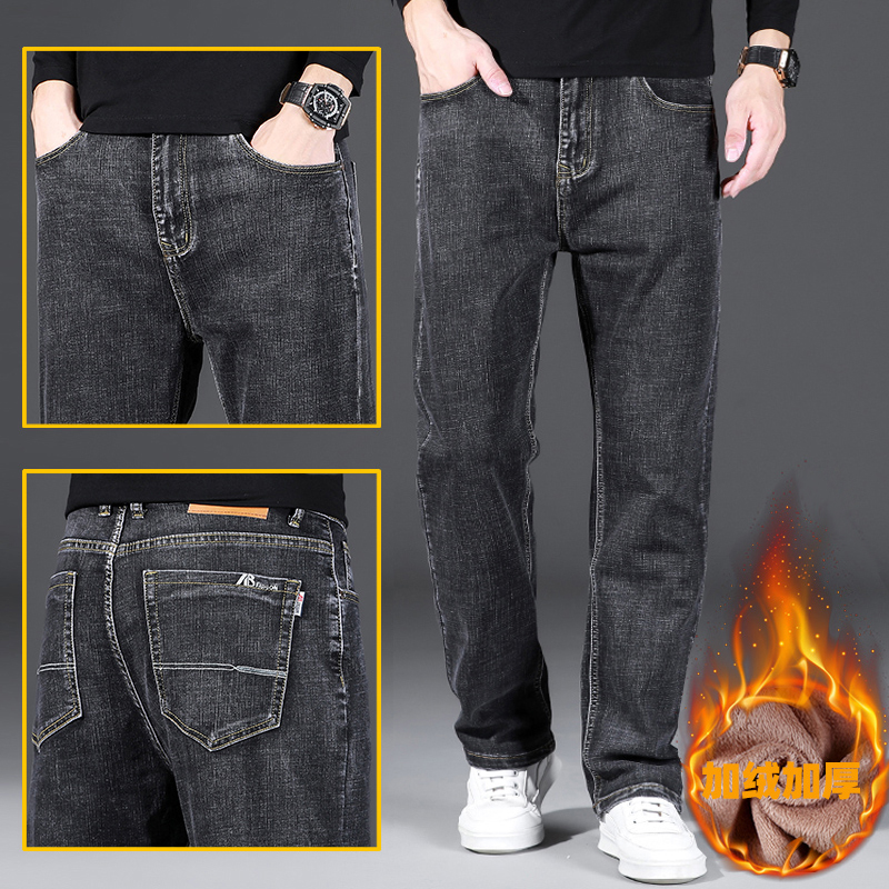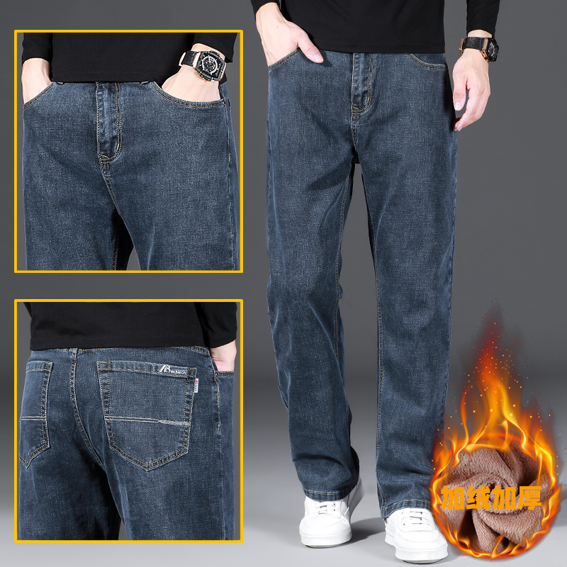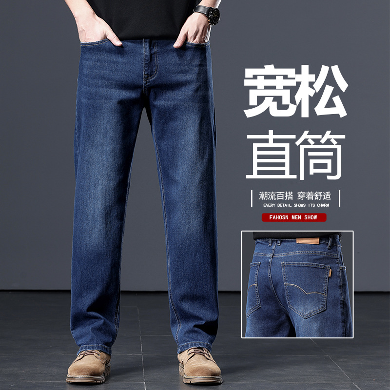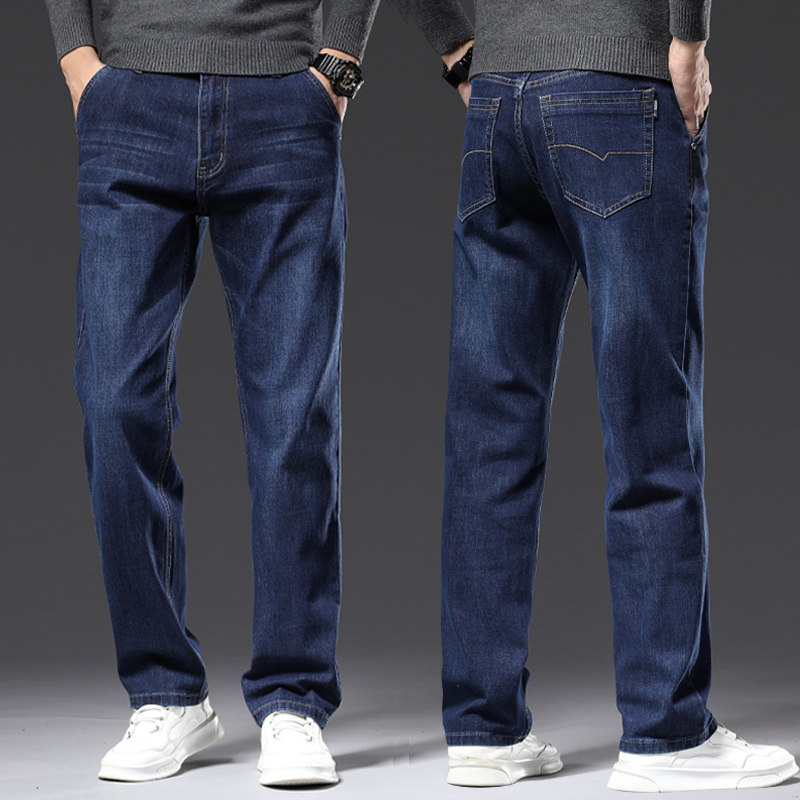 하이 퀄리티 스트레치 청바지 남성용 스트레이트 튜브 느슨한 봄과 가을 2024 새로운 중년 캐주얼 플러스 사이즈 긴 바지스토어 가기