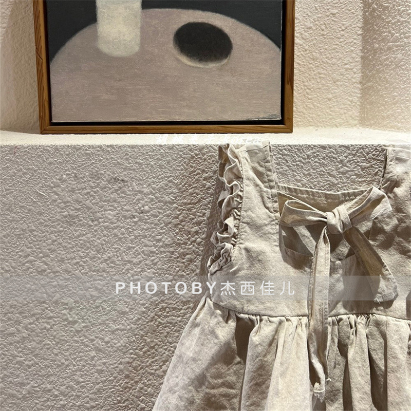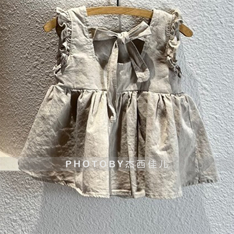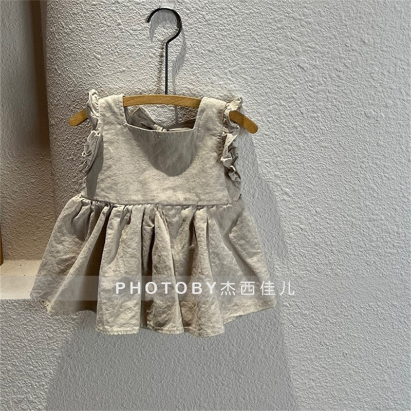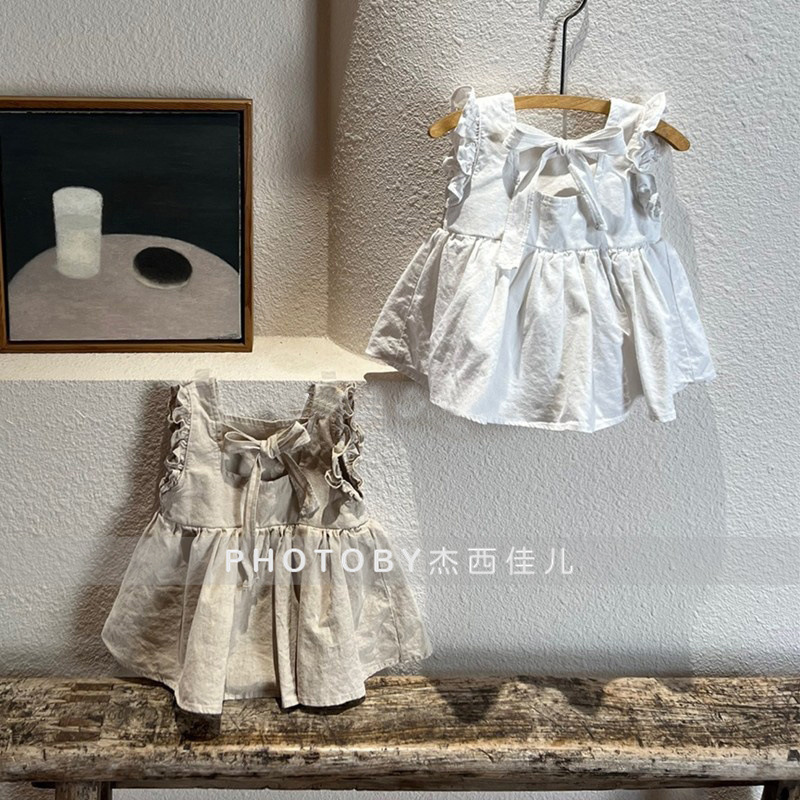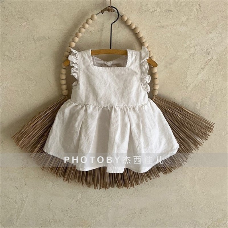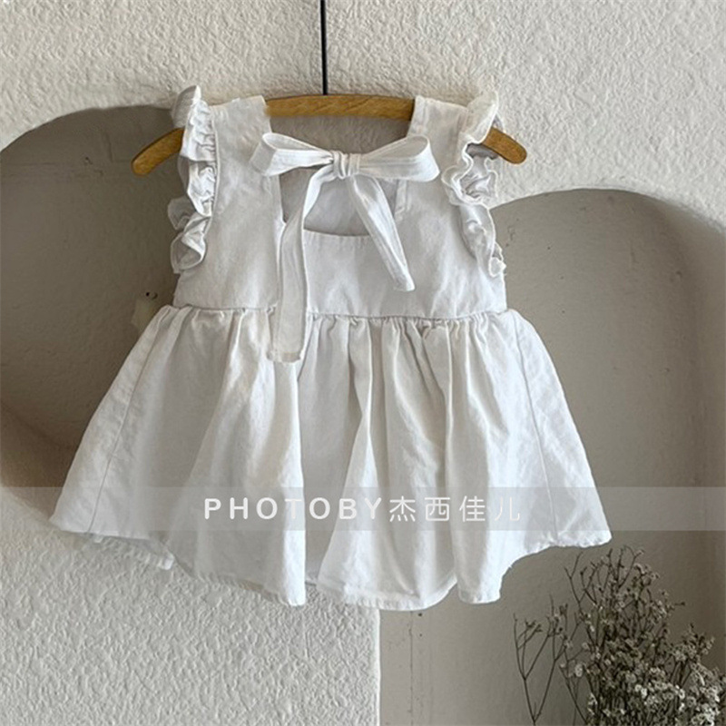 2024 아동복 아기와 유아의 여름 스커트 Ins 솔리드 컬러 코튼 레이스 공주 스커트 여자 한국 스타일 민소매 원피스스토어 가기