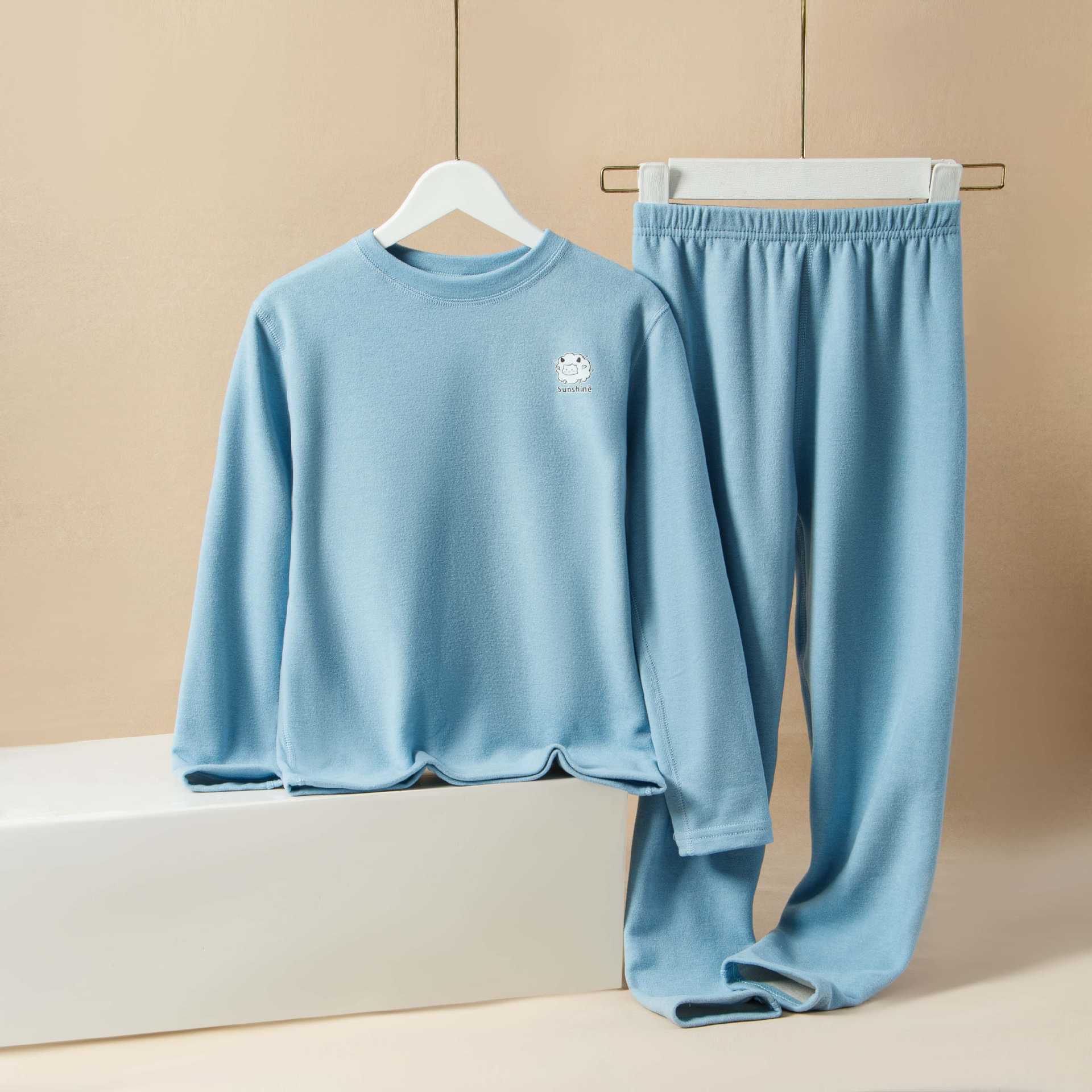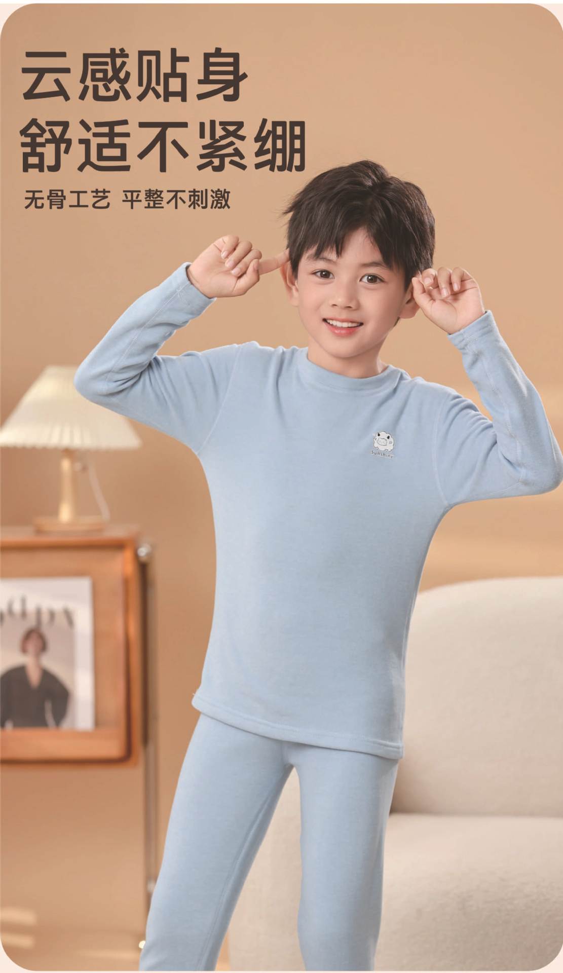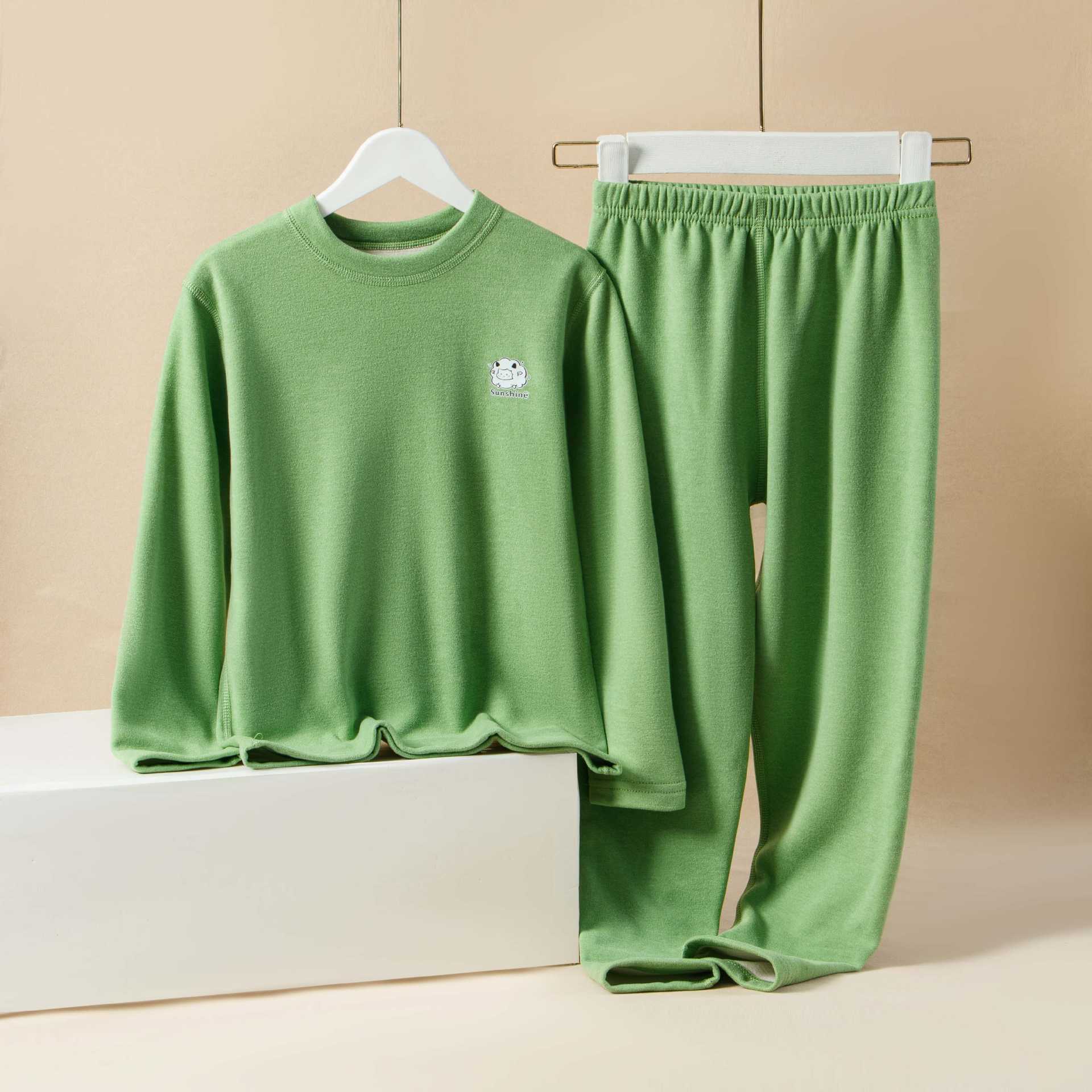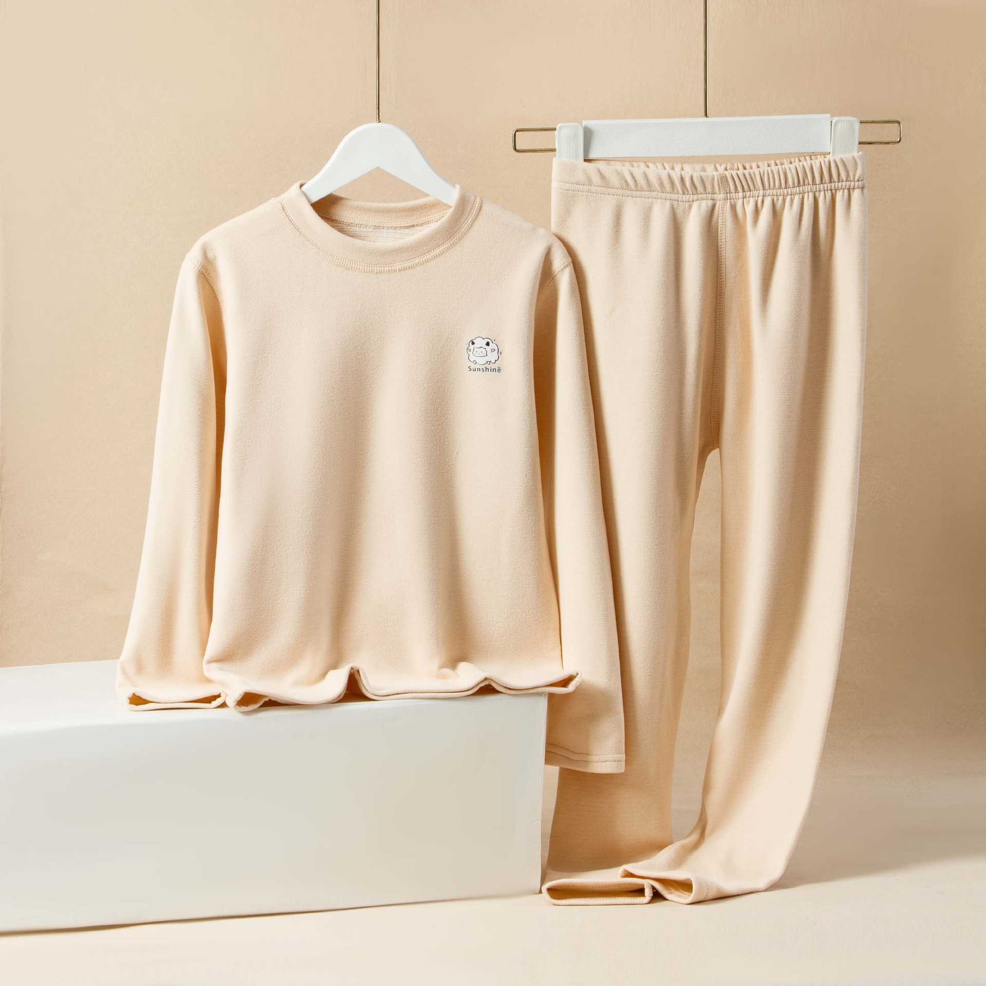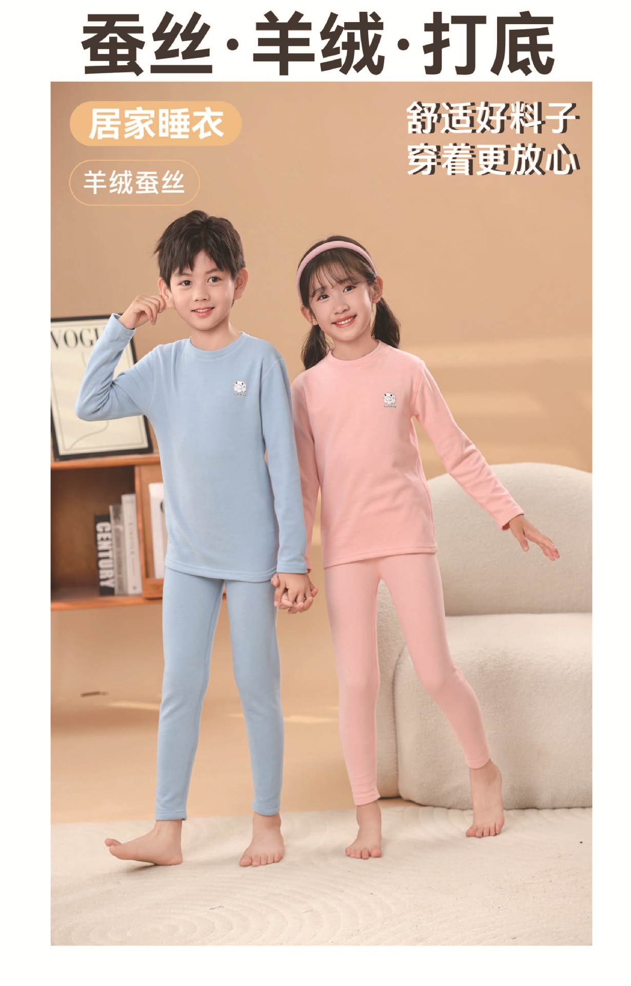 청소년 가을 겨울 양털 세트 어린이 가을옷과 긴바지 겨울 양모 실크 남아 여아 두꺼운 보온복