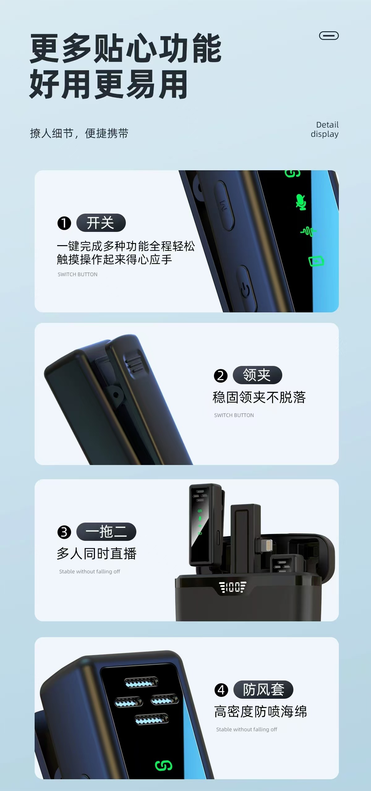 • J80 One for Two Yahei [지능형 소음 제거 + 무손실 사운드 픽업 + 잔향 모니터링]