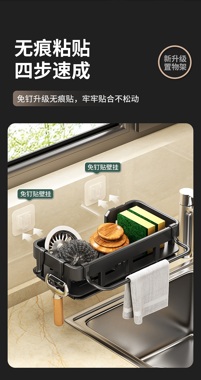 랙 랙 주방 스토리지 랙 펀치 프리 스토리지 랙 벽걸이 양념 선반 가정용 배수 바구니 싱크 아티팩트스토어 가기