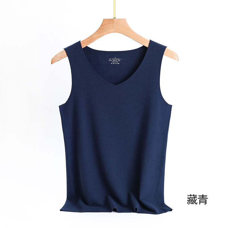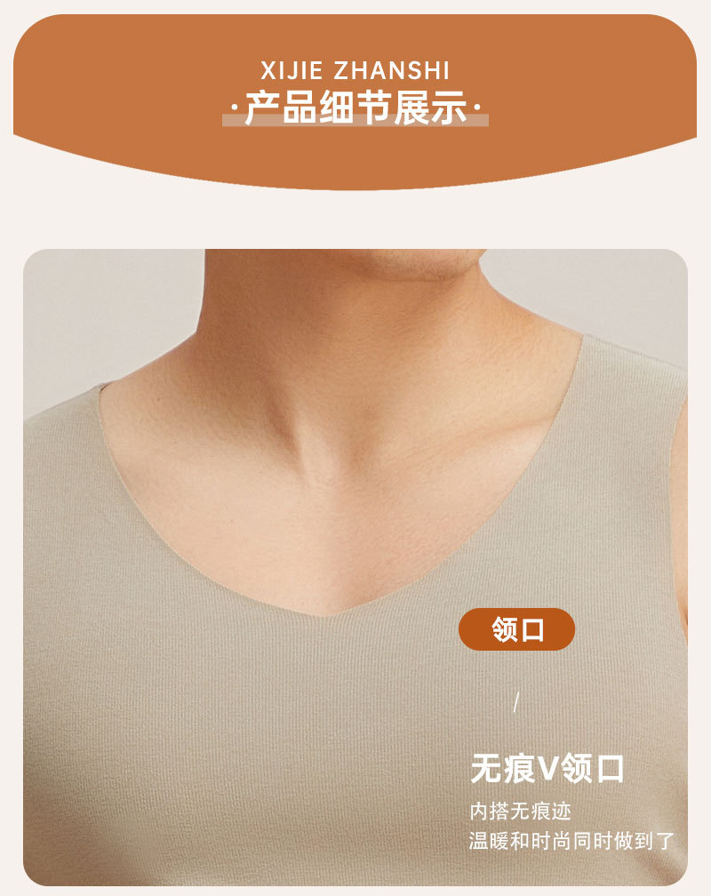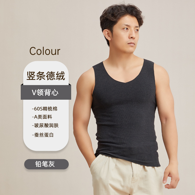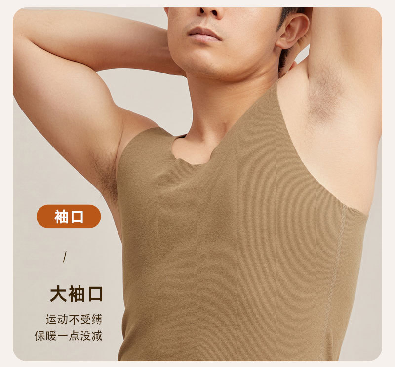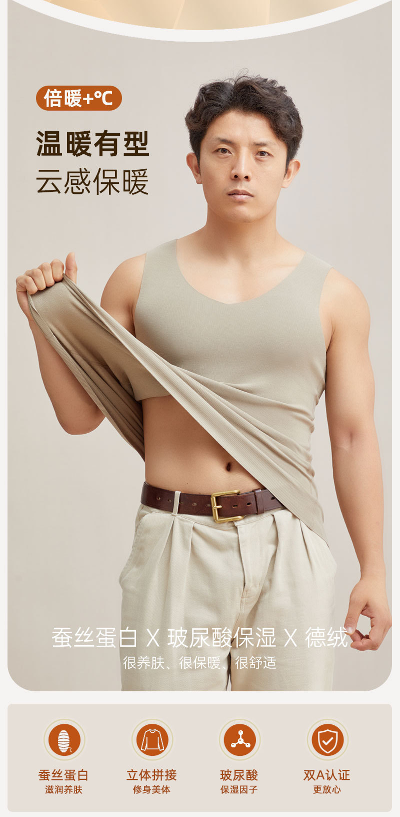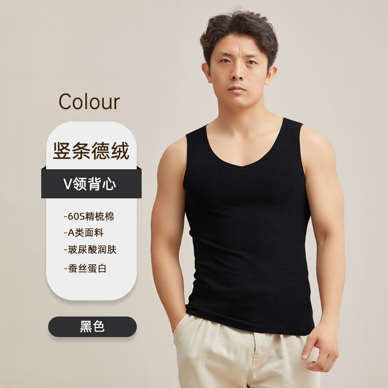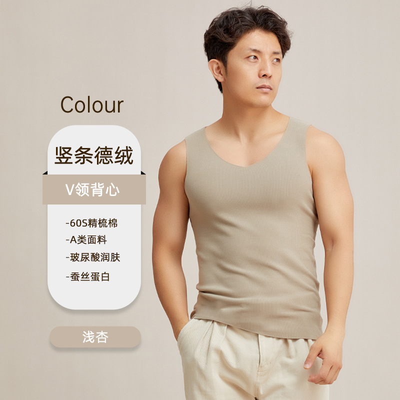 DeRong 남성용 심리스 겨울 따뜻한 조끼 V 넥 히알루 론산 이중 기모 플러스 벨벳 내부 겨울 방한을위한 민소매 조끼