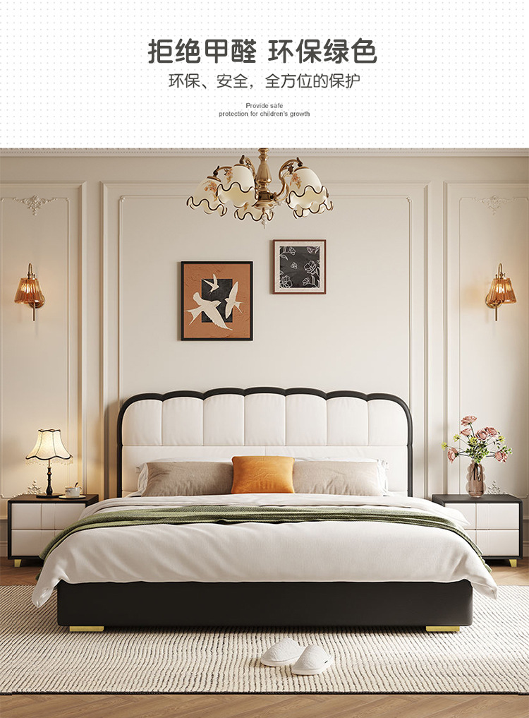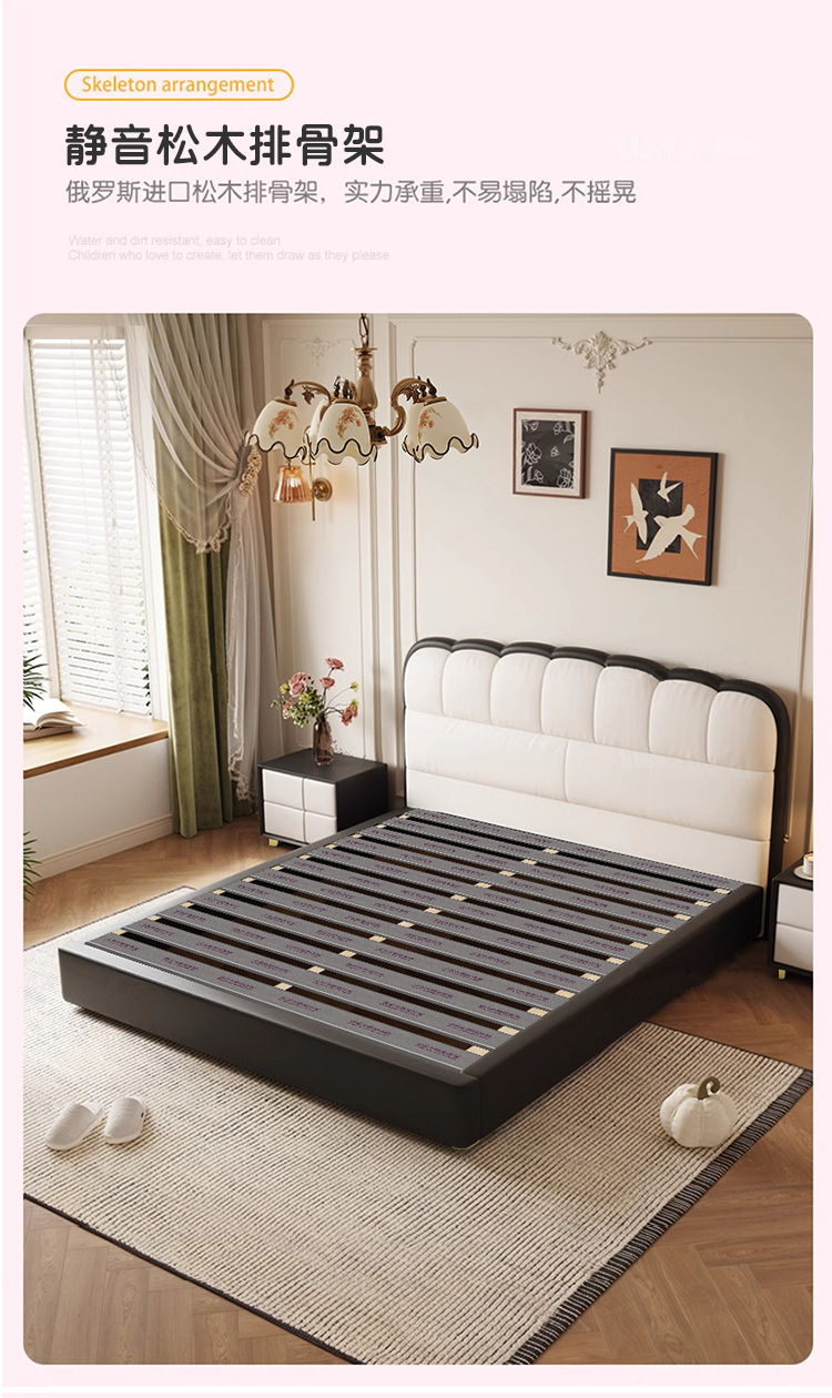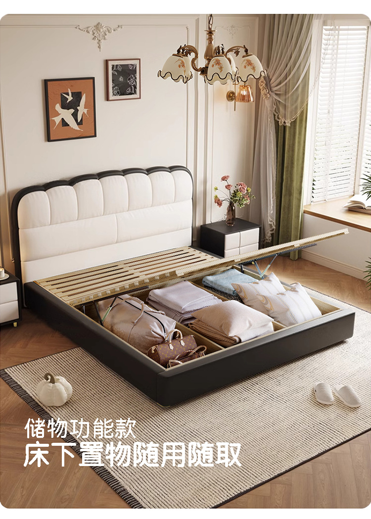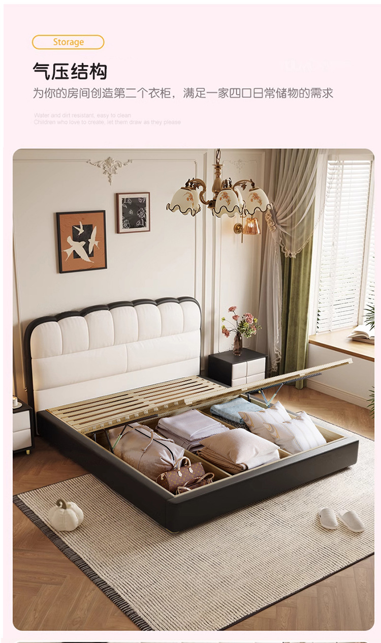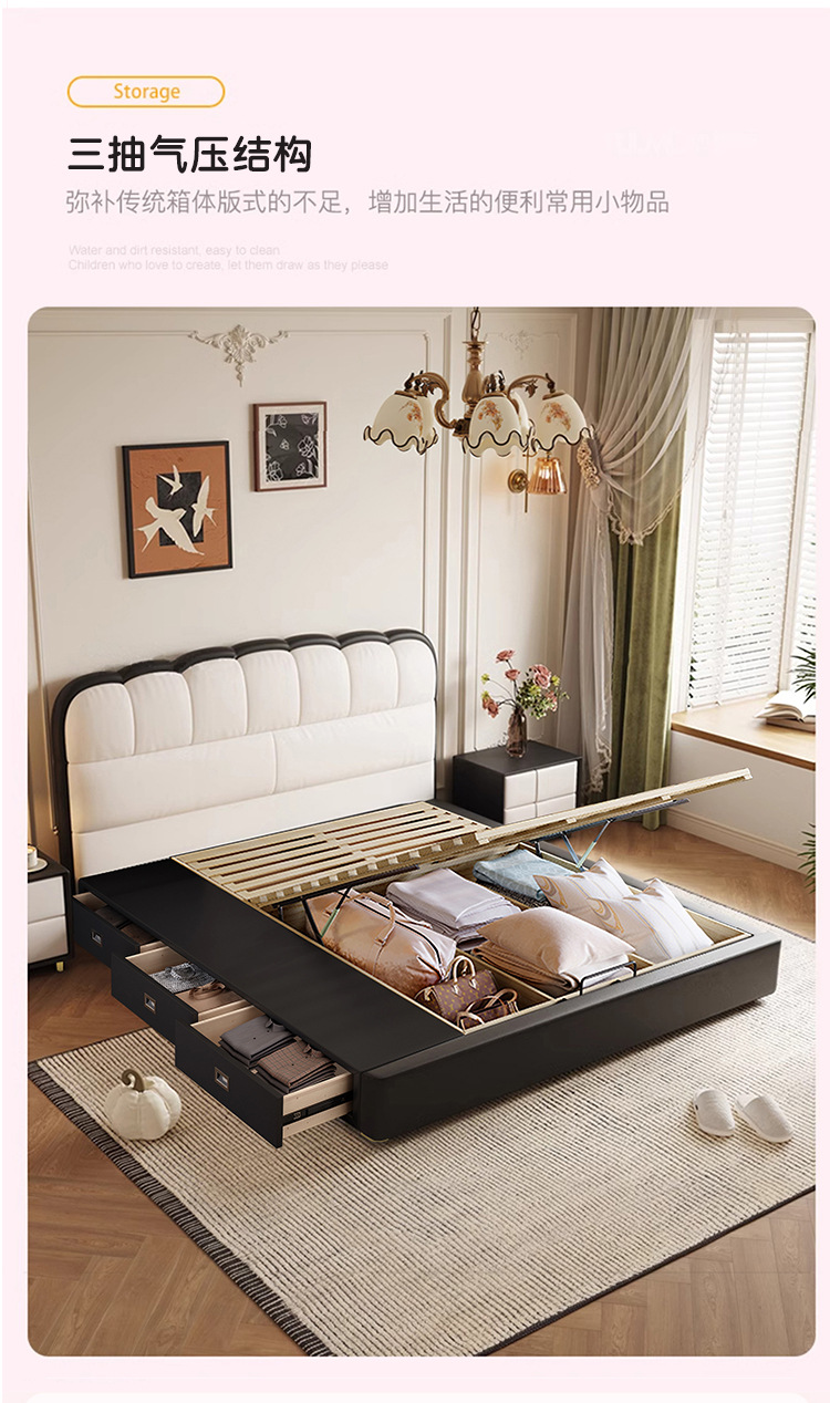 프랑스 크림 스타일 가죽 침대 더블 1.8m 인터넷 유명 소녀 침실 부드러운 침대 보관 다기능 어린이 침대스토어 가기