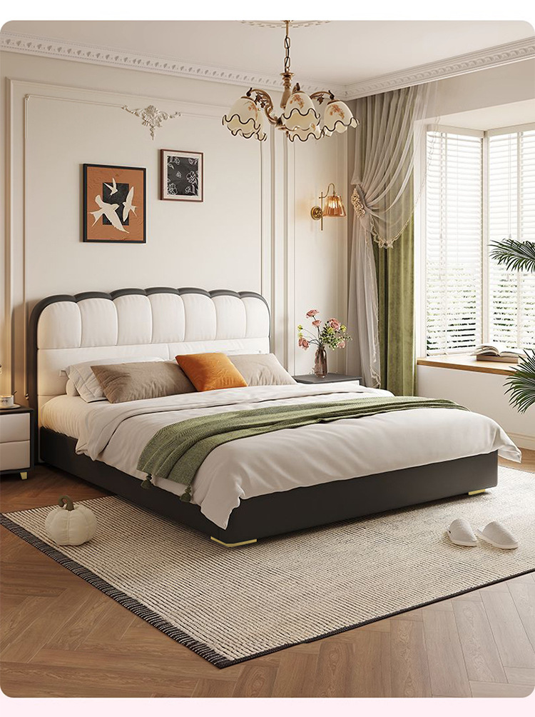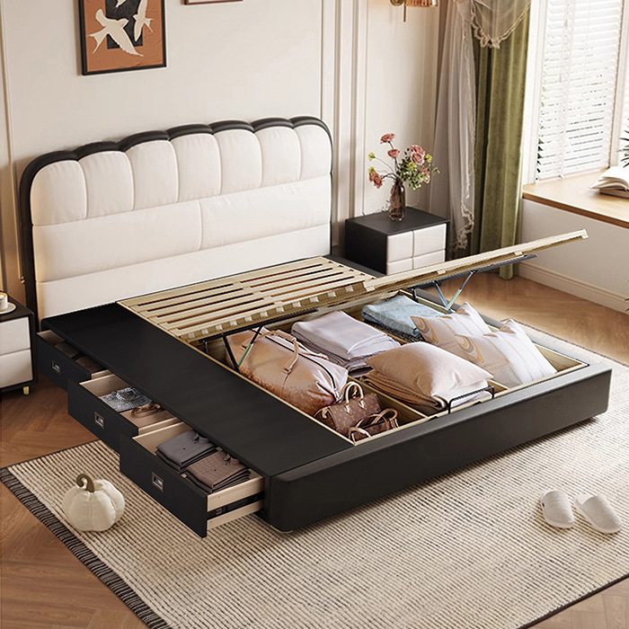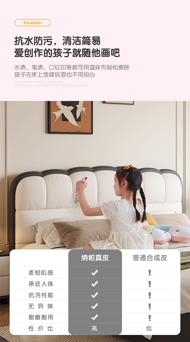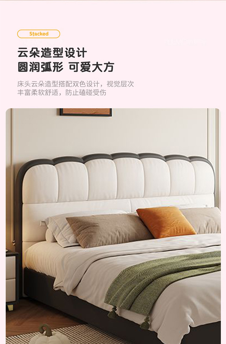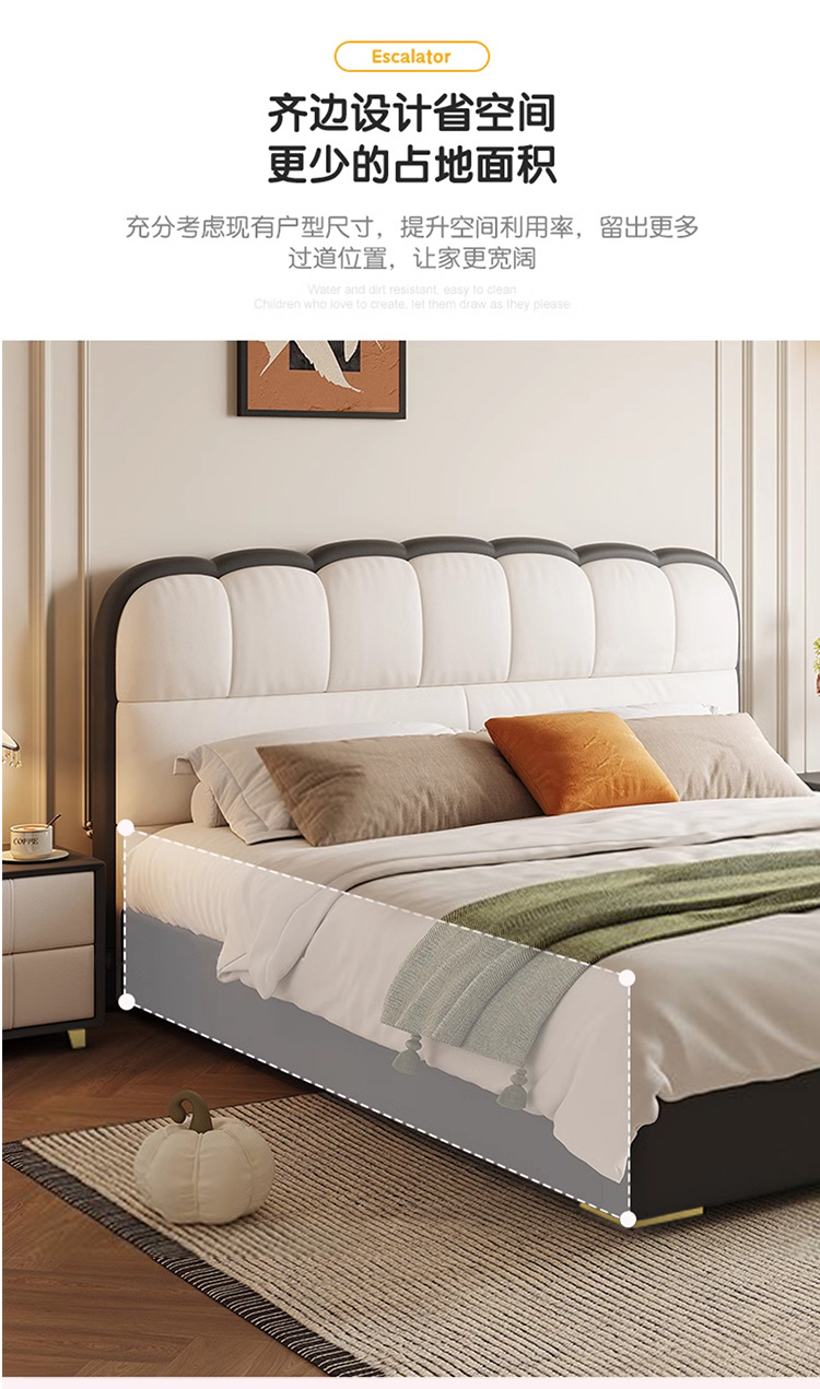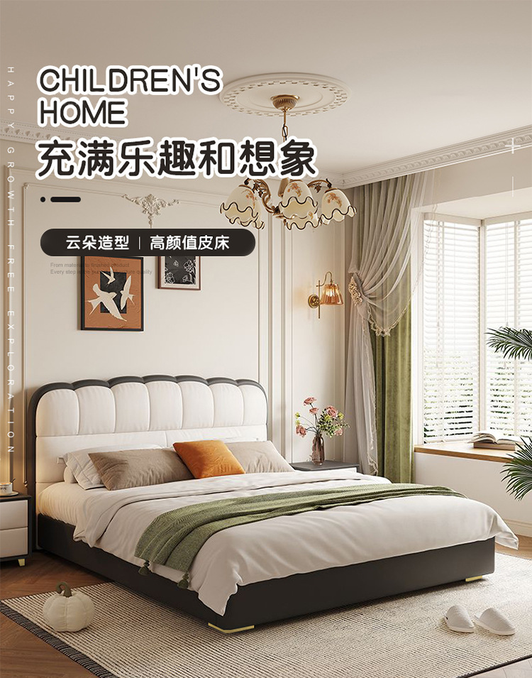 프랑스 크림 스타일 가죽 침대 더블 1.8m 인터넷 유명 소녀 침실 부드러운 침대 보관 다기능 어린이 침대스토어 가기