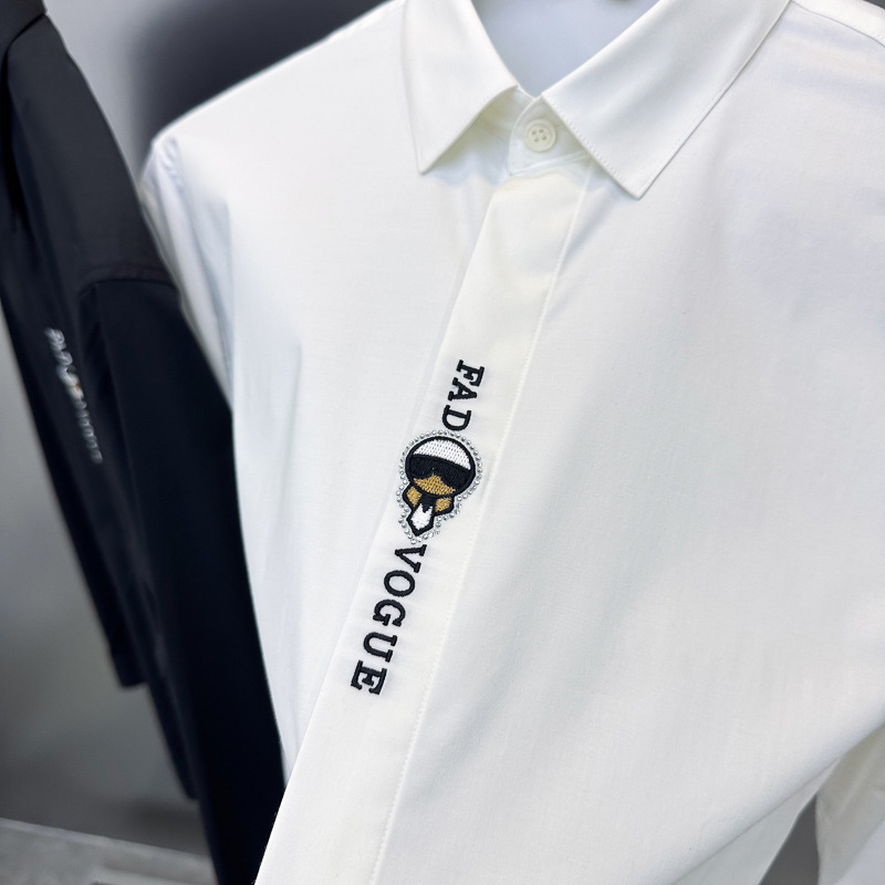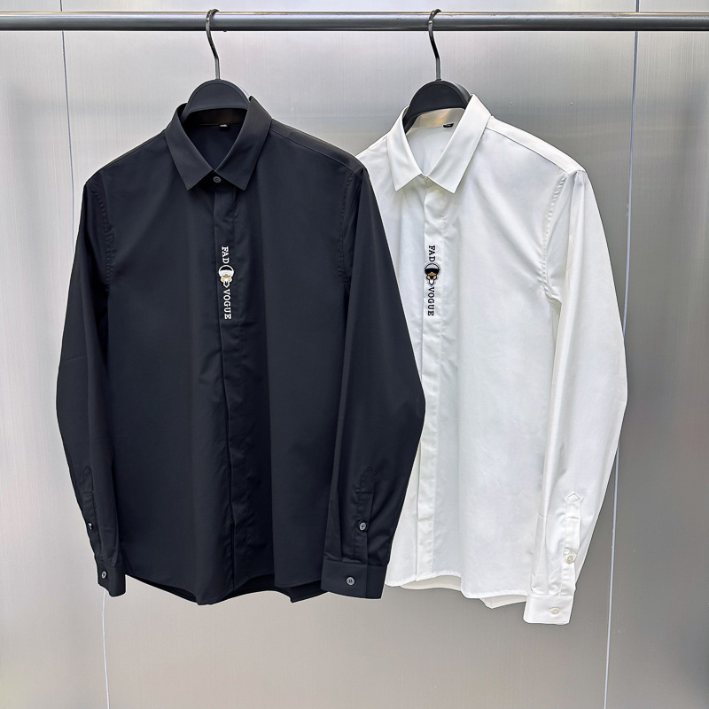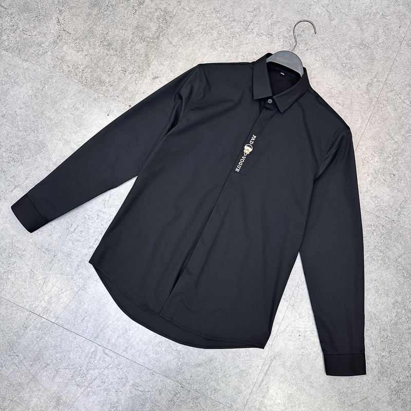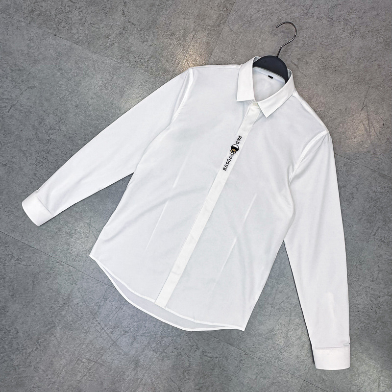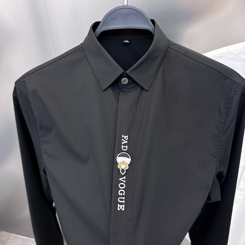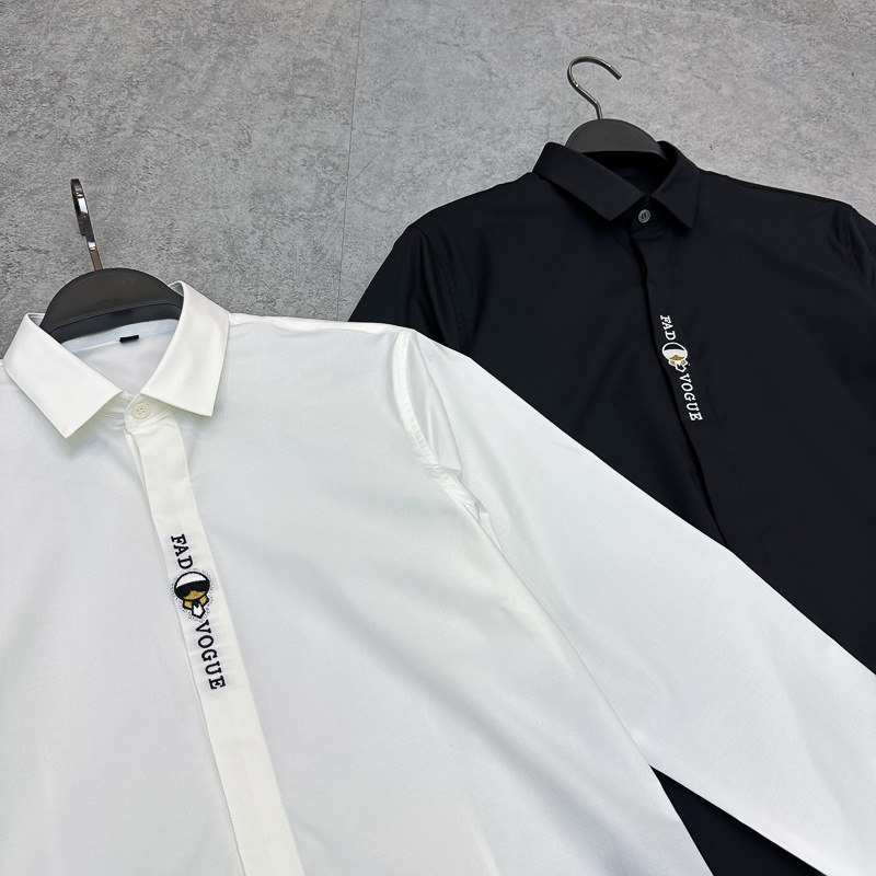 남성 유럽 긴 소매 셔츠 사업 슬림 단색 편지 자수 셔츠 캐주얼 셔츠 B1CAE3X94
