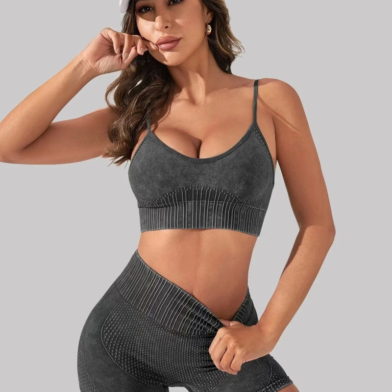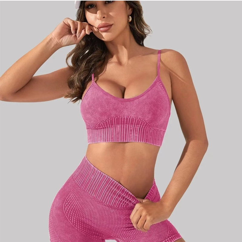 유럽과 미국의 원활한 요가 세트 서리로 씻은 백 스포츠 브라 높은 허리 엉덩이 반바지 여성 투피스 요가 세트